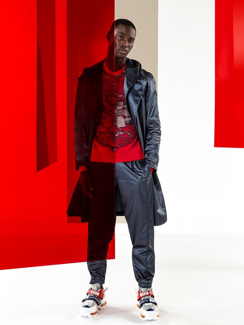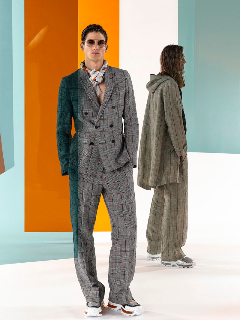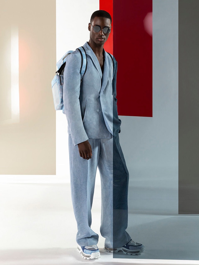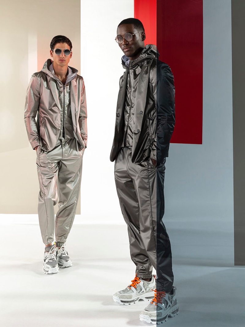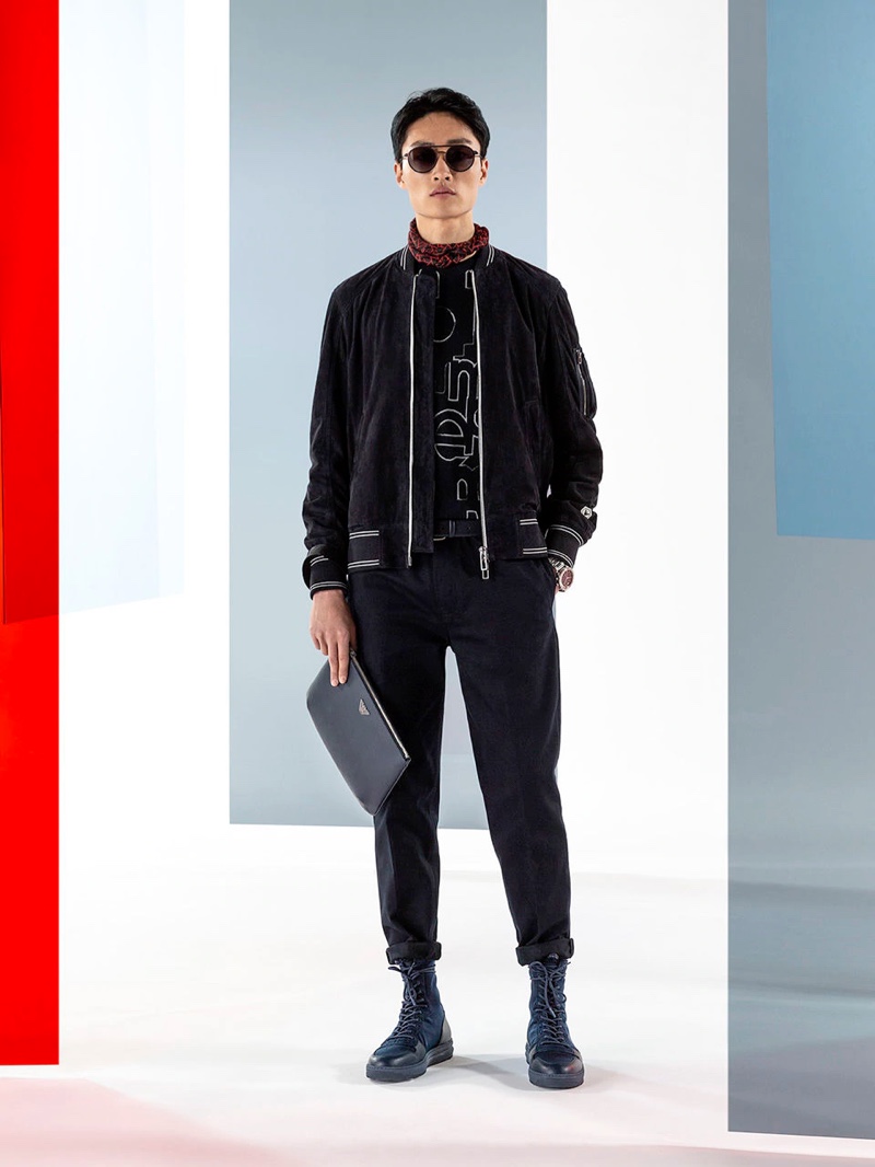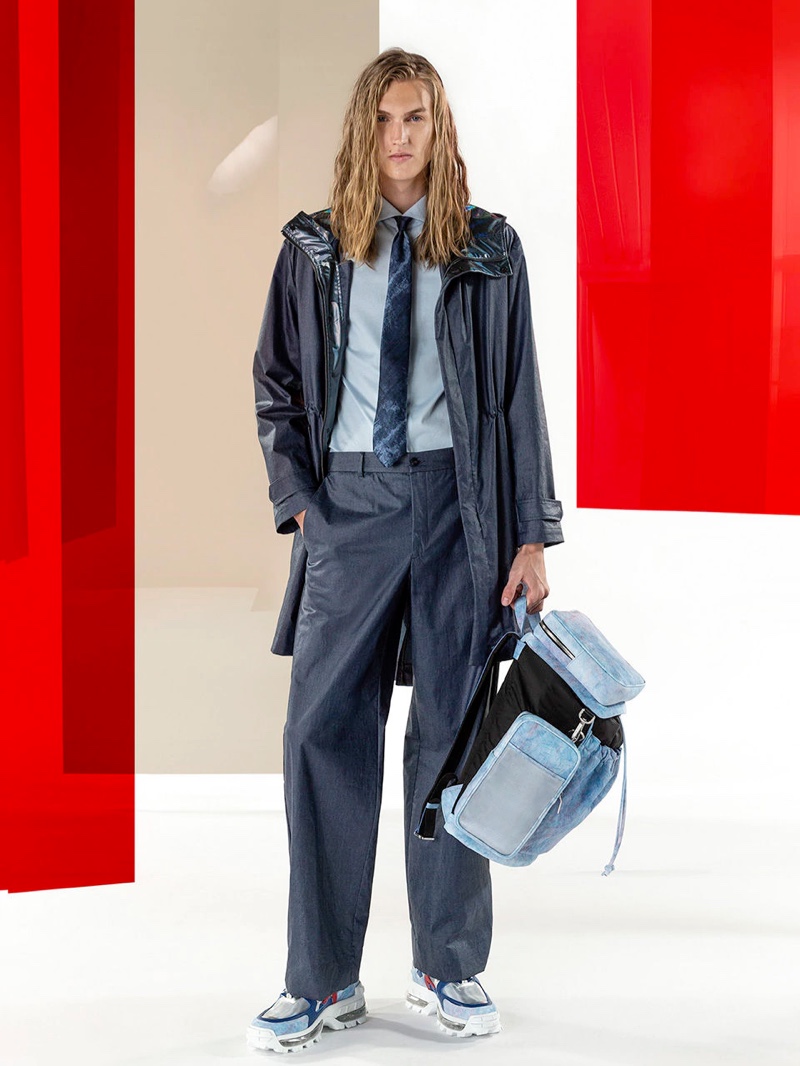 Emporio Armani’s spring-summer 2020 collection perfectly captures the brand’s identity with a strong mix of garments that marry Giorgio Armani’s elegant approach to menswear with a casual sportiness. The latest range of clothing brings together practical separates with a juxtaposition of neutral hues, clean lines, and graphic prints. The season’s lookbook mirrors the collection as geometric backdrops serve as the set for models Ryu Wankyu, Krisz Keri, Gerard Sabe, and Edge Lheureux. Front and center, the models inspire in must-haves such as the relaxed double-breasted suit, graffiti print bomber jacket, logo sweatshirt, baggy shorts, and camouflage pants.