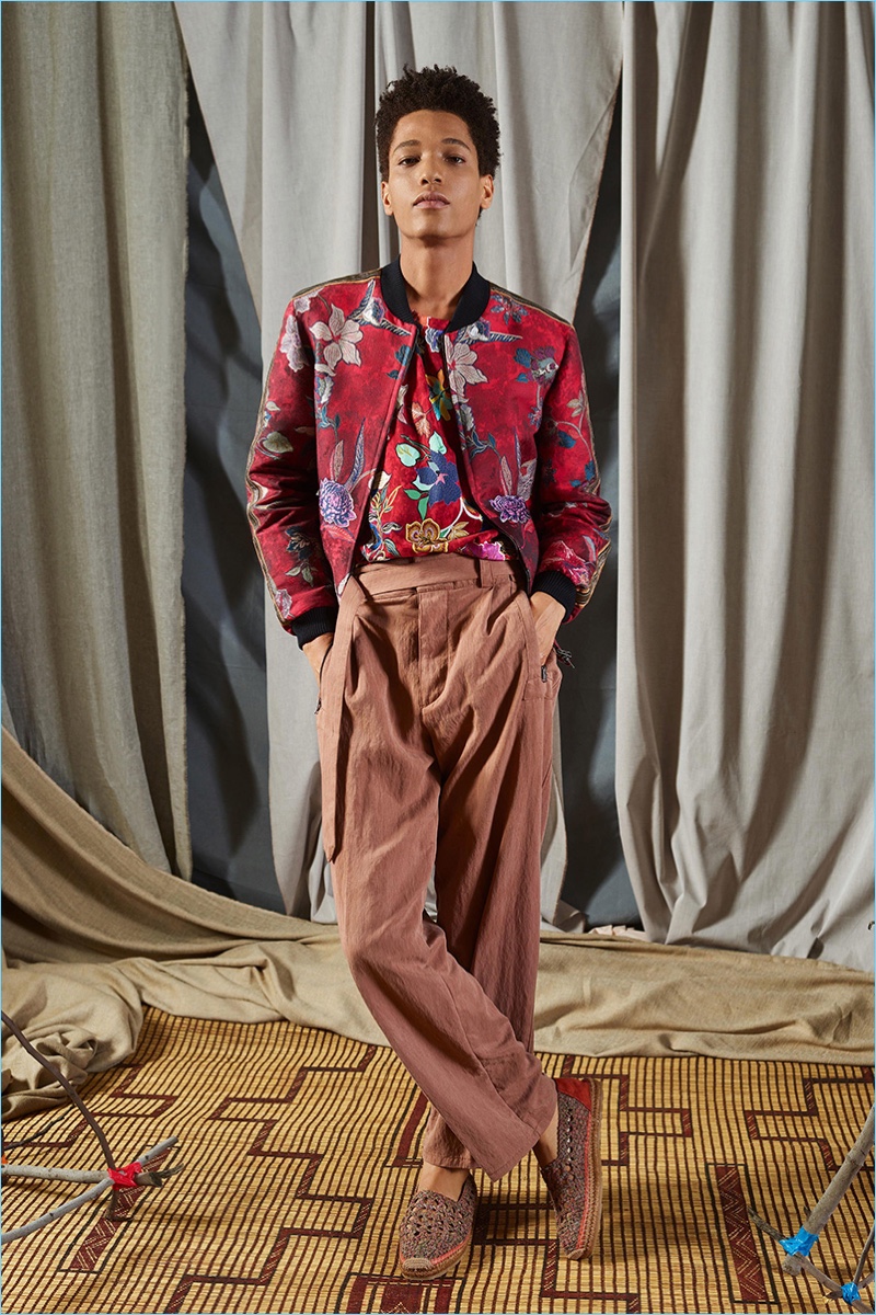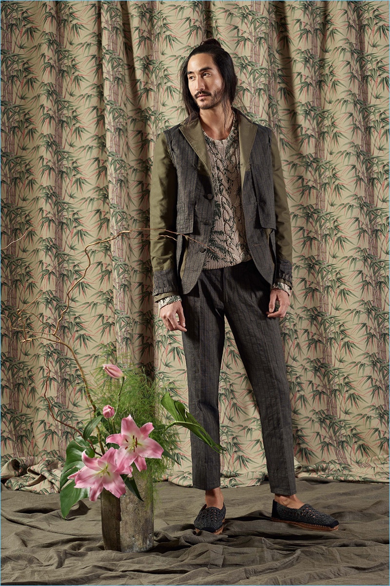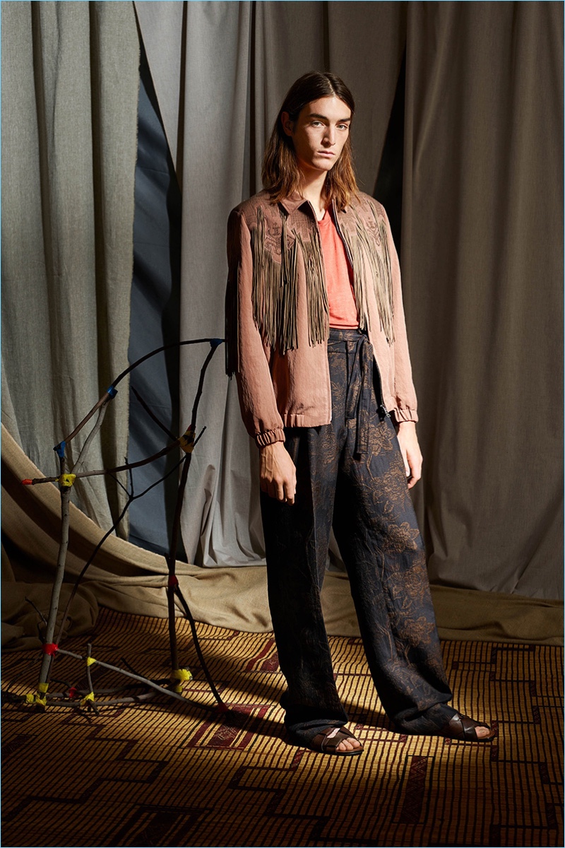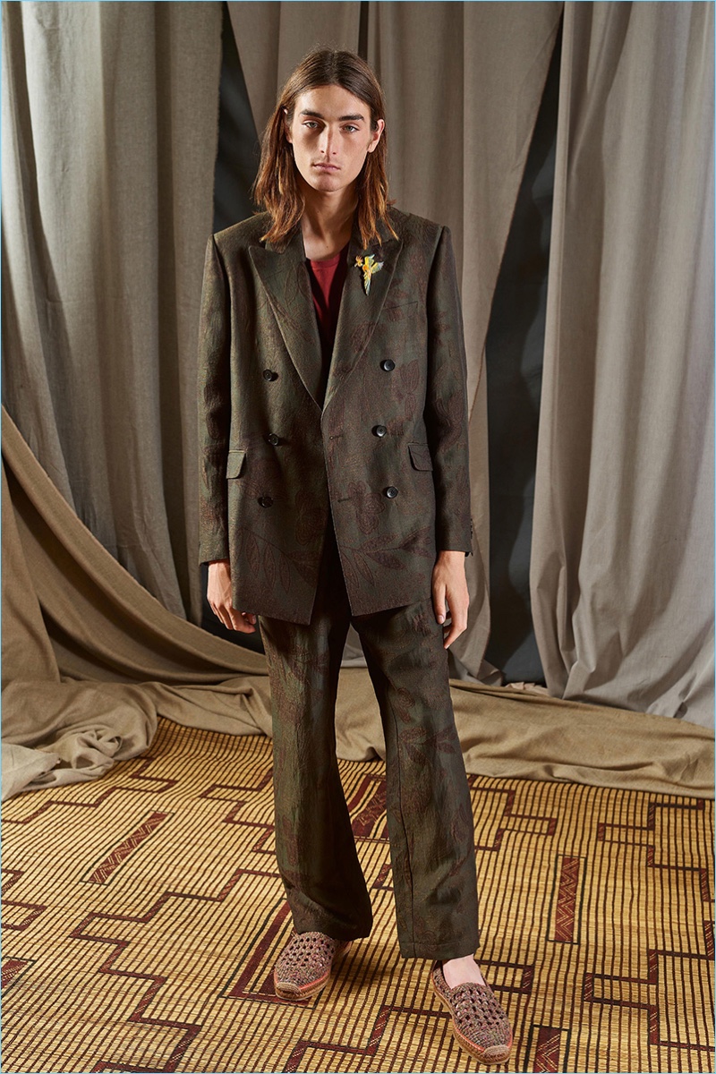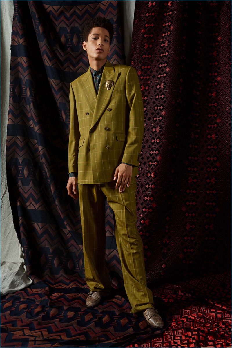 Etro references Indonesian culture as the label approaches its spring-summer 2019 collection. The elegant season is unveiled with a lookbook featuring models Tony Thornburg, Niko Traubman, Peter Finn, and Simon Martyn. Posing against a backdrop of ornate fashions, the models don Kean Etro’s latest designs. Easily holding up to a history of beautiful prints and textiles, the collection is dressed in earthy hues. Indonesian patterns come together with patchwork and even graphics of Mexican dream symbols. Not caving into the streetwear trend, Etro maintains a gentleman’s wardrobe with fluid proportions. Double-breasted suits are just as refined as a decorated bomber jacket. The Italian fashion house also makes a case for bamboo, complementing linens, cotton, and wools.