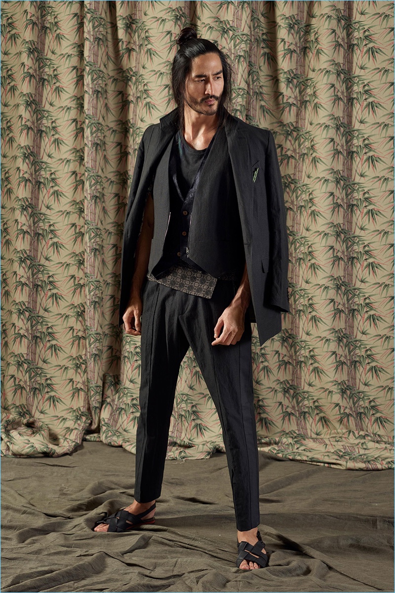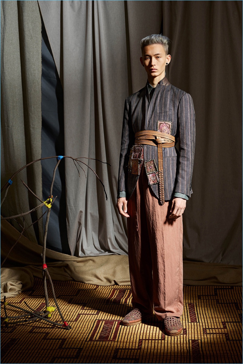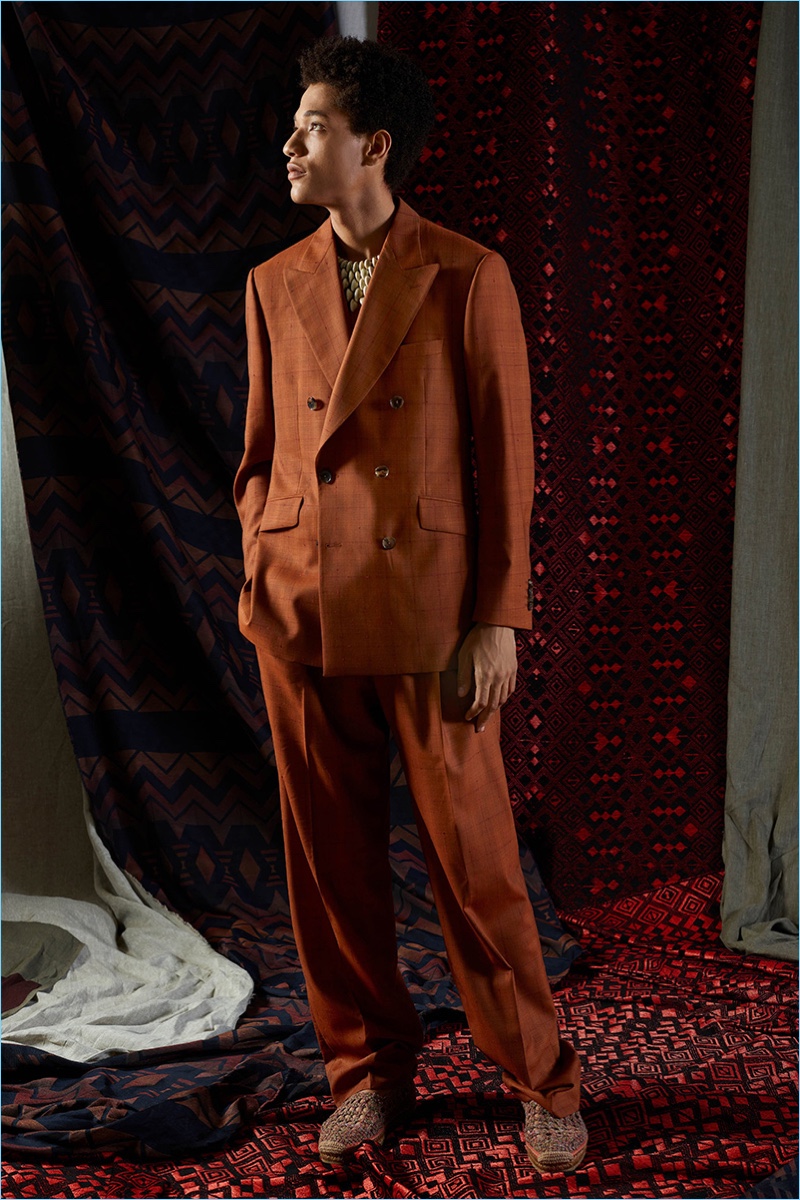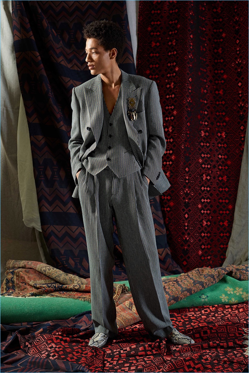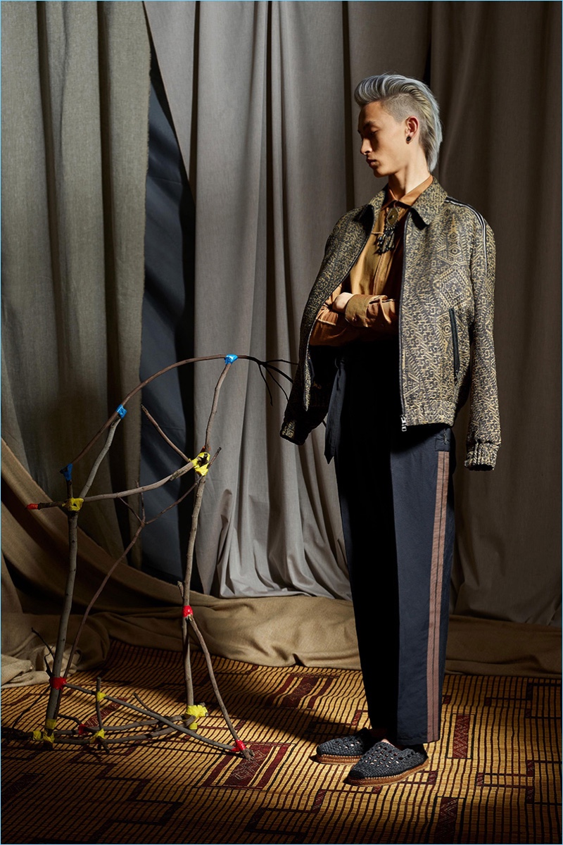 Etro references Indonesian culture as the label approaches its spring-summer 2019 collection. The elegant season is unveiled with a lookbook featuring models Tony Thornburg, Niko Traubman, Peter Finn, and Simon Martyn. Posing against a backdrop of ornate fashions, the models don Kean Etro’s latest designs. Easily holding up to a history of beautiful prints and textiles, the collection is dressed in earthy hues. Indonesian patterns come together with patchwork and even graphics of Mexican dream symbols. Not caving into the streetwear trend, Etro maintains a gentleman’s wardrobe with fluid proportions. Double-breasted suits are just as refined as a decorated bomber jacket. The Italian fashion house also makes a case for bamboo, complementing linens, cotton, and wools.