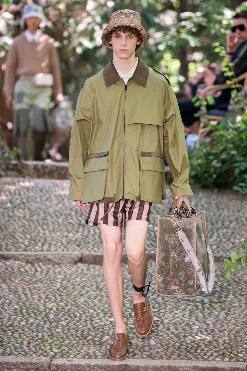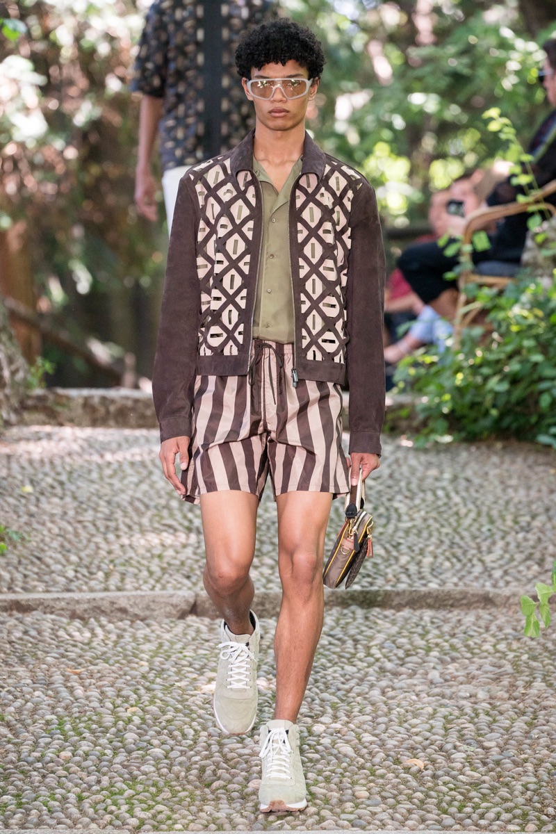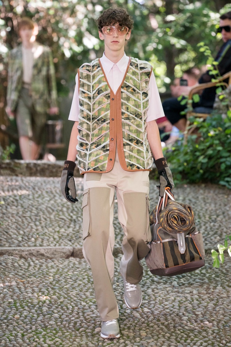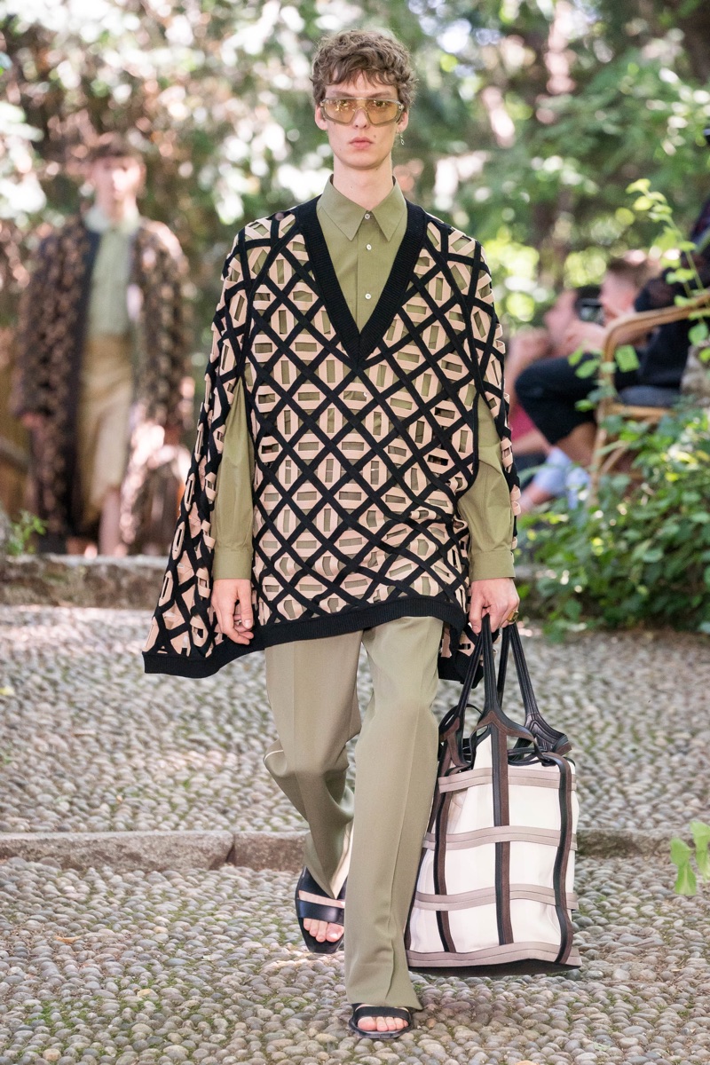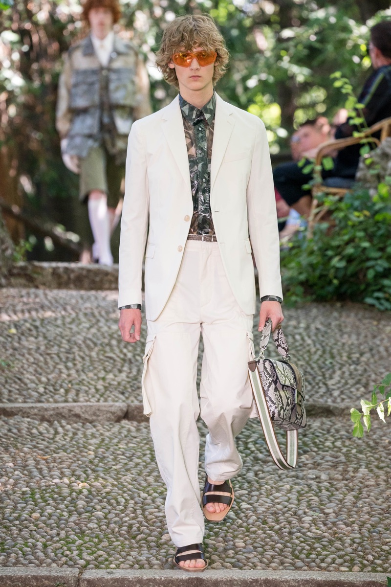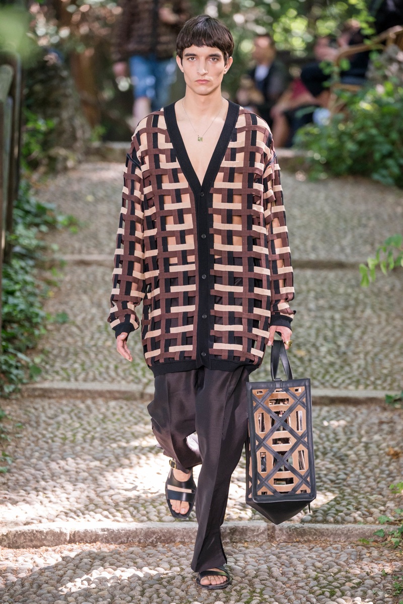 Silvia Venturini Fendi shares her love for gardening with Fendi’s spring-summer 2020 men’s collection. The countryside calls as the Fendi man nurtures his green thumb with a chic new wardrobe that features grounded roots. A neutral color scheme draws inspiration from the earth’s soil, while lattice and foliage prints contribute to the range’s charm. Adding pockets for utility, jackets, and coats make a rustic statement. Clean lines take shape around relaxed silhouettes. Distressed denim joins the mix with patched details. Italian film director Luca Guadagnino collaborates with Fendi for the season, introducing prints such as a grid-inspired pattern.