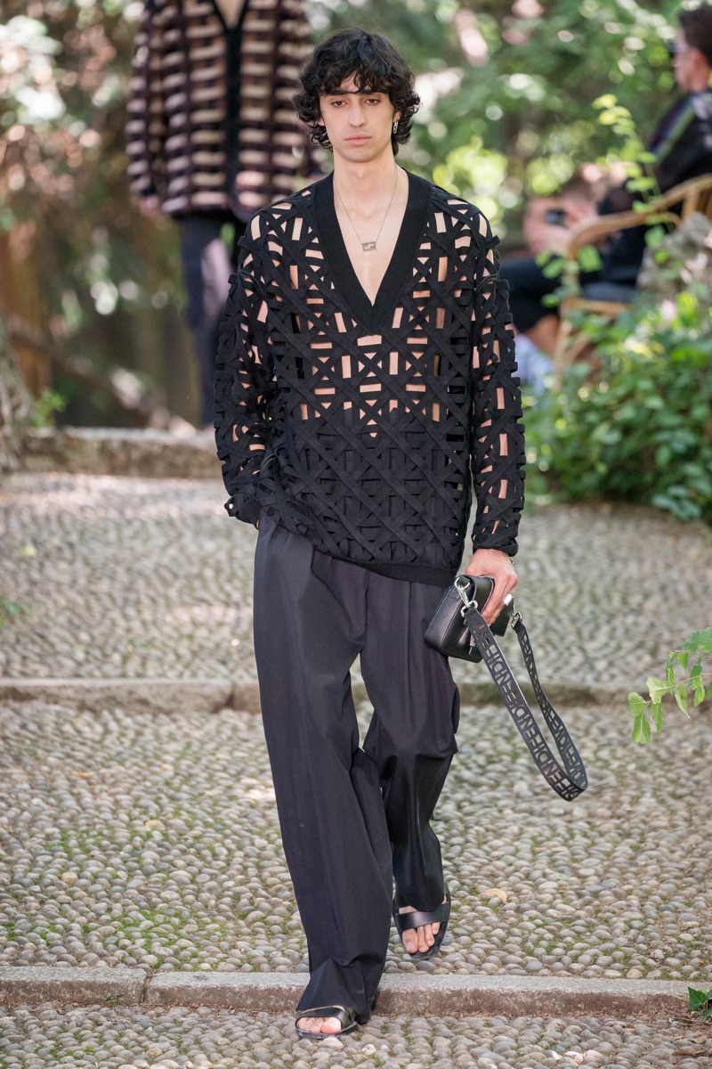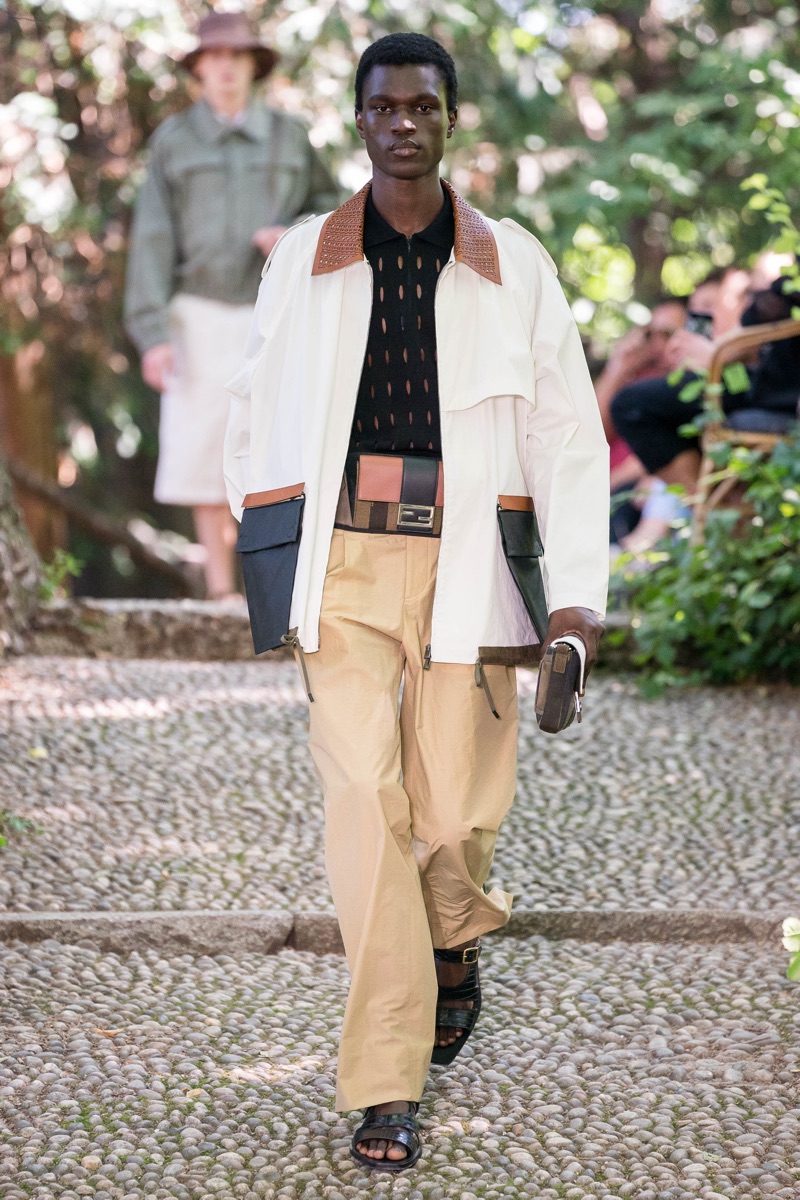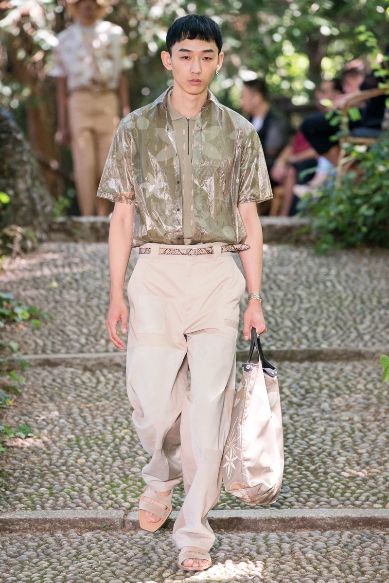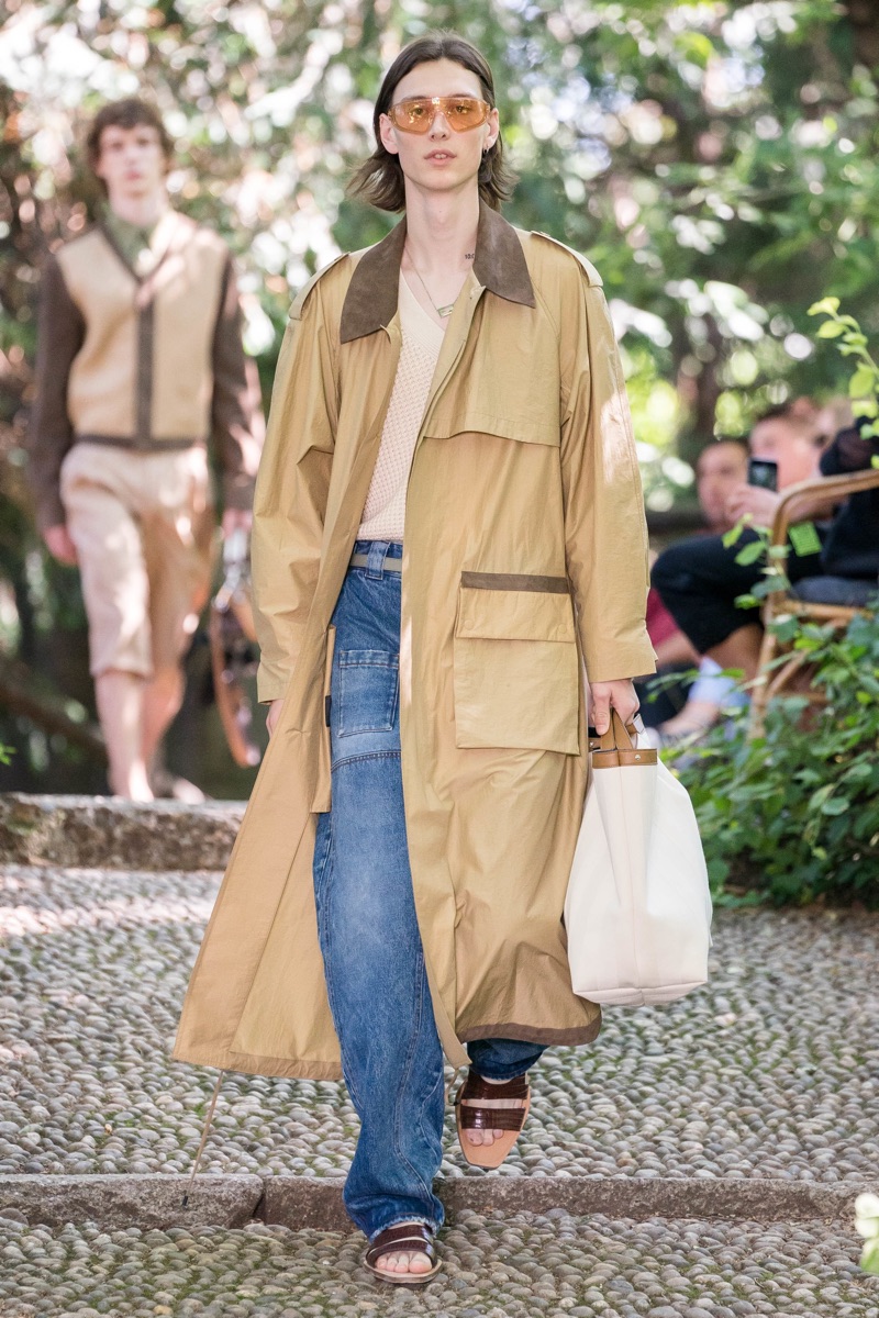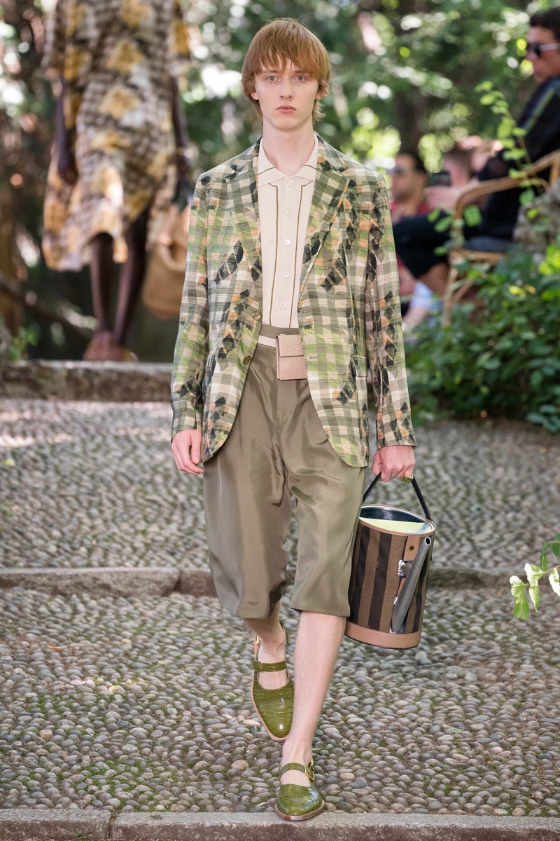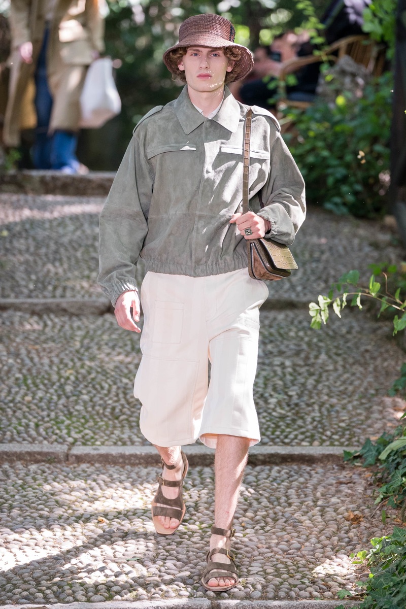 Silvia Venturini Fendi shares her love for gardening with Fendi’s spring-summer 2020 men’s collection. The countryside calls as the Fendi man nurtures his green thumb with a chic new wardrobe that features grounded roots. A neutral color scheme draws inspiration from the earth’s soil, while lattice and foliage prints contribute to the range’s charm. Adding pockets for utility, jackets, and coats make a rustic statement. Clean lines take shape around relaxed silhouettes. Distressed denim joins the mix with patched details. Italian film director Luca Guadagnino collaborates with Fendi for the season, introducing prints such as a grid-inspired pattern.
