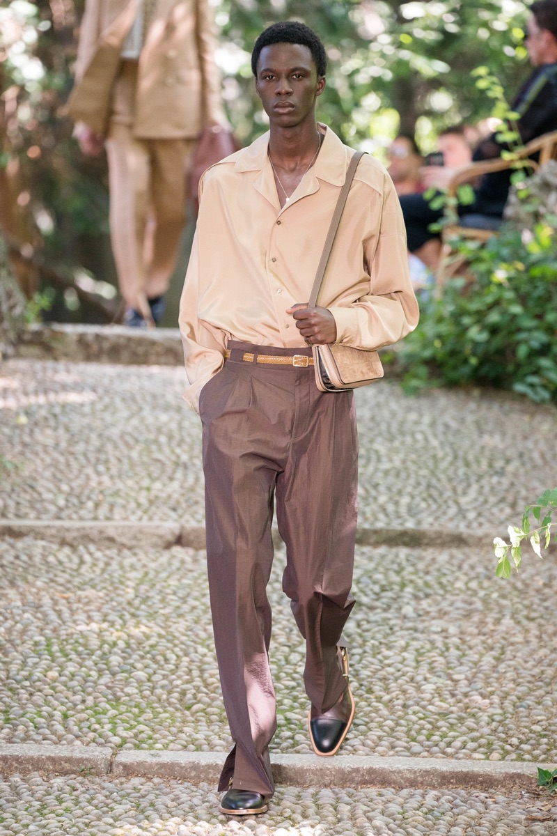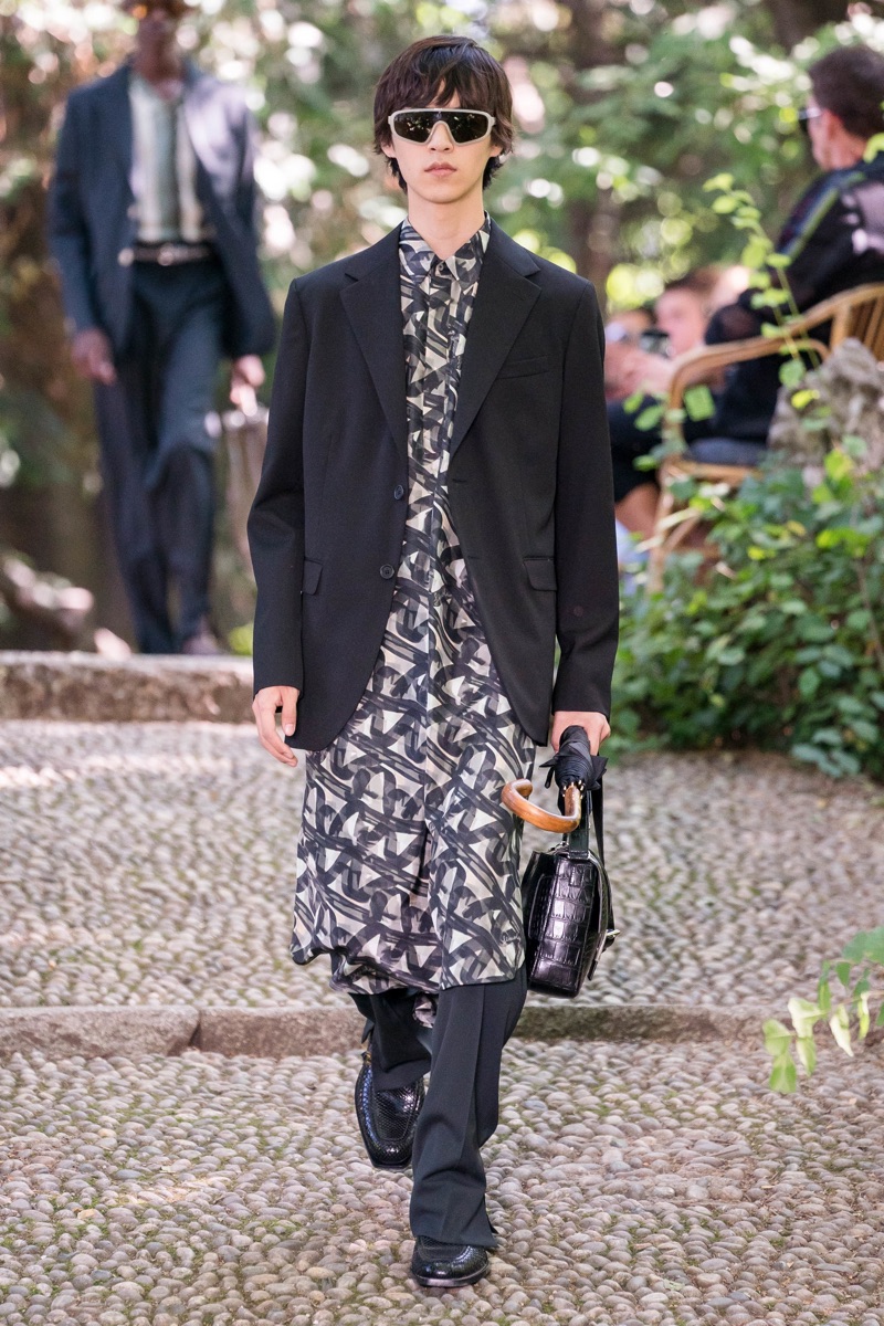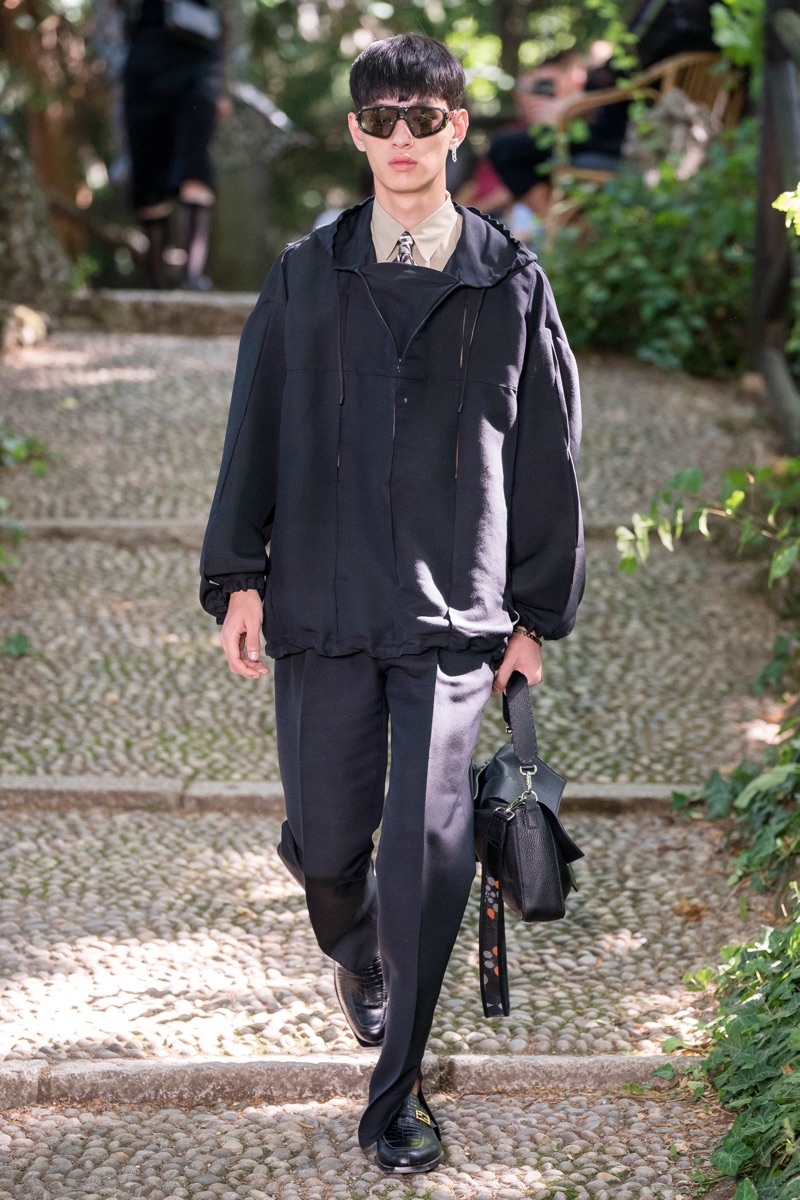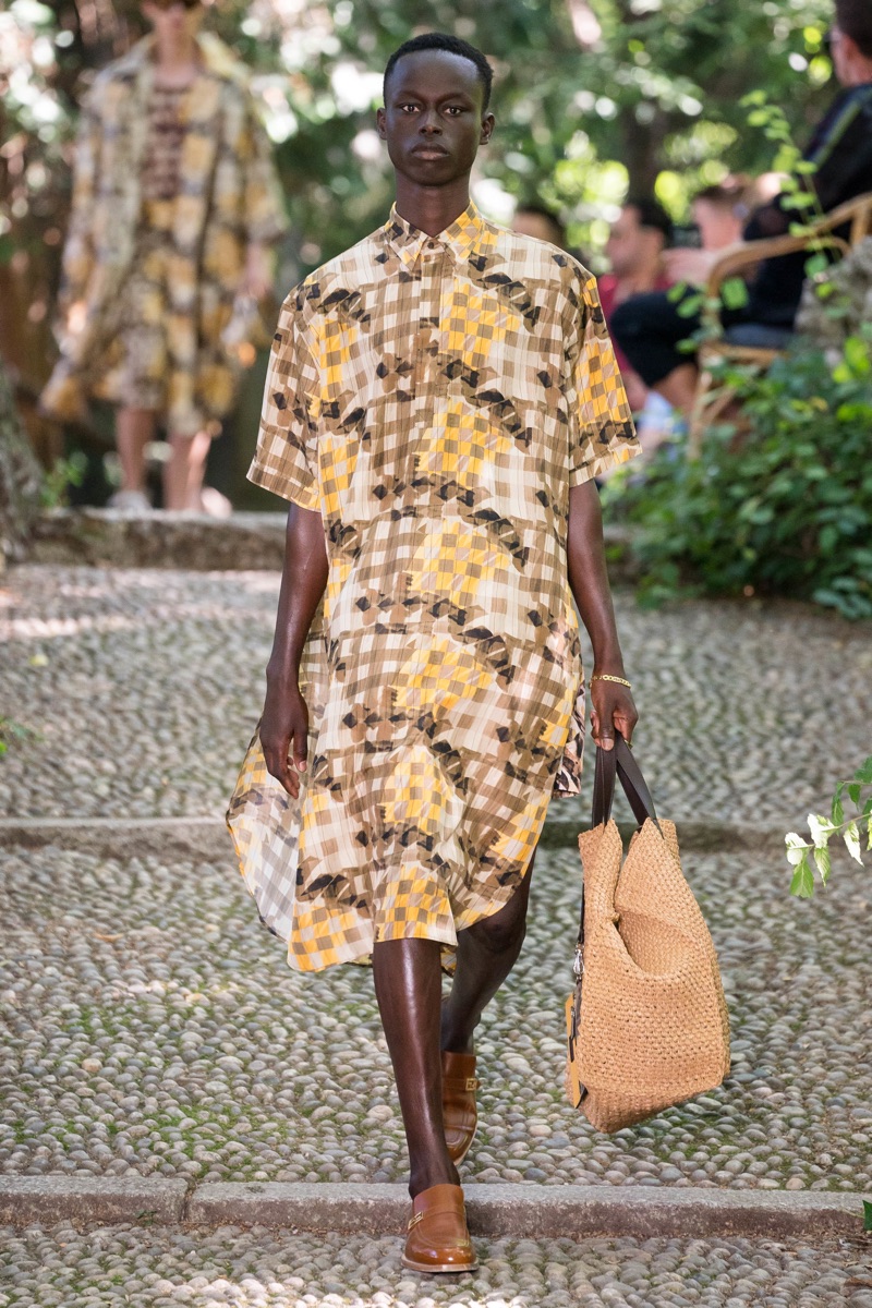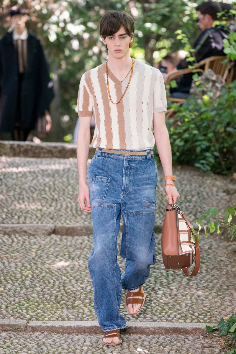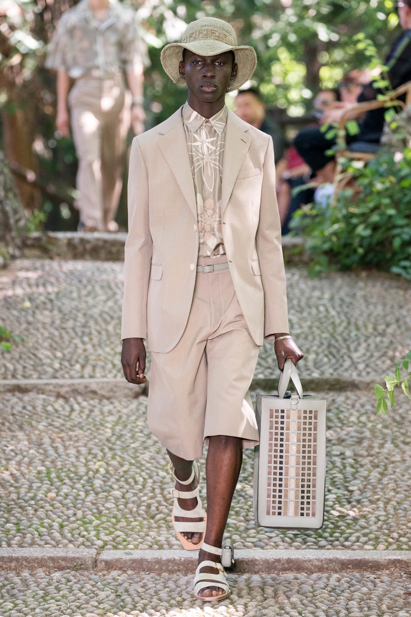 Silvia Venturini Fendi shares her love for gardening with Fendi’s spring-summer 2020 men’s collection. The countryside calls as the Fendi man nurtures his green thumb with a chic new wardrobe that features grounded roots. A neutral color scheme draws inspiration from the earth’s soil, while lattice and foliage prints contribute to the range’s charm. Adding pockets for utility, jackets, and coats make a rustic statement. Clean lines take shape around relaxed silhouettes. Distressed denim joins the mix with patched details. Italian film director Luca Guadagnino collaborates with Fendi for the season, introducing prints such as a grid-inspired pattern.