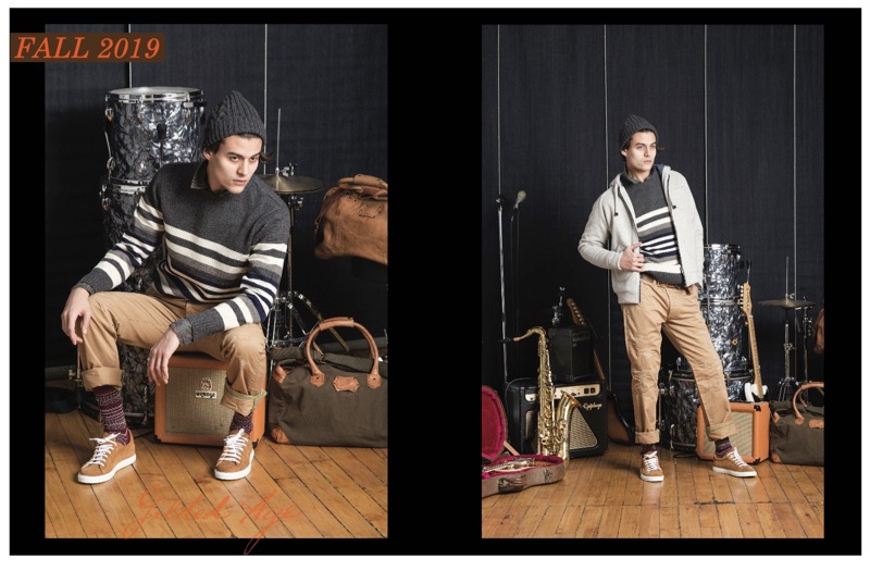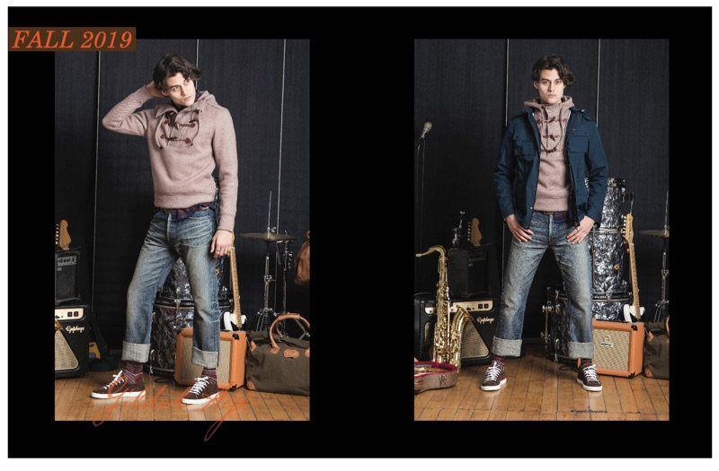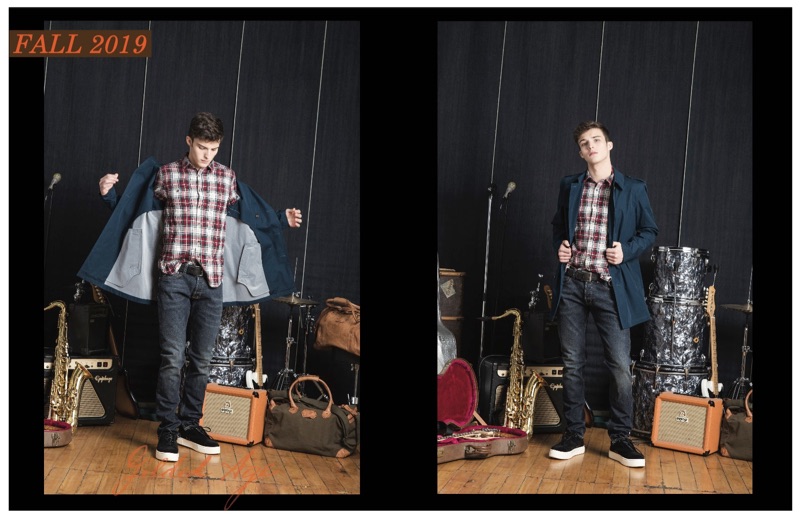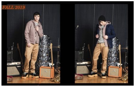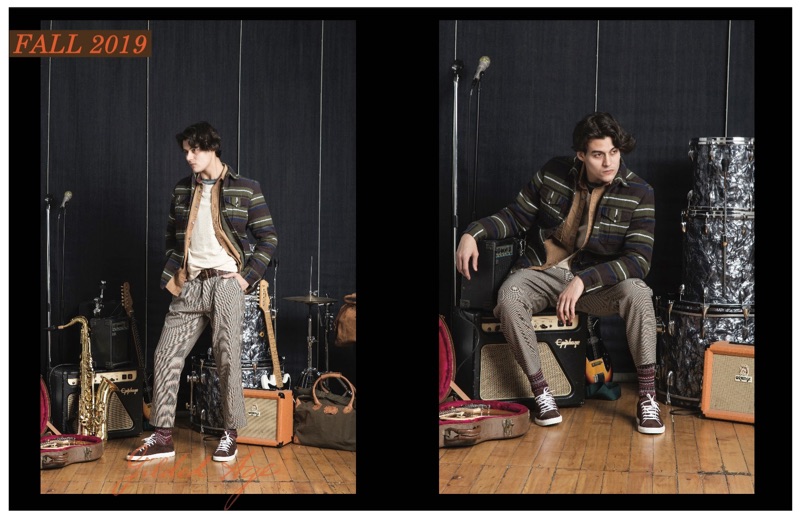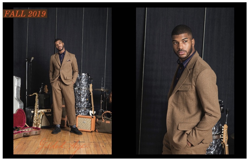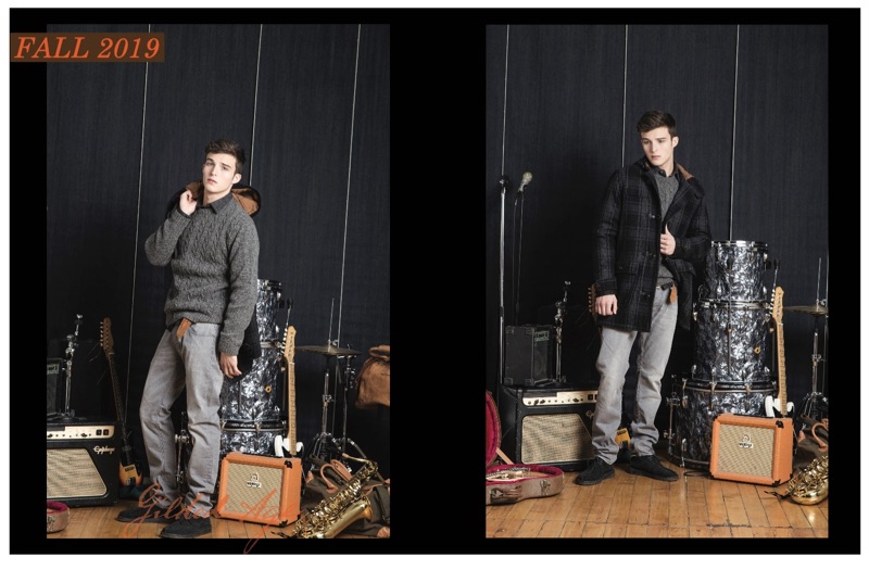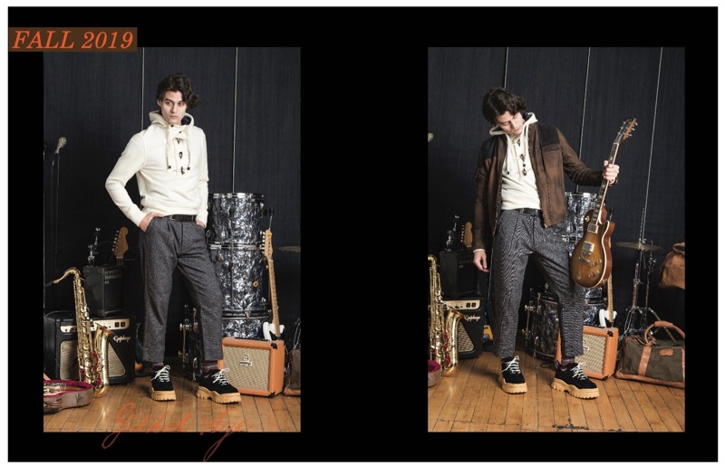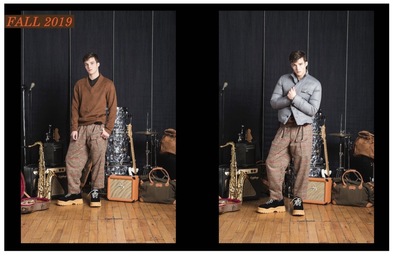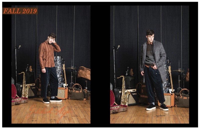 Gilded Age fuses past and present menswear motifs for its fall-winter 2019 collection. Woven stretch twill comes together with chambray and wool dressed in plaids, stripes, and checks. Relaxed silhouettes flourish with a wardrobe of cropped pants, knit sweaters, sleek coats, short jackets, and casual shirts. Distressed denim joins the mix as Gilded Age provides an effortless lineup of clothing for everyday style. Mirroring the season, the label embraces autumnal hues for a smart impact.