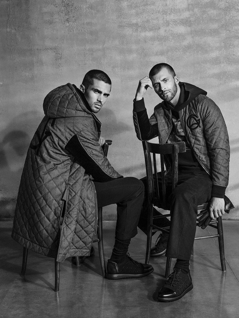 Playing it elegant but low-key for fall-winter 2019, Giorgio Armani embraces a color palette of black, navy, grey, and brown. The Italian fashion house enlists models Robbie Beeser, Jerome Palaz, and Walker Blanco as the faces of the season. The trio poses for elegant portraits as they showcase Giorgio Armani’s dashing new wardrobe. Chic leather jackets, classic herringbone tailoring, tonal patterned sweaters, and contemporary textured outerwear contribute to a smart lineup. Oversized leather bags and boots with a clean silhouette make an impact as well.