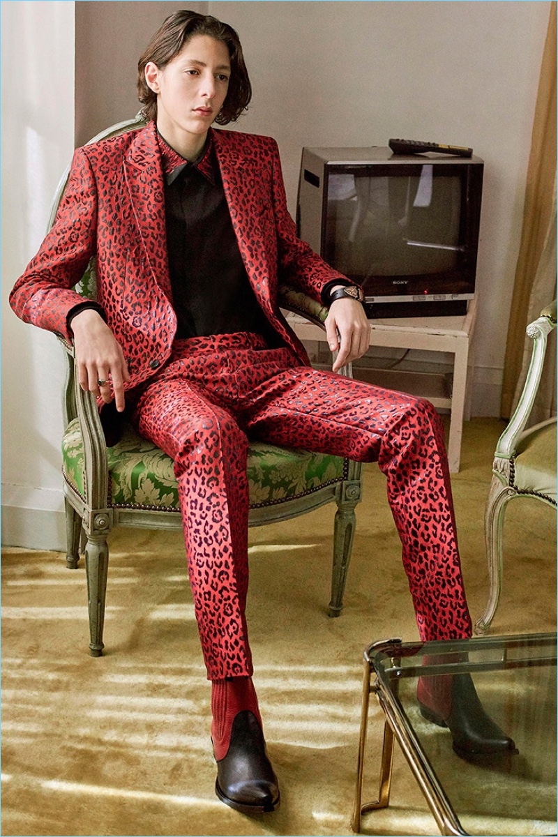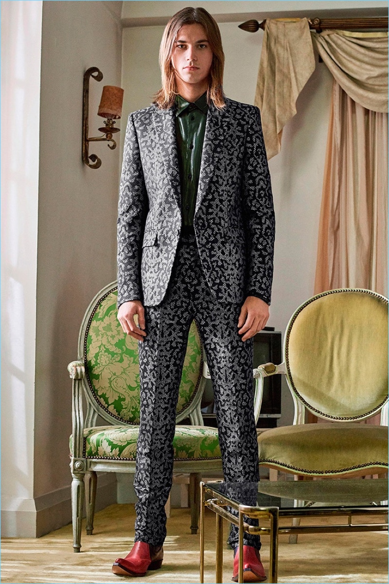 Designer Clare Waight Keller follows up her Givenchy debut with the fashion house’s pre-fall 2018 men’s collection. The outing continues Keller’s new proposal for the French brand. It combines an urban ease with a chic rocker’s cool. The season includes statement pieces such as a leopard print suit in grey and red. The bold suiting is rivaled by both printed and color blocked leather boots. On a more casual note, the parka and leather bomber jacket make an appearance. Tailoring tackles oversized proportions with must-have coats. Fit for the modern man of style, Givenchy’s lineup also includes skinny jeans, graphic tees, and sneakers.