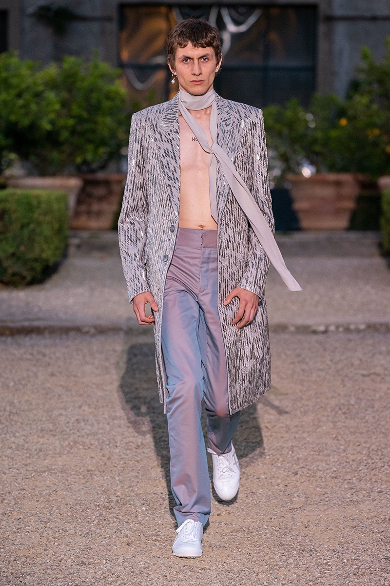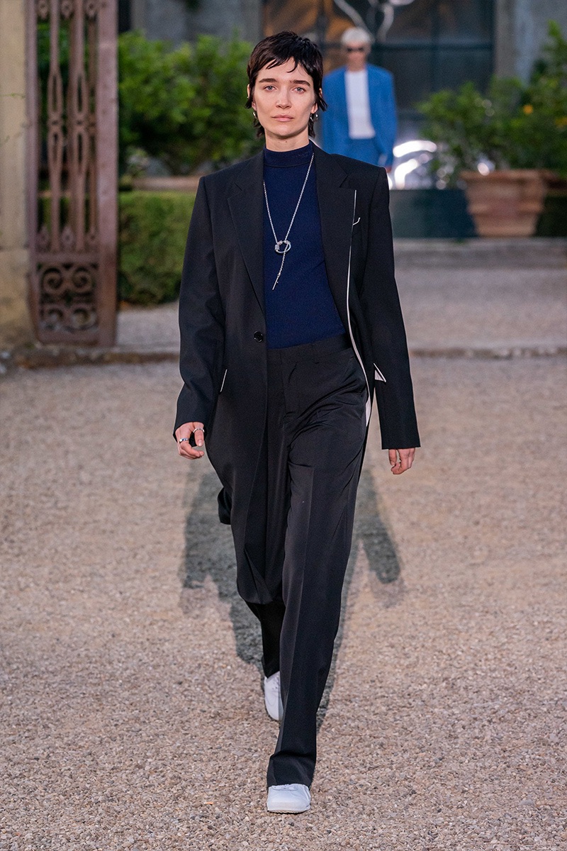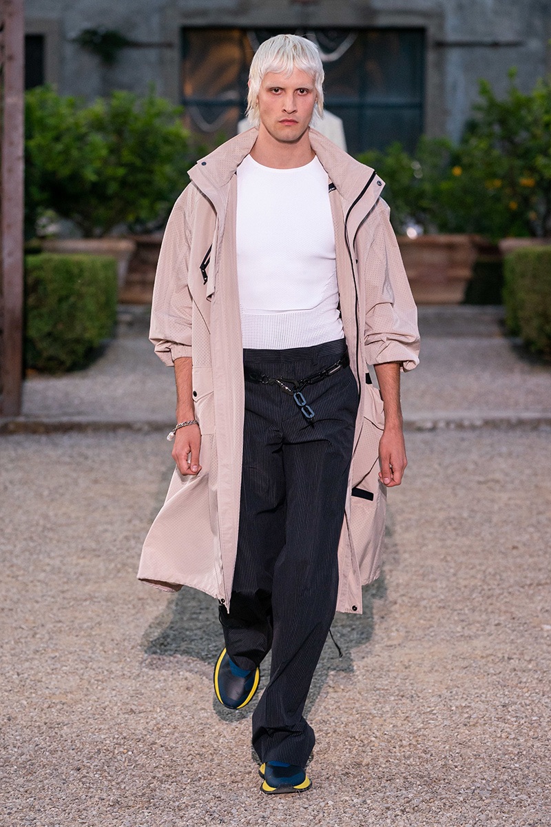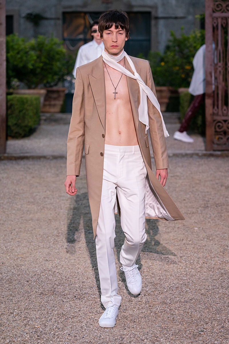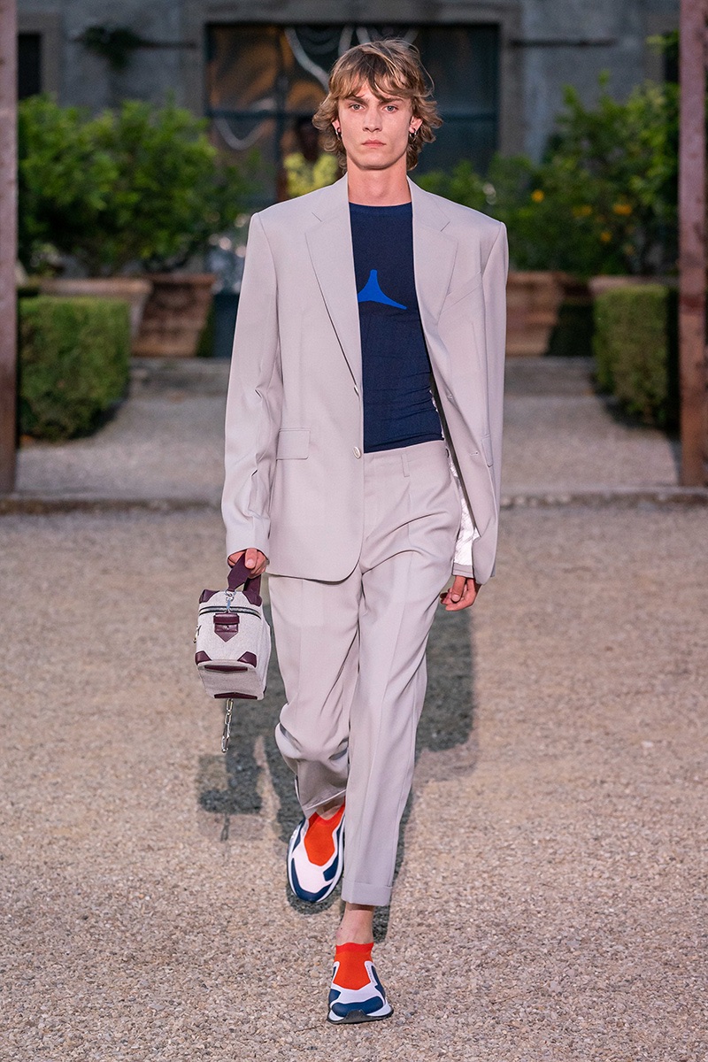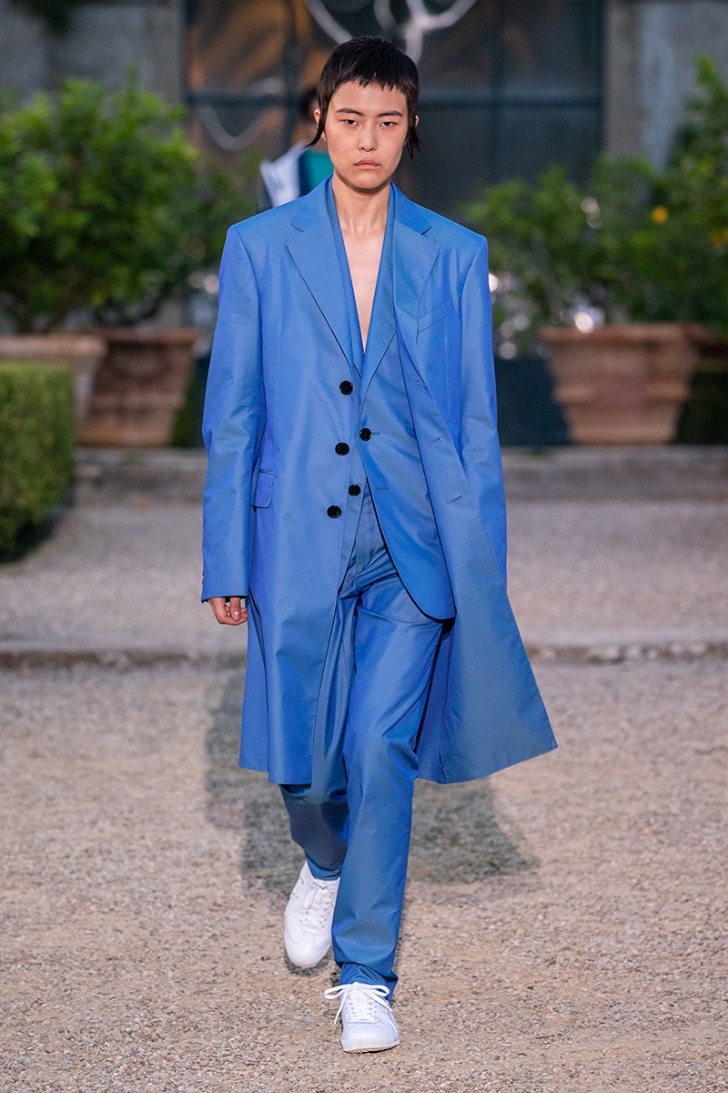 Seoul, South Korea is the starting point for Givenchy’s latest outing. The city’s street culture and youth inspire the fashion house’s spring-summer 2020 men’s collection. Artistic director Clare Waight Keller references Seoul’s unique hypersensitivity to fashion and style for the occasion. She blurs the lines between traditional tailoring and athletic-inspired apparel. A relaxed silhouette overtakes the season as a chic casualness strengthens to a well-rounded wardrobe. Long double-breasted coats and baggy trousers complement sneakers, while fitted tanks and wide-leg pants bring to mind the attitude of the ’90s. Meanwhile, vibrant bursts of color such as orange and red offset blue and neutral tones.