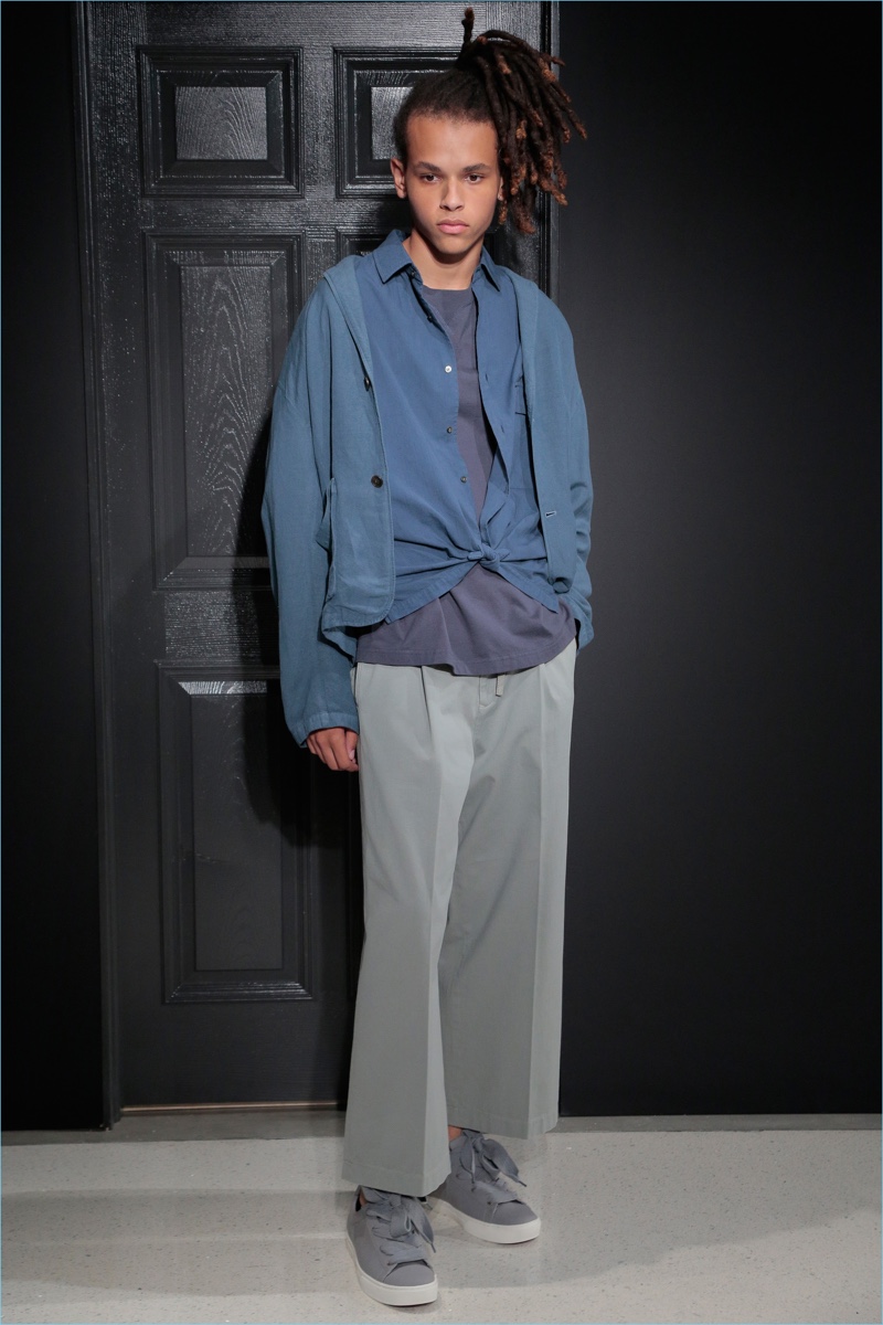 Designer Robert Geller launches his new label Gustav von Aschenbach for spring-summer 2018. The brand’s name comes from Thomas Mann’s novel Death in Venice, while the foray represents Geller’s efforts to reach a broader market. Here, an exploration of color and relaxed shapes come together. Spring sees a mix of red, concrete green, ochre, topaz, and black. The color palette brings to mind the paintings of Joseph Albers and works well with oversized, boxy, and rounded silhouettes. Reinforcing an ease in style, the lineup of shorts, cardigans, shirts, and wide-leg trousers feature the use of Japanese linens, washed cottons, linen blends, and cotton-nylon.