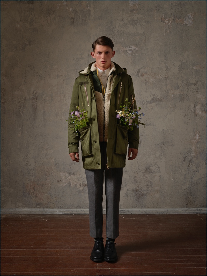 H&M introduces us to ERDEM with its fall-winter 2017 collaboration. While the label is known for its romantic womenswear, ERDEM makes its menswear debut with H&M. Elegant tailoring and construction detail the brand’s English style. Hero pieces for the lineup range from floral print shirts and graphic knitwear to ruffled tops. Photographer Michal Pudelka captures a glimpse at the collection, which launches November 2, 2017. Pudelka talks about the collaboration. “ERDEM x H&M is a collection that really spoke to me, and I wanted to create for it a lookbook with a twist.” The photographer continues, “I love to add elements of surprise and surrealism, and thought of details to enhance the atmosphere, like flowers being handed to the model from out of frame.”