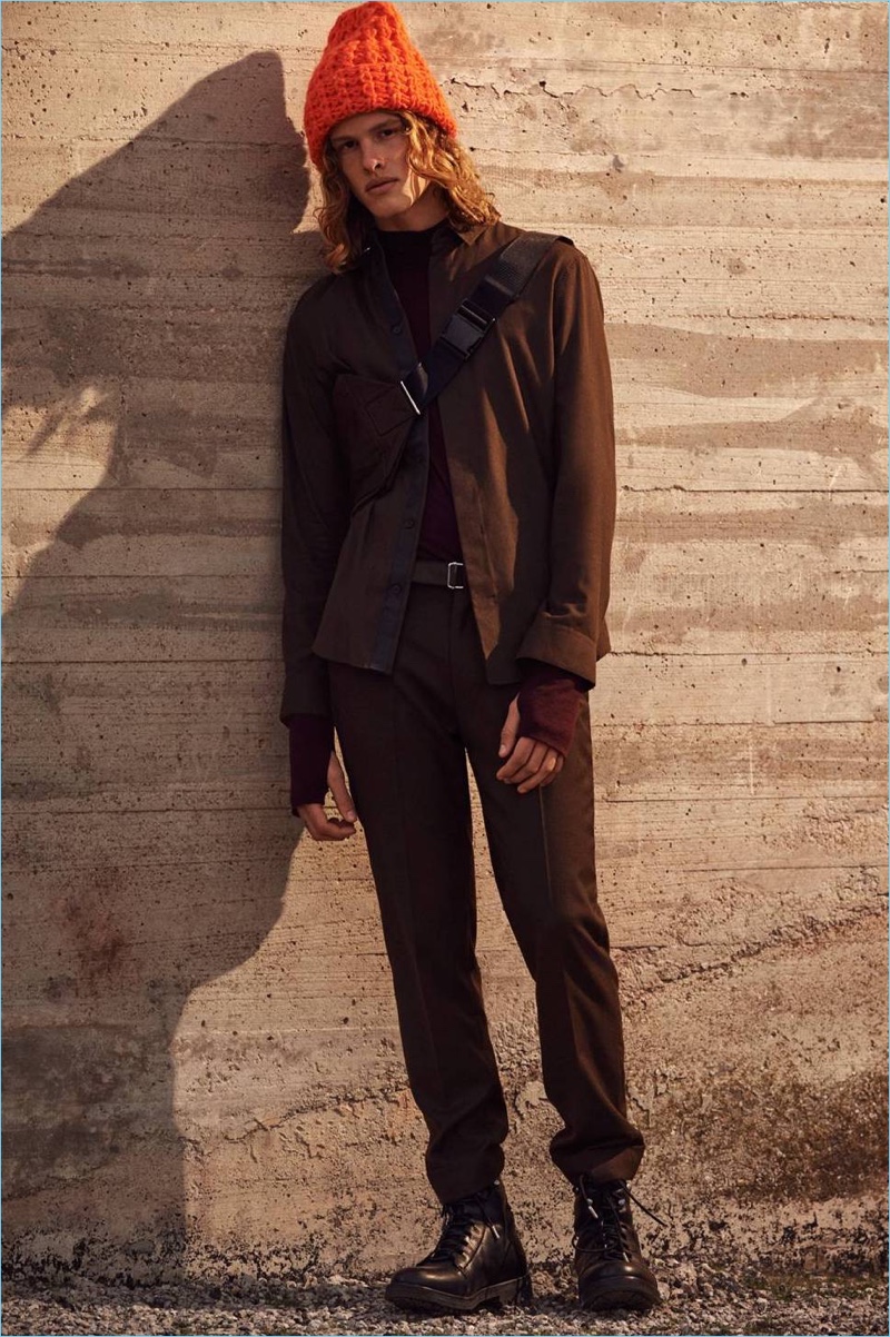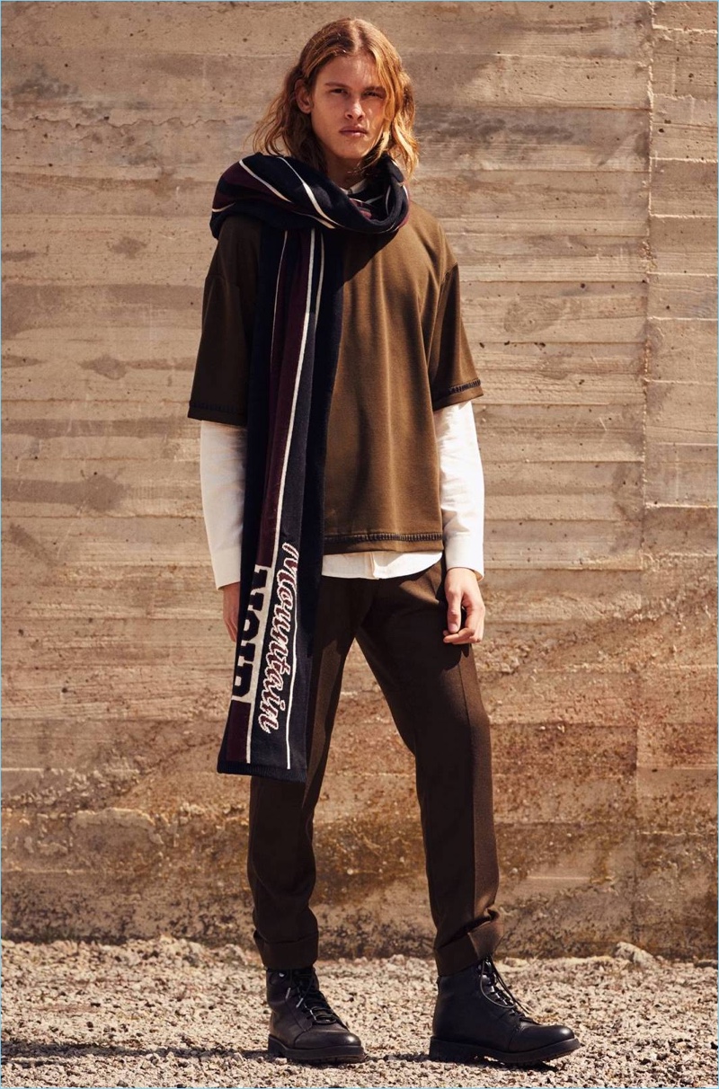 H&M taps into a rugged style for fall-winter 2017. The H&M Studio collection looks to the outdoors spirit of 1950s mountaineers for style inspiration. It’s here that the Swedish brand pulls off a smart balancing act. Modern silhouettes come together with the idea of classic pieces. Ready for cold weather, H&M puts the spotlight on functional outerwear, covetable knitwear, chic accessories, and contemporary essentials. Approaching casual style, t-shirts are oversize and boxy. Meanwhile, striped scarves and slouchy knit beanies offer the perfect way to complete ensembles.