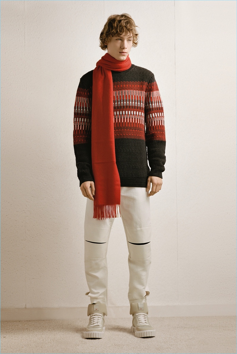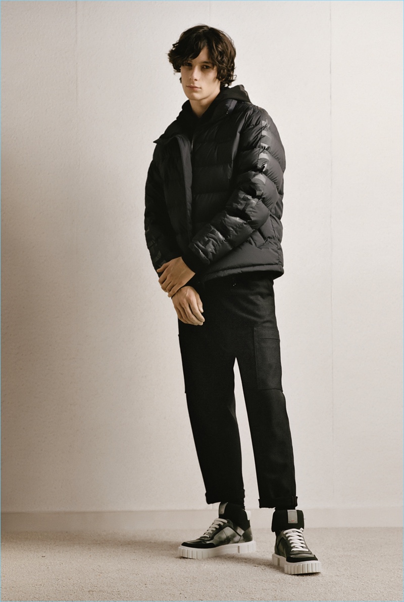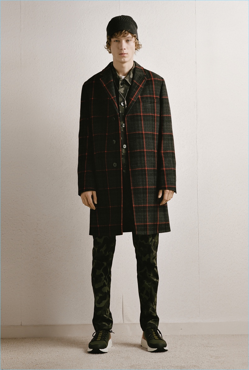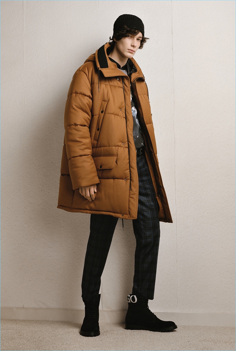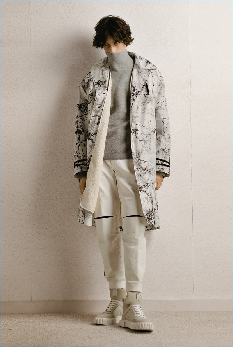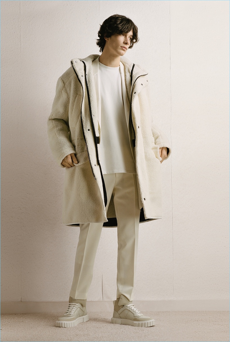 HUGO tempers the harsh cold of winter with an urban take on the season. The German brand makes a graphic proposal with images of an icy landscape. Meanwhile, tailoring and casual sportswear seamlessly blend for a fall-winter 2018 collection that is both youthful and polished. Mountaineering serves as a rugged inspiration but is taken in a sleek direction. Belted or harnassed trousers complement oversized puffer coats, refined pullovers, and more. A unique camouflage print also adds to the collection’s charm.