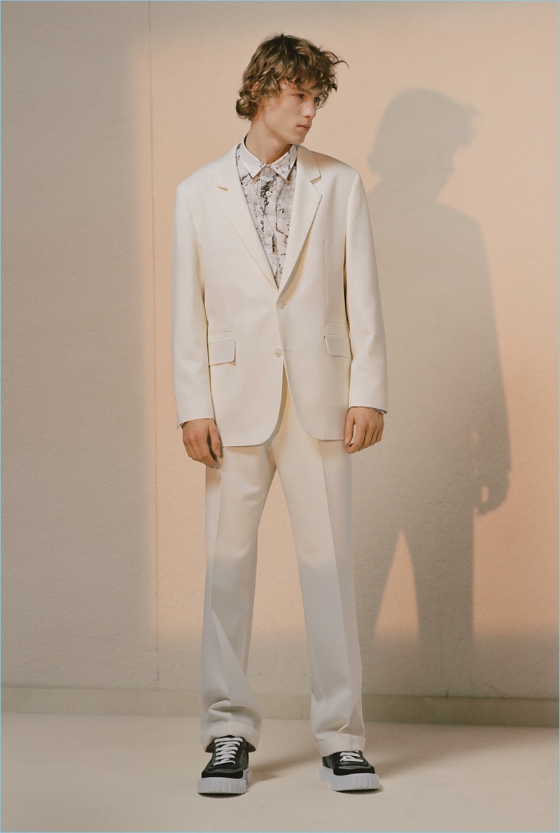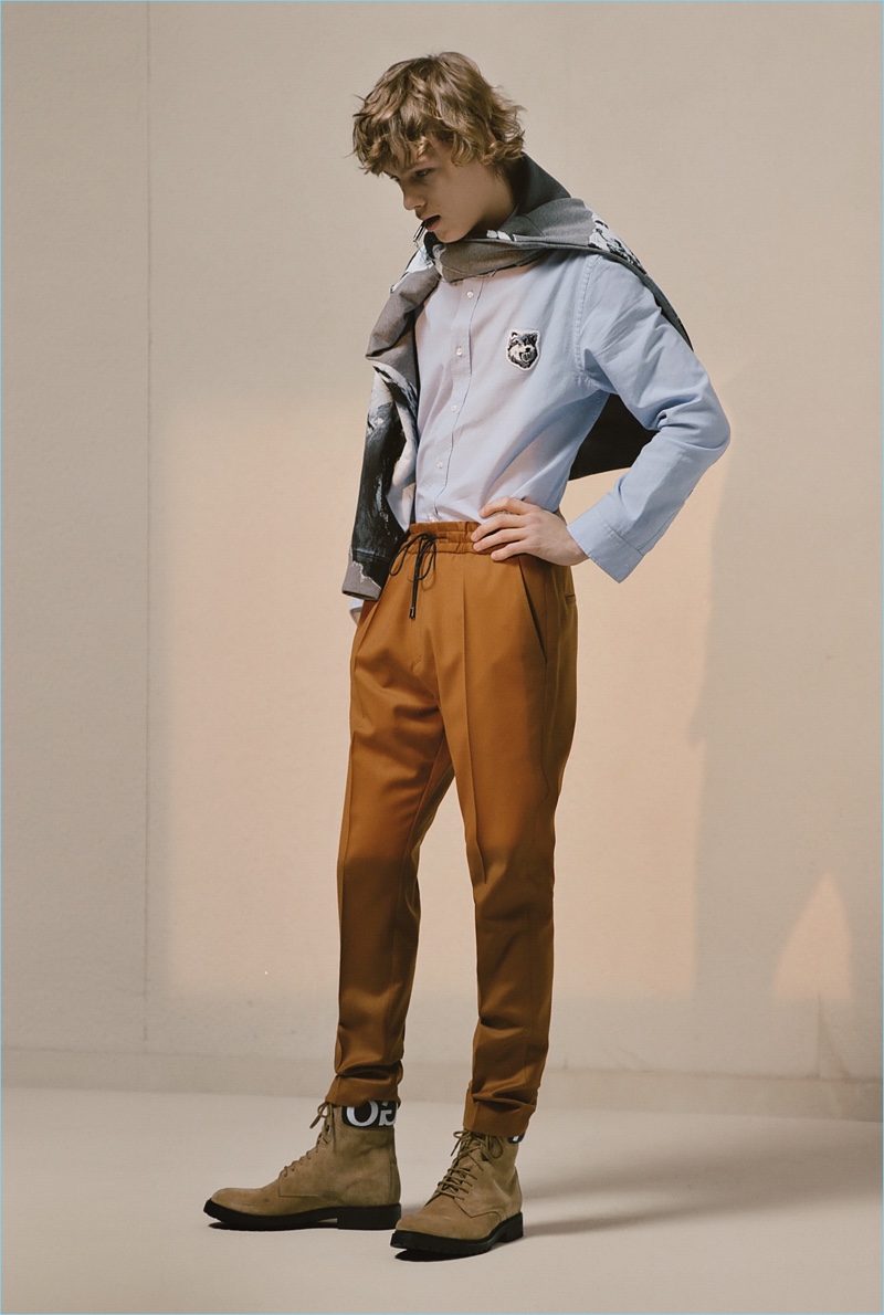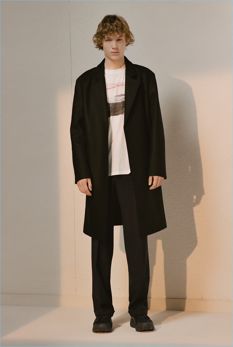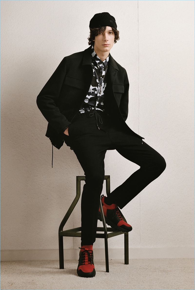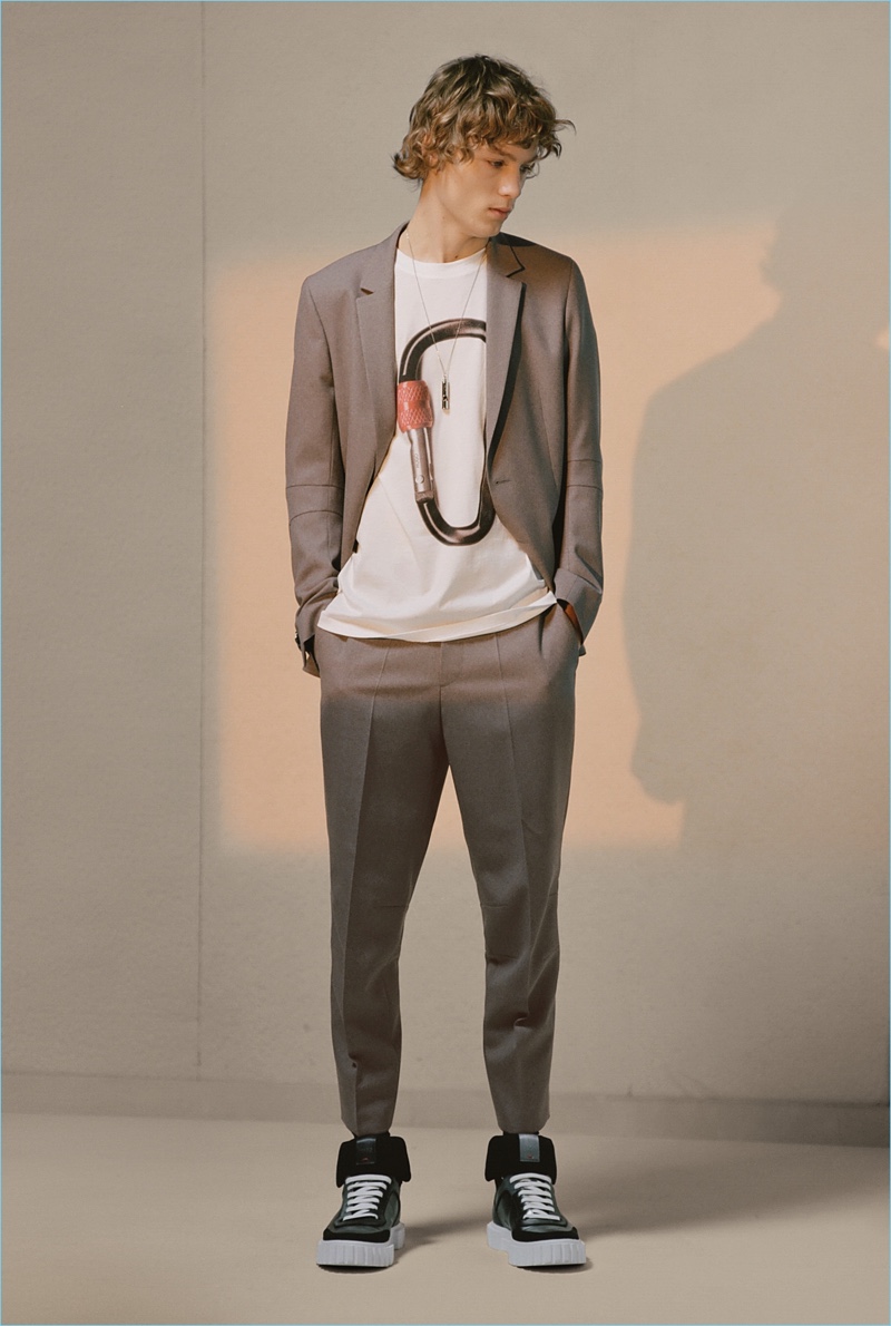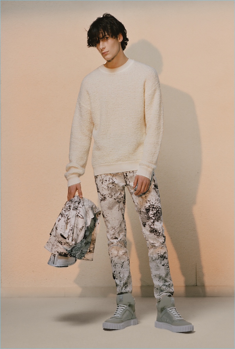 HUGO tempers the harsh cold of winter with an urban take on the season. The German brand makes a graphic proposal with images of an icy landscape. Meanwhile, tailoring and casual sportswear seamlessly blend for a fall-winter 2018 collection that is both youthful and polished. Mountaineering serves as a rugged inspiration but is taken in a sleek direction. Belted or harnassed trousers complement oversized puffer coats, refined pullovers, and more. A unique camouflage print also adds to the collection’s charm.
