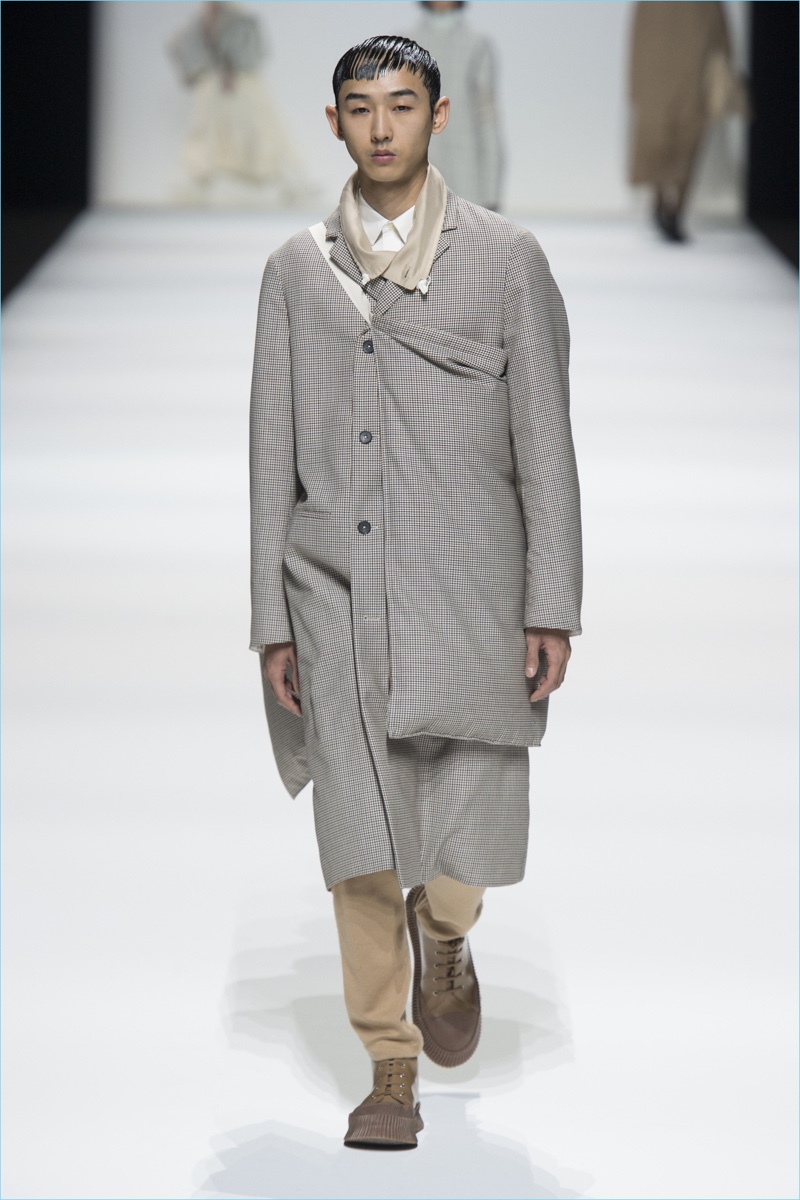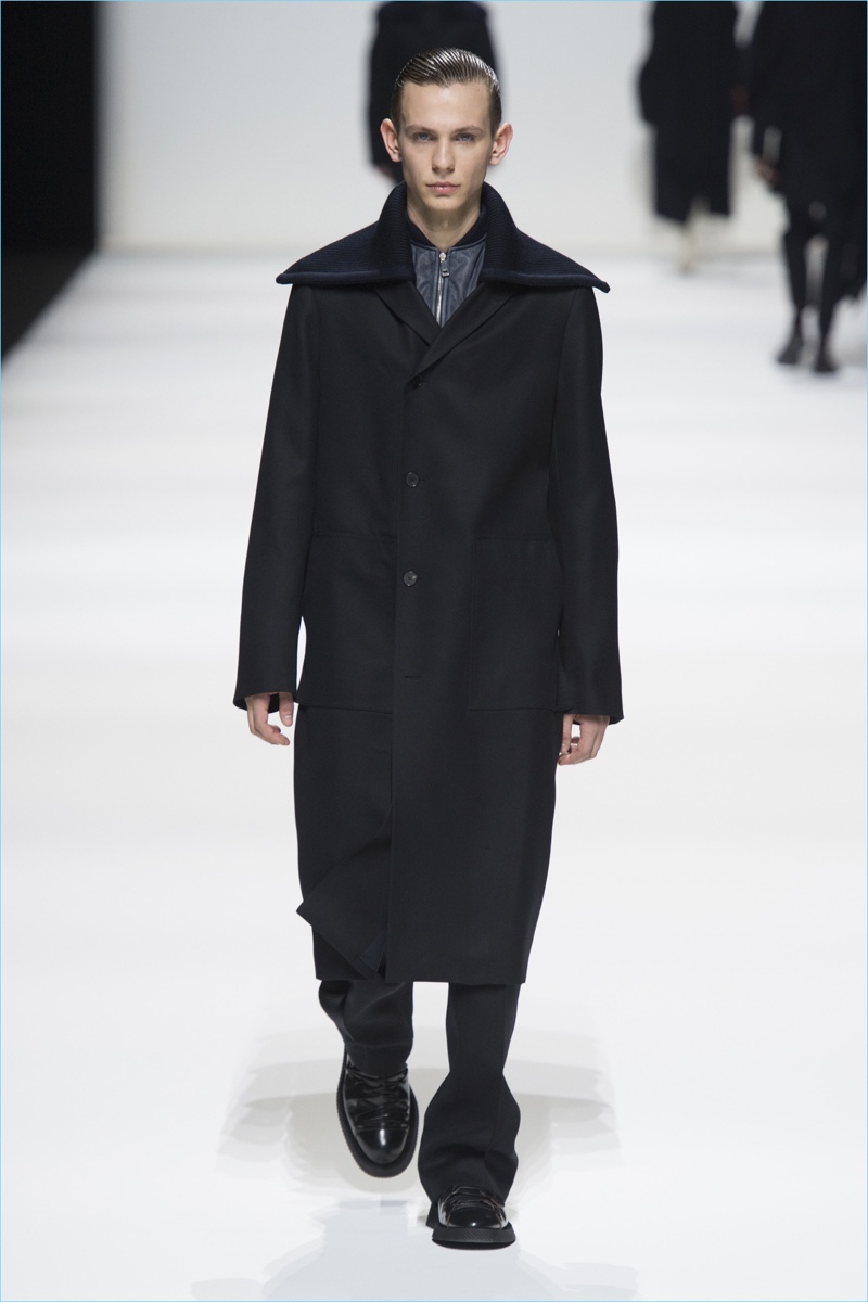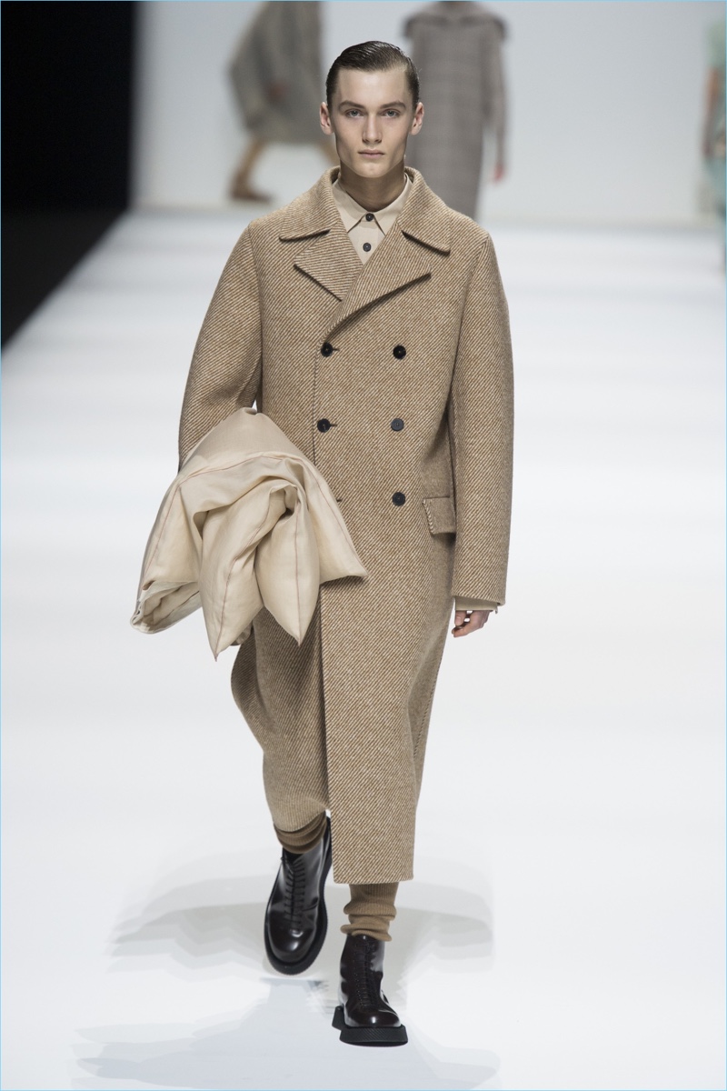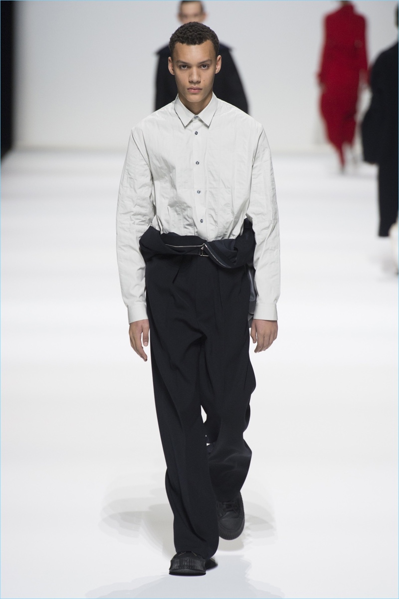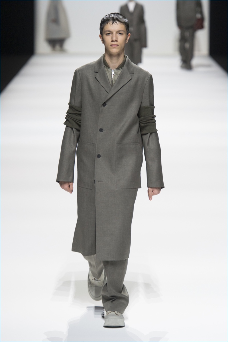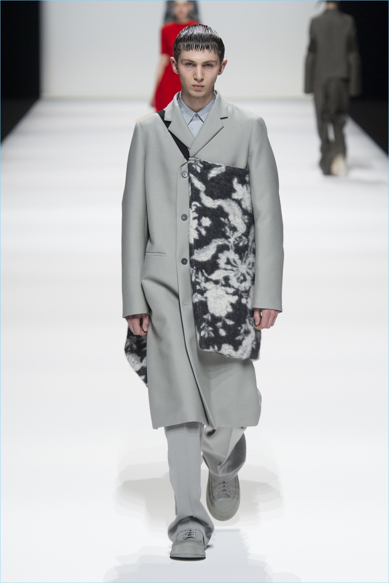 Afer unveiling its latest lookbook, Jil Sander took to Milan Fashion Week for a co-ed show. Designers Lucie and Luke Meier presented their version of “A HuMAN FuTuRE.” The fall-winter 2018 collection captures the spirit of human sensitivity. The brand shares in press notes, Even while considering the journey to space or to the far reaches of our planet, sophistication and elegance can be demonstrated. Creating this plus retaining a feeling of the familiar is what makes us have a positive view of what lies ahead.