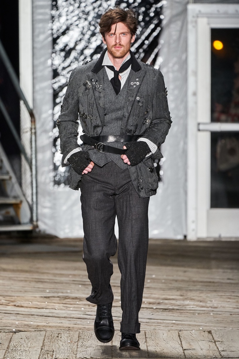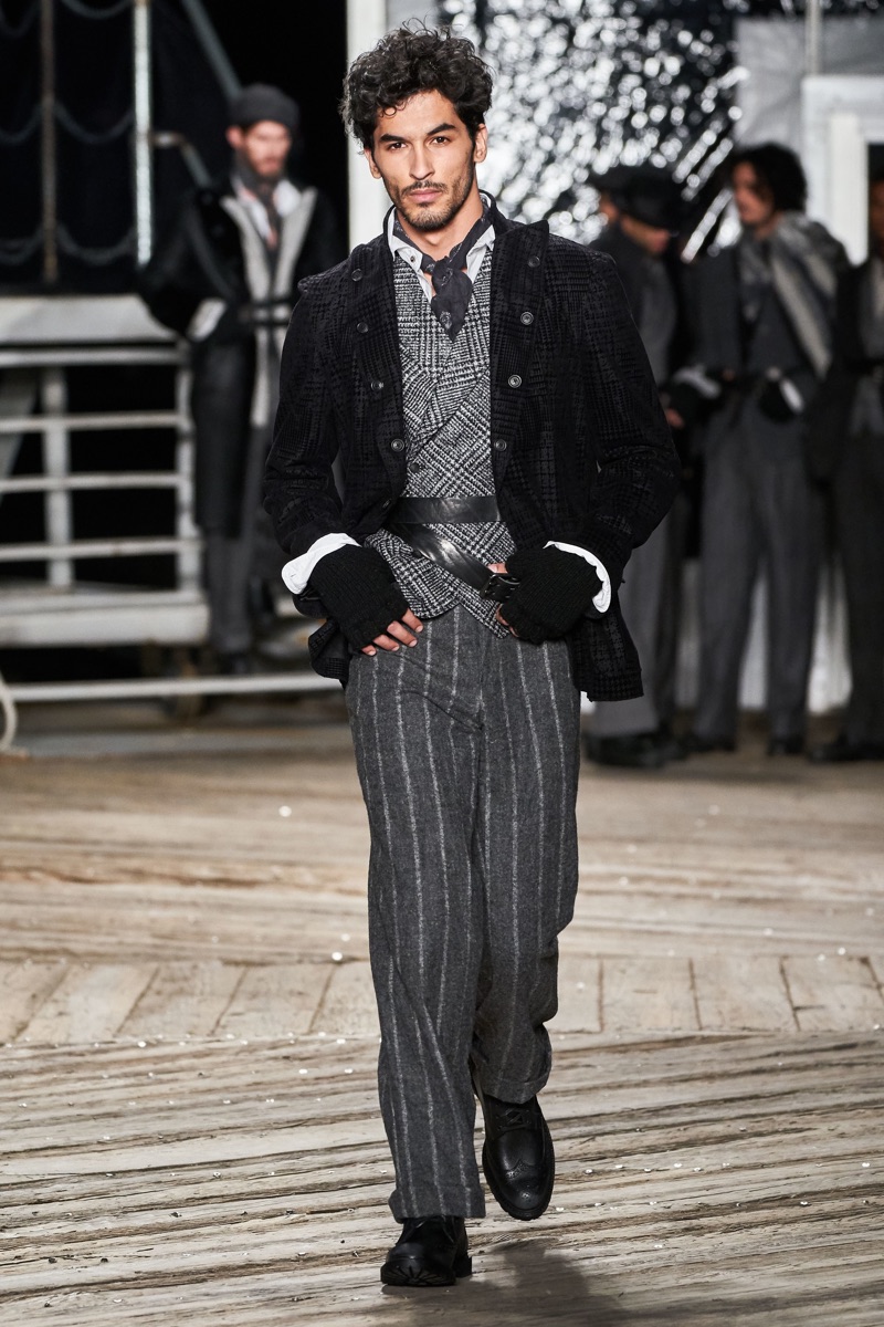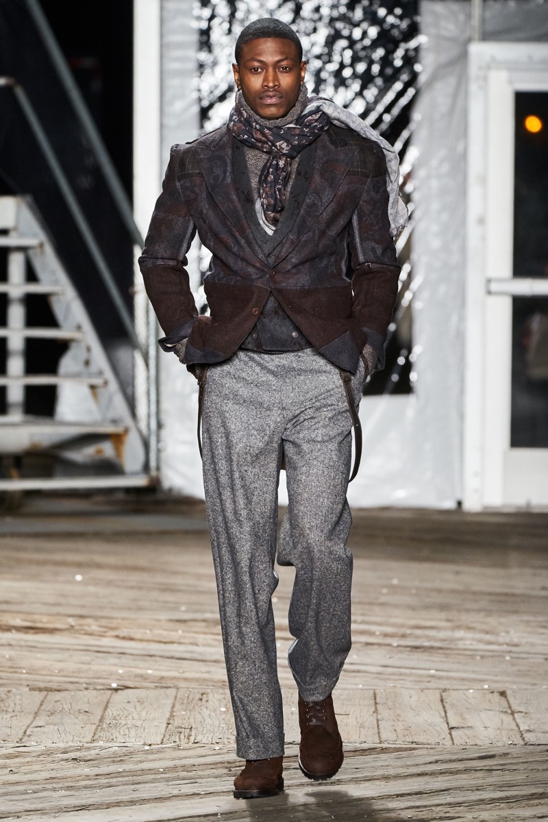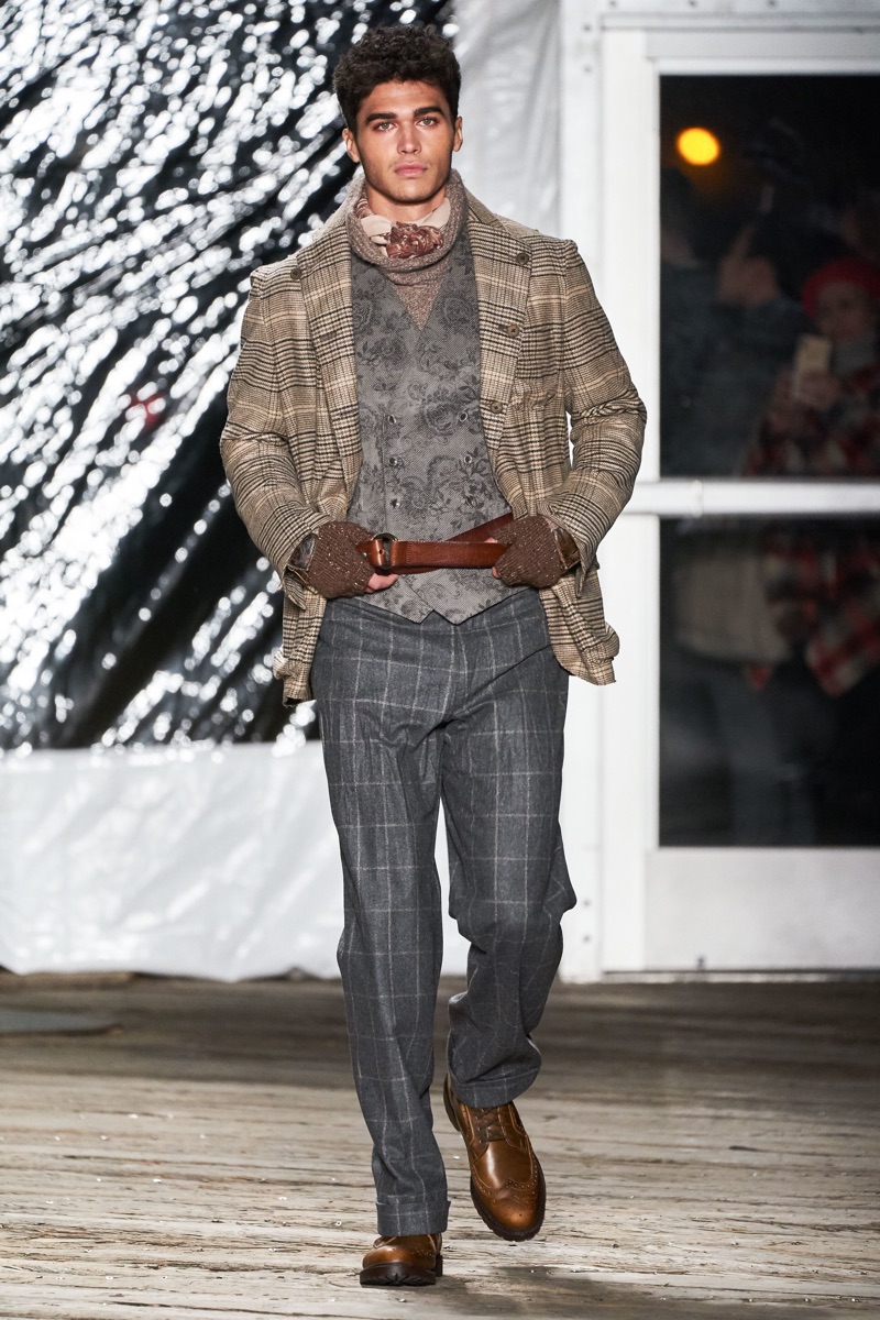Joseph Abboud presents the “Heritage of Style” with its fall-winter 2019 collection. The designer takes inspiration from early 20th century American style. An old world style charms as Abboud delivers as usual with an elegant approach to menswear. Rich browns and shades of grey come together with a focus on tailoring. Wool, tweed, houndstooth, and leather lend the collection its varied textures. Meanwhile, Abboud’s man is elevated with double-breasted vests, layered with sharp jackets and refined coats. While, the lineup taps into the classic flair of the gentleman, Abboud’s menswear looks after the modern man with a focus on separates that can easily be interchanged for impressive looks.