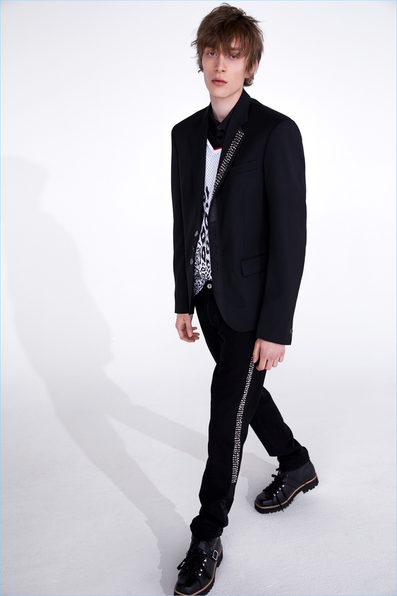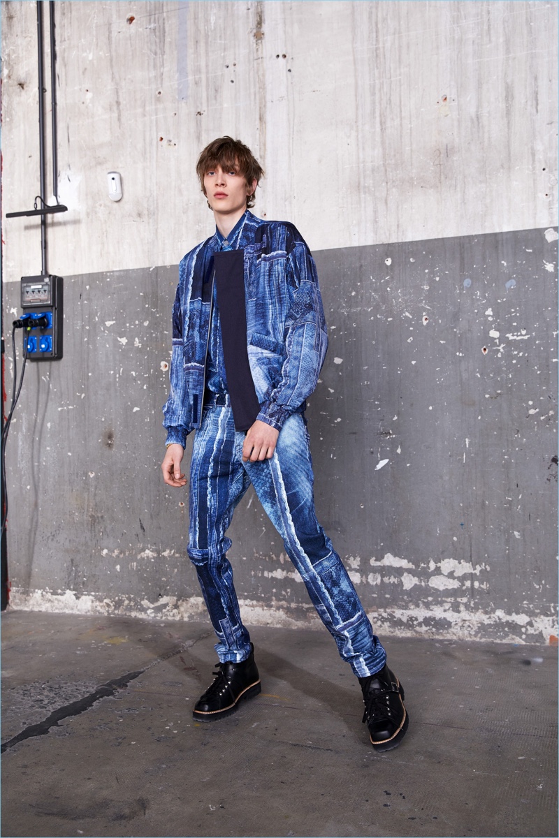 Roberto Cavalli artistic director Paul Surridge continues to reshape the fashion house for spring-summer 2019. Approaching Just Cavalli’s new collection, Surridge sought a balance between the label’s rock ‘n’ roll heritage and what men seek style-wise today. The results include a juxtaposition of signature Cavalli quirks like the use of animal prints with a contemporary streetwear vibe. It’s a no-brainer that denim plays a big part in this narrative. Embracing both slim-fit and relaxed styles, the collection’s jeans complement current trends. Surridge delivers embellished denim as well as light washes that tap into the nineties style trend. Bomber jackets, graphic sweatshirts, and printed shirts also make the edit. Finally, tailoring is an option for the Just Cavalli man with sharp jackets and trousers adding a rock vibe.