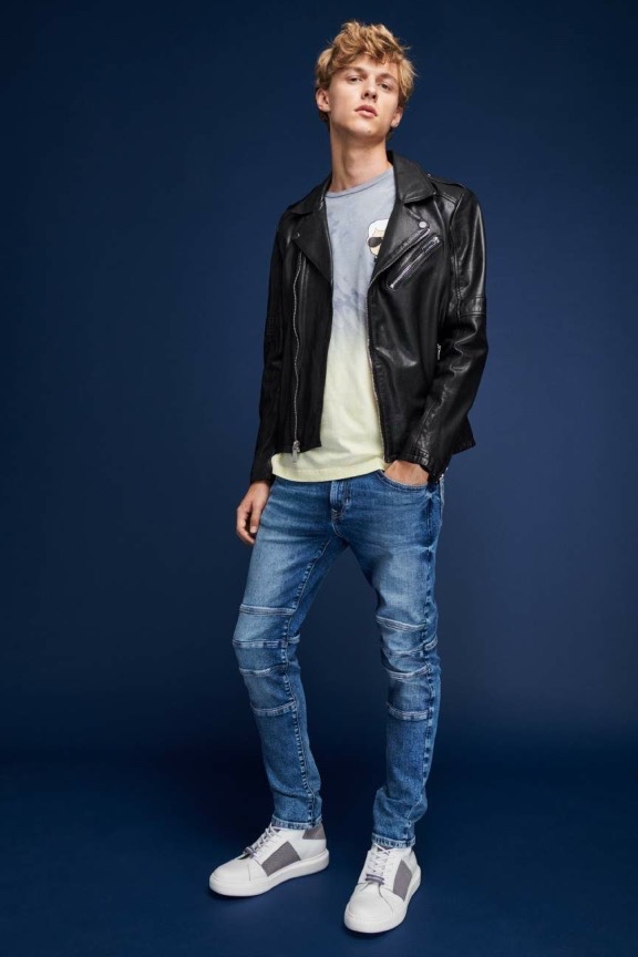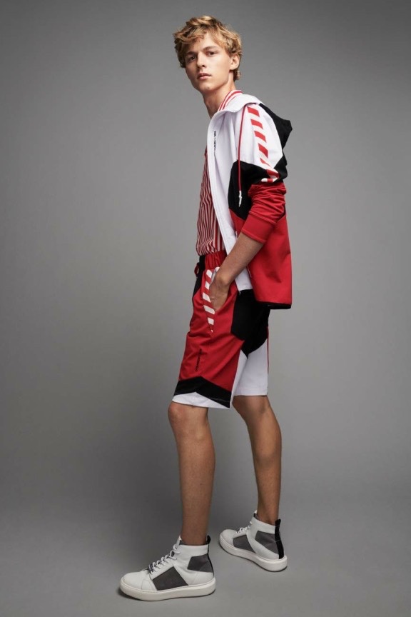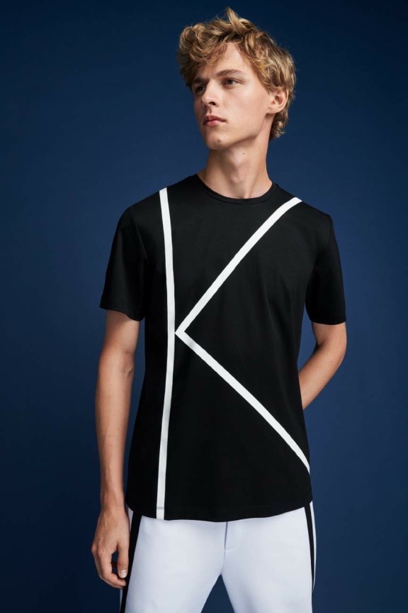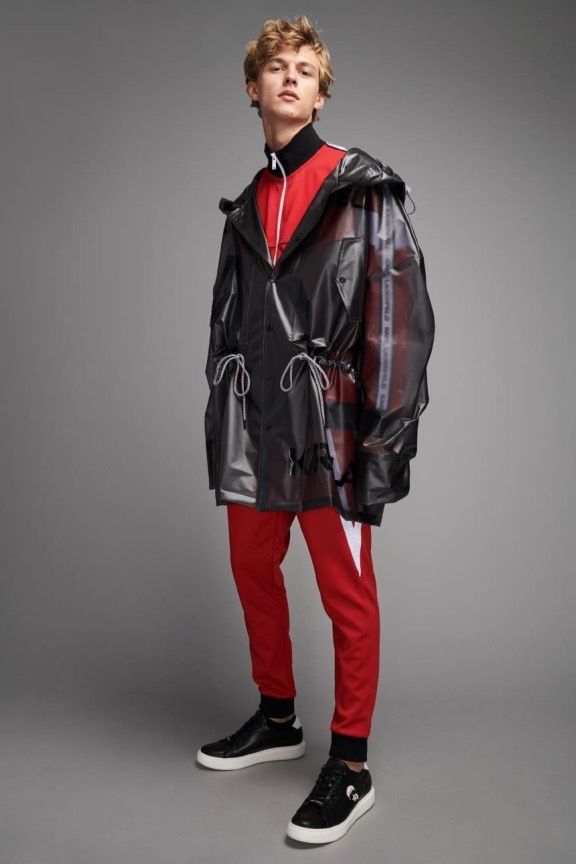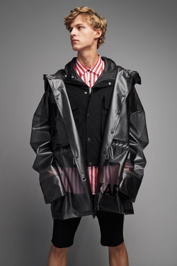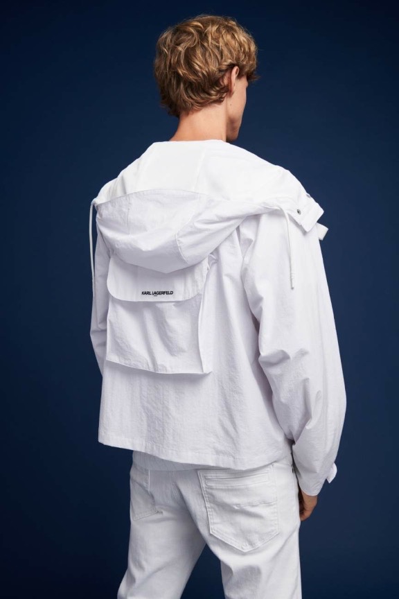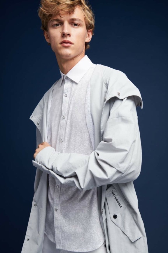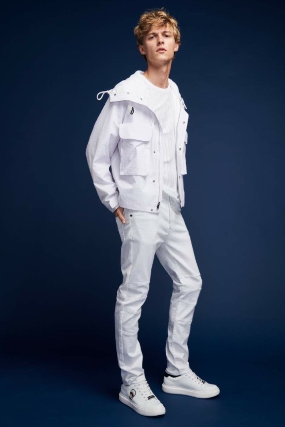 Karl Lagerfeld Paris makes a sporty statement with its spring-summer 2020 men’s collection. Relaxed athletic fits come together with an everyday color palette. Bright pops of red and blue offset black, white, and gray. Reuniting with Karl Lagerfeld Paris for the season, model Max Barczak stars in the label’s lookbook. Taking to the studio, he wears key pieces such as a translucent parka, striped shirt, and cropped jacket. The lineup of wardrobes also includes pull-on shorts, hooded jackets, joggers, graphic tees, and skinny jeans.