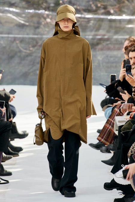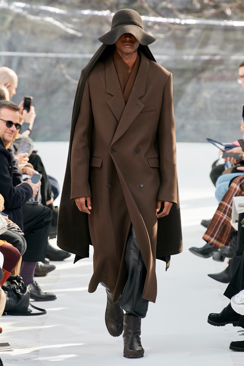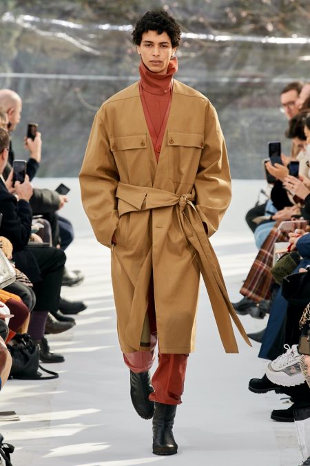 New Kenzo creative director Felipe Oliveira Baptista makes his debut with the brand’s fall-winter 2020 collection. Baptista hits an editorial-ready reset for the label by replacing a streetwear focus with a refreshing emphasis on the design aspects of menswear. Therefore, long structural shapes define the season as Baptista revisits Kenzo’s history of nomadic themes. Outerwear is the undeniable hero with the juxtaposition of sleek, classic lines and experimental draping. Meanwhile, statement knitwear features a fresh interpretation of Kenzo’s signature tiger motif. Straight but baggy pants, oversized hats, and the practical bag or two round out Kenzo’s inspiring fall collection.