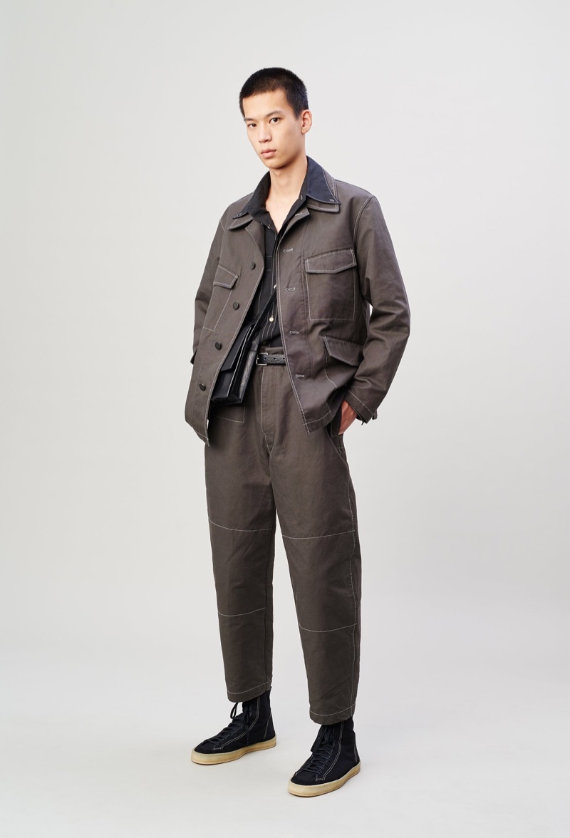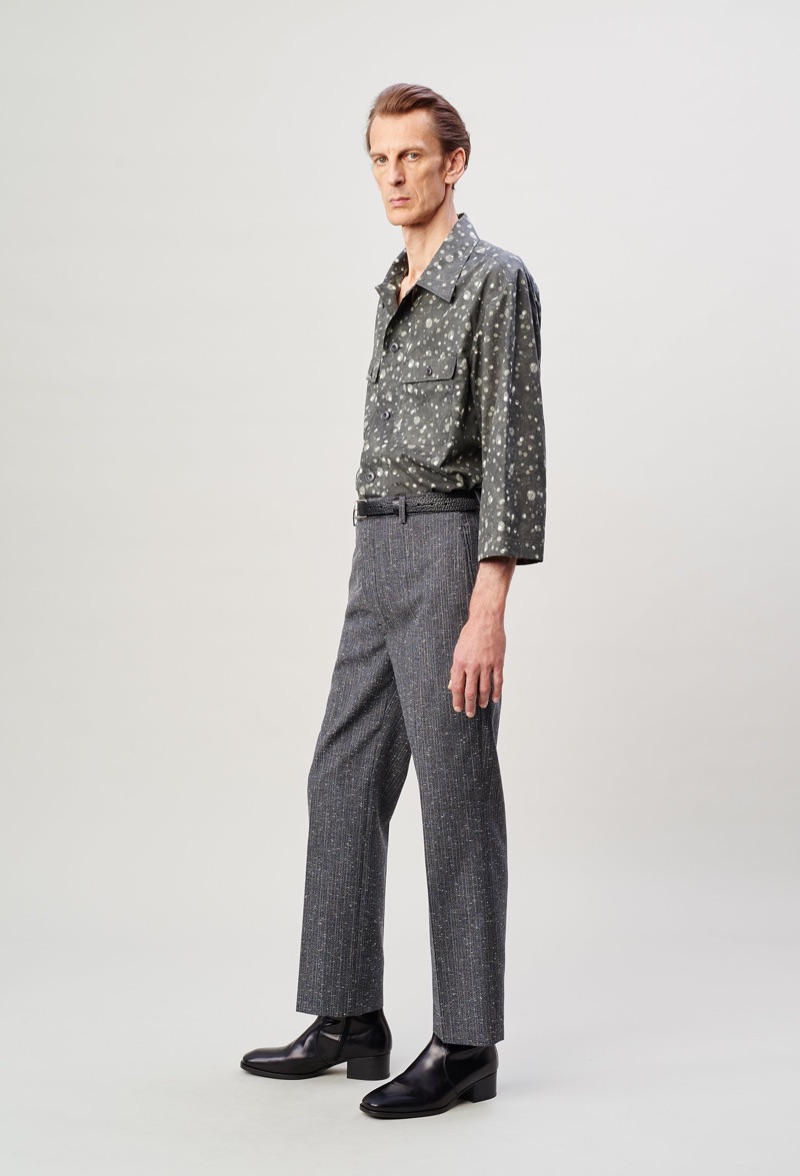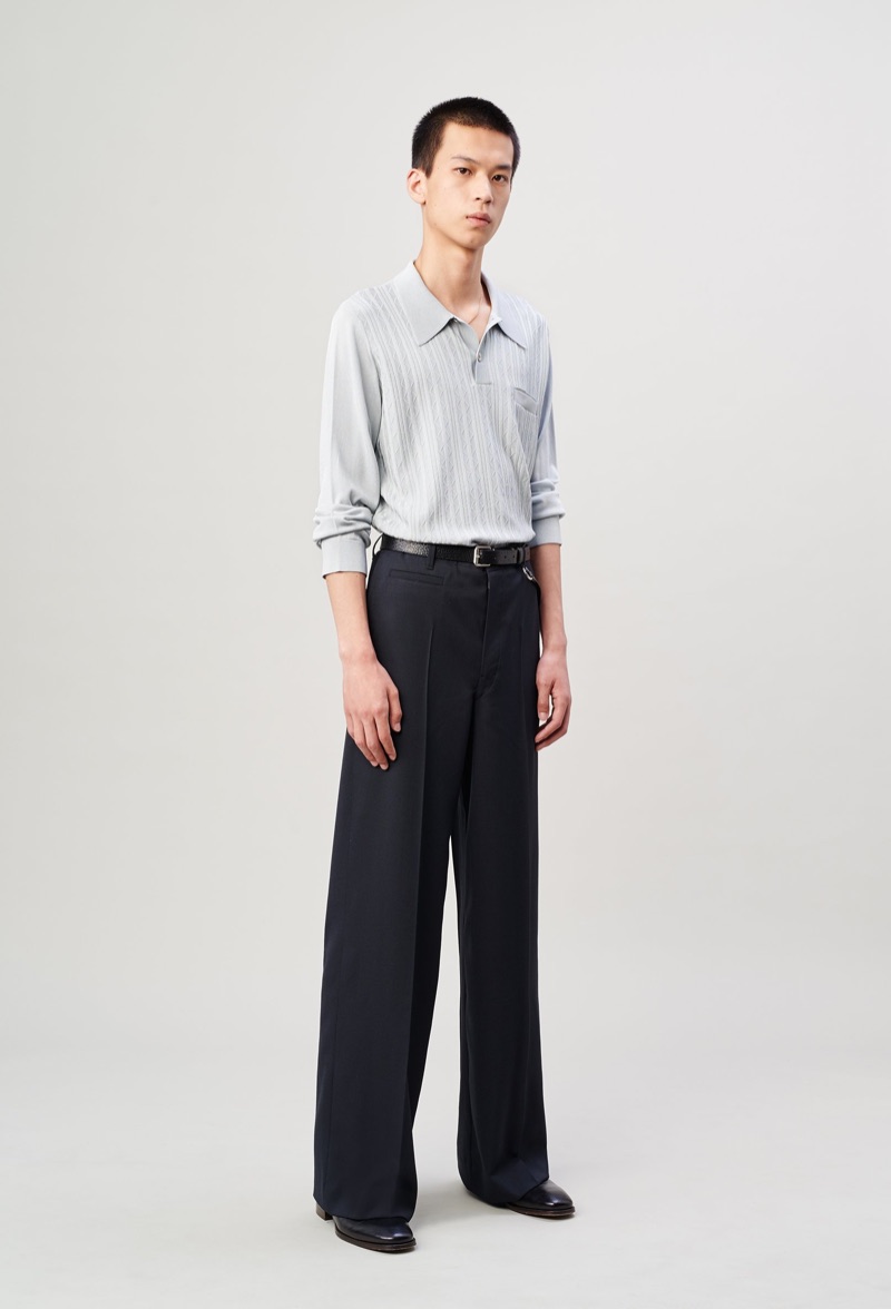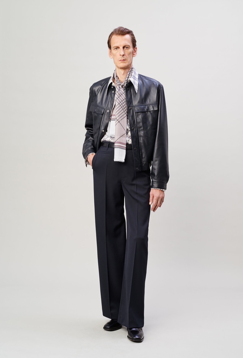 Lemaire takes a page from the seventies with its spring-summer 2020 men’s collection. Christophe Lemaire and Sarah-Linh Tran reference the 1974 film Alice in the Cities. Flared trousers set the mood for the season as Lemaire executes pointed collar shirts, blouson jackets, and polos. Oversized shapes lend the range a balanced style that exists between casual and smart. Neutral separates make an easy case for seamless mix-and-match pieces. Standout men’s clothing ranges from buttery soft leather jackets to covetable trench coats. Relaxed suit jackets and boxy graphic shirts contribute to the lineup as well.