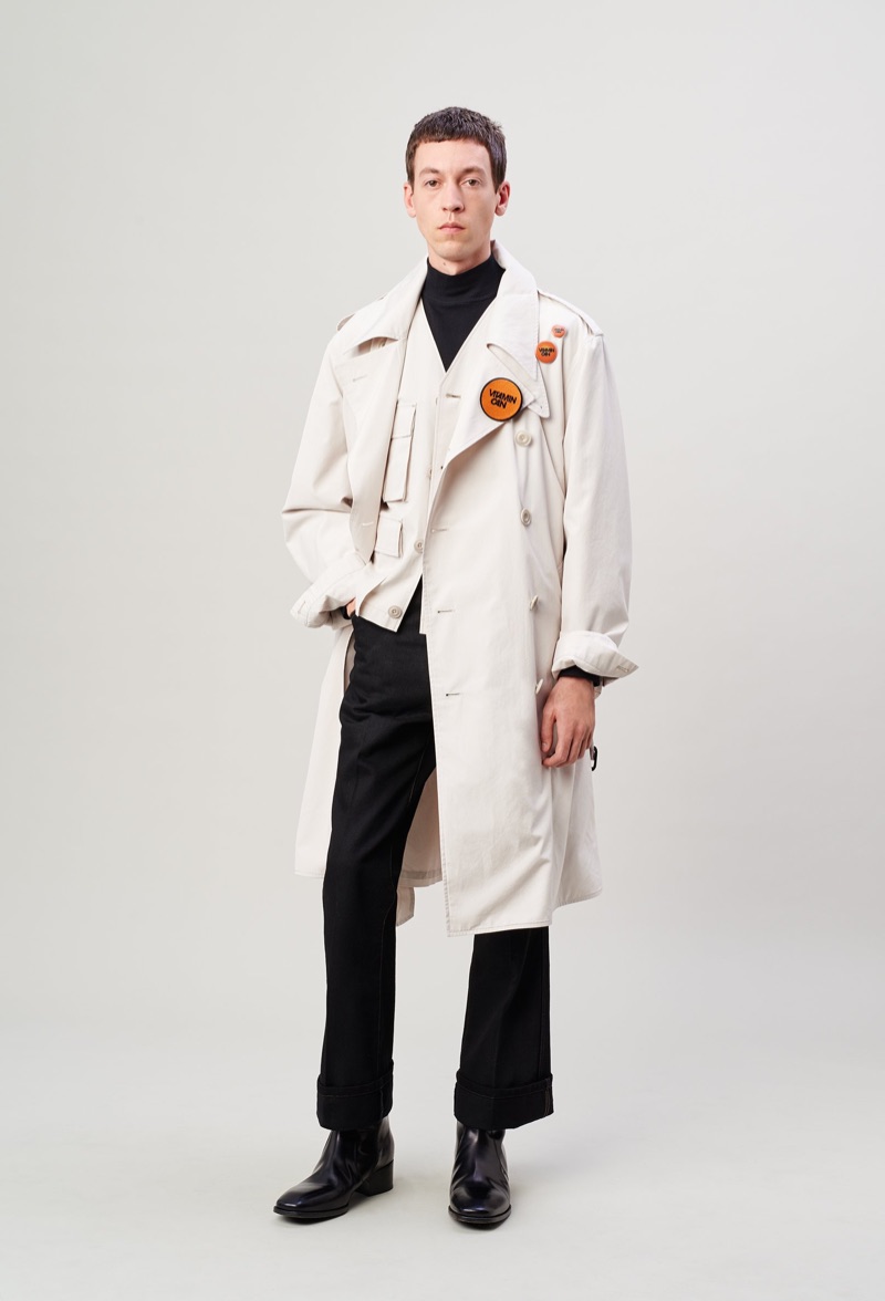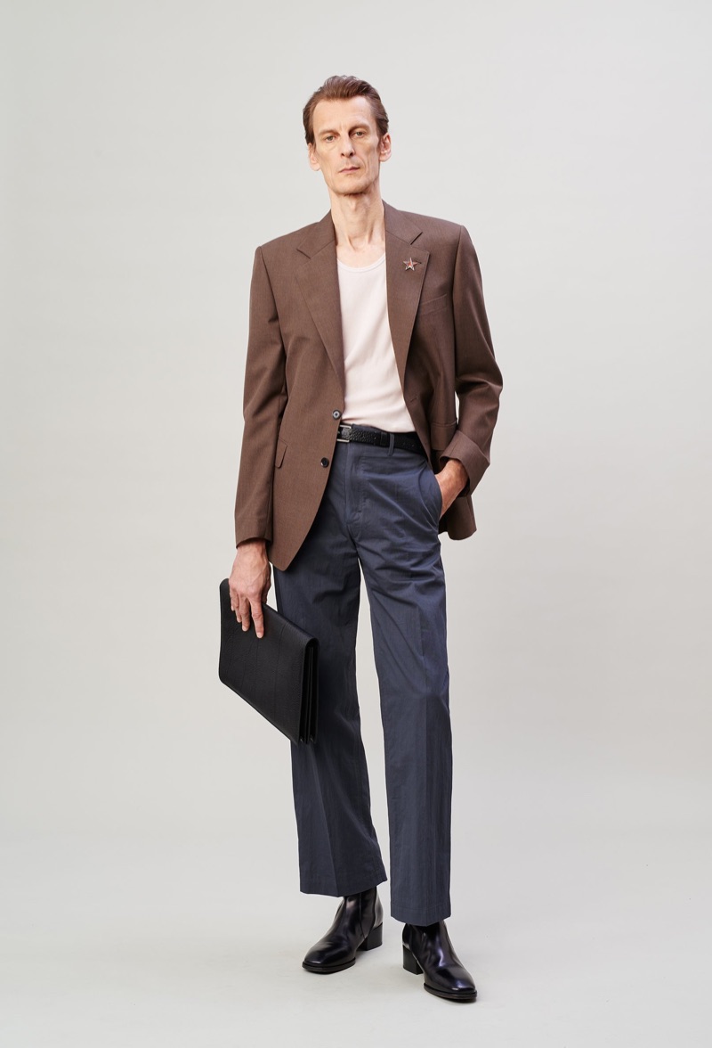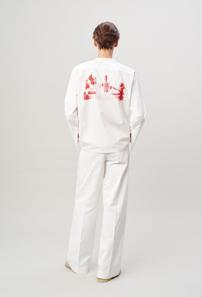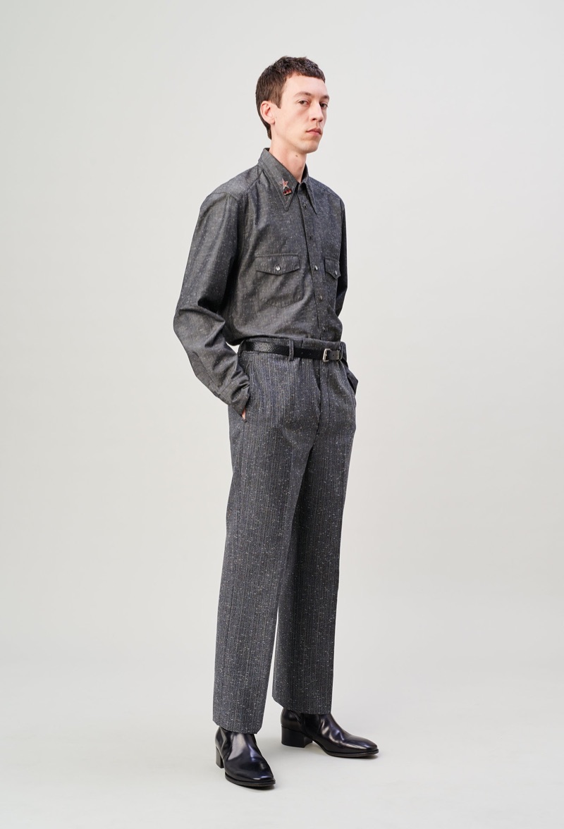 Lemaire takes a page from the seventies with its spring-summer 2020 men’s collection. Christophe Lemaire and Sarah-Linh Tran reference the 1974 film Alice in the Cities. Flared trousers set the mood for the season as Lemaire executes pointed collar shirts, blouson jackets, and polos. Oversized shapes lend the range a balanced style that exists between casual and smart. Neutral separates make an easy case for seamless mix-and-match pieces. Standout men’s clothing ranges from buttery soft leather jackets to covetable trench coats. Relaxed suit jackets and boxy graphic shirts contribute to the lineup as well.