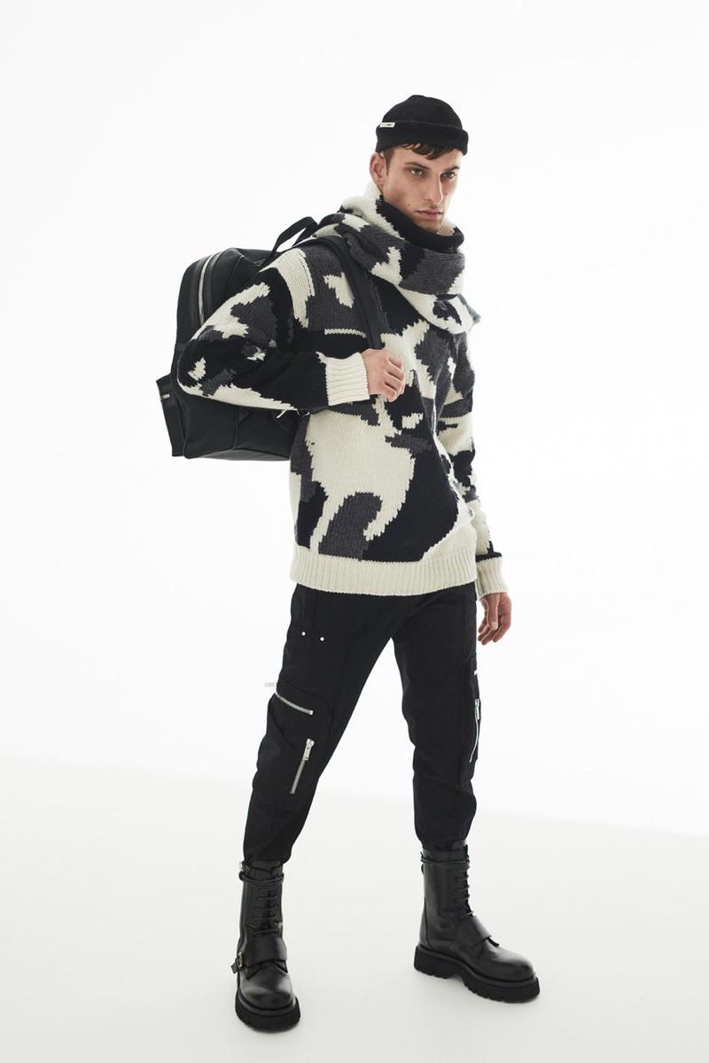Les Hommes designers Tom Notte and Bart Vandebosch borrow elements from tailoring and sportswear for their fall-winter 2021 men’s collection. The sleek lineup comes together in a lookbook that features David Trulik. The top model takes to a contemporary setting to connect with photographer Zeb Daemen and stylist Ivan Bontchev. David embodies the modern Les Hommes man as Notte and Vandebosch play with the ideas that opposites attract. Zippers, leather, and more update sharply tailored suits while referencing classic sportswear. Meanwhile, oversized knitwear joins a wardrobe that includes wool coats, cargo pants, leather jackets, dress shirts, and parkas. A generally black color palette allows the collection’s details to shine while also providing a practical approach to mixing pieces for easy everyday wear.