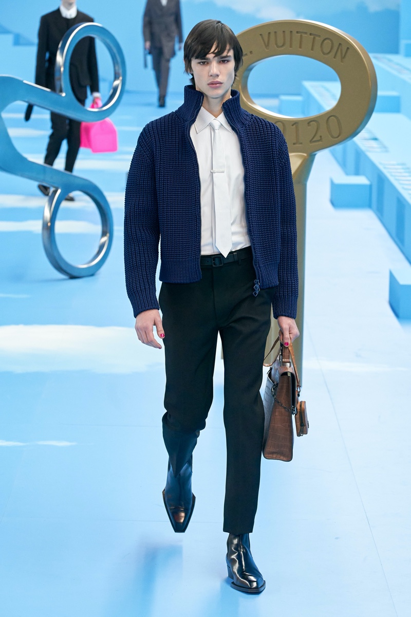 Virgil Abloh embraces “Expanding Horizons” with Louis Vuitton’s fall-winter 2020 men’s collection. The suit is the hero piece of the season as Abloh explores its evolution. Deconstructed and reassembled, modern suits give way to a sportswear lineup of items like the duffle coat, corduroy pants, and trench coat. Bringing the idea of “Expanding Horizons” full circle, finale looks showcase clean silhouettes and dreamy cloud prints. On the accessories front, statement must-haves range from speakers realized as trunks to luxe leather bags in fresh shapes.
