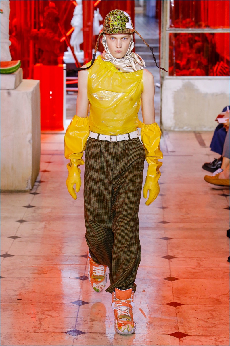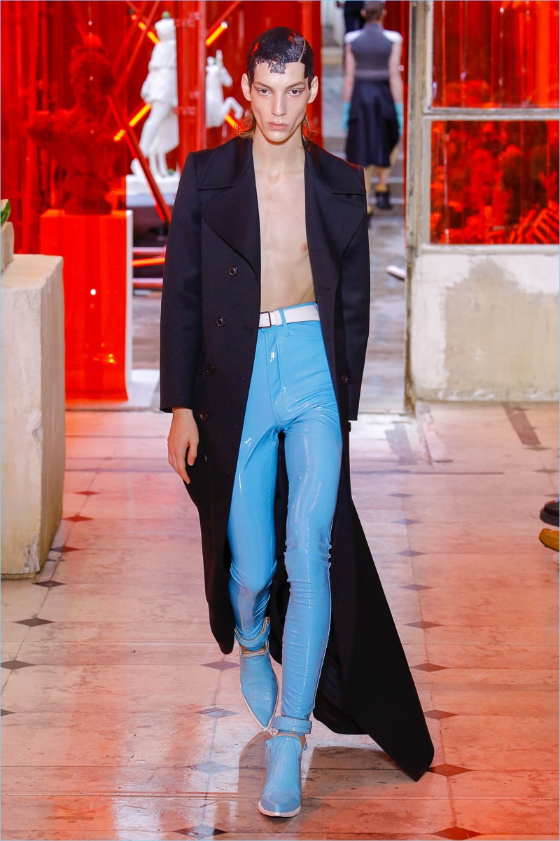 John Galliano brings an avant-garde flair to menswear with his spring-summer 2019 collection for Maison Margiela. The designer broaches the craft of dressmaking in a masculine arena. Galliano’s explorations result in Maison Margiela’s first full Artisanal menswear collection. The show signifies an unrestricted foray onto the territory of Haute Couture for men in a conversation with a new masculinity in motion.