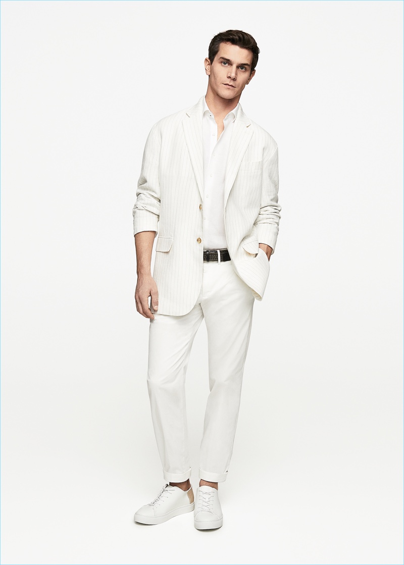 On the heels of unveiling its spring-summer 2018 campaign, Mango releases this season’s lookbook. The outing stars none other than Vincent LaCrocq. Taking to a studio for simple photos, Vincent dons a wardrobe of neutrals. The French model wears chinos and trousers with essential tops. Mango takes an easy approach to everyday dressing. The Spanish brand proposes a lineup of separates. Key pieces range from knitwear and shirt jackets to blazers. Espadrilles and sneakers complete Mango’s spring look.