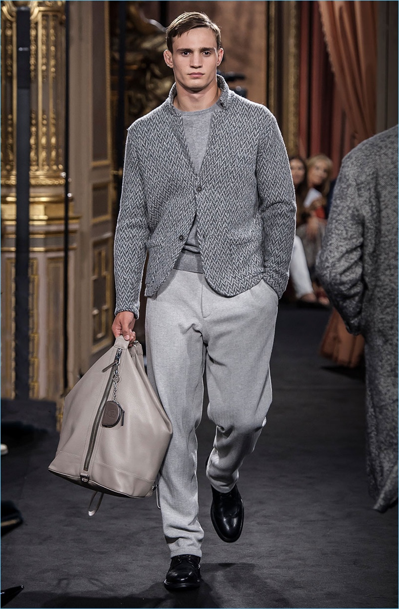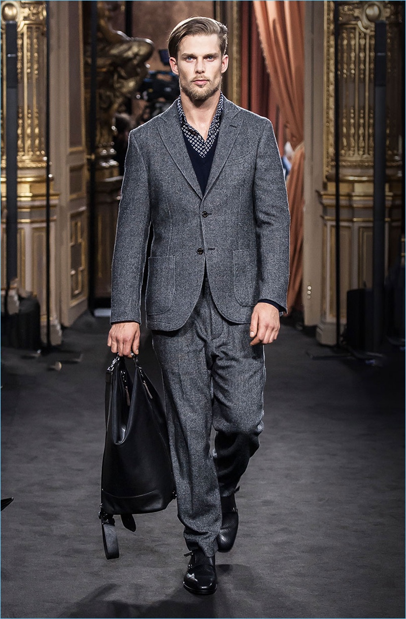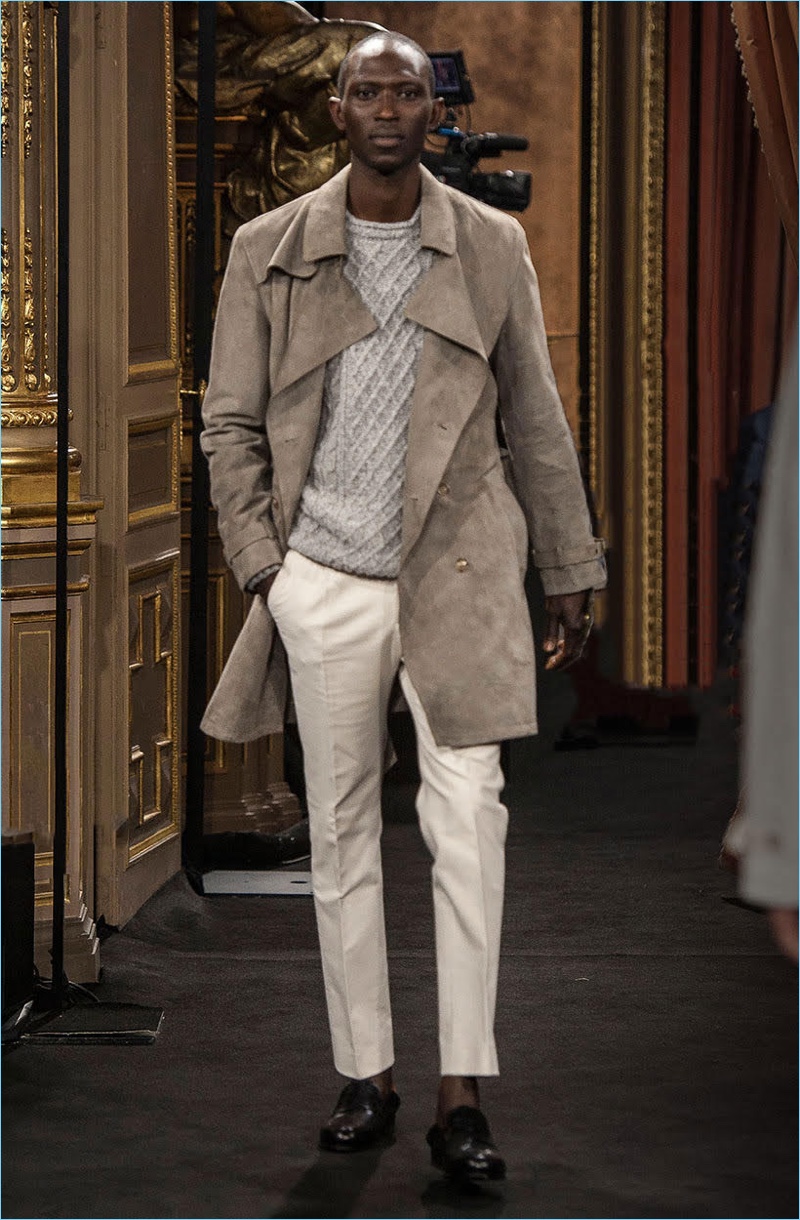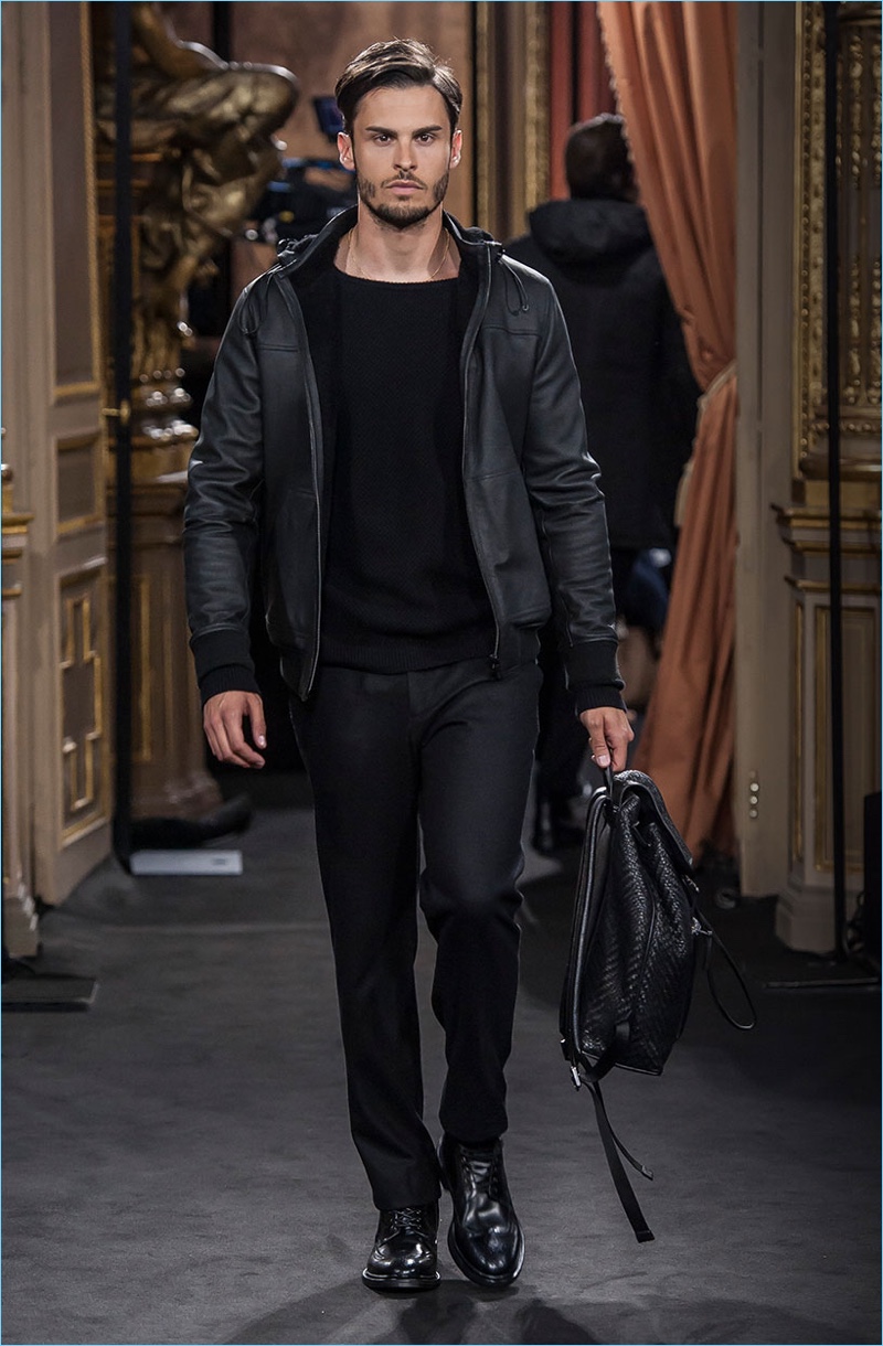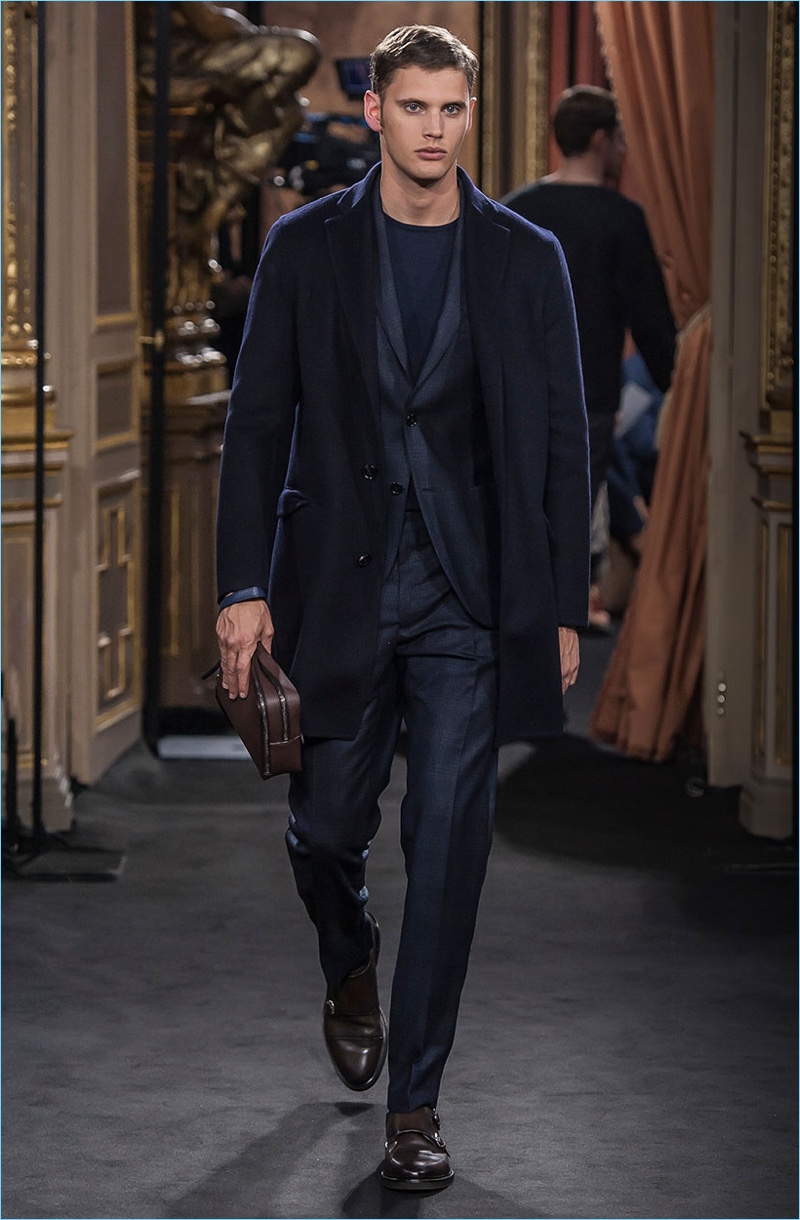 Massimo Dutti presents its fall-winter 2017 Limited Edition collection with an elegant runway show. Given the brand’s campaigns and lookbooks, it’s no surprise to see a number of top models in the show’s lineup. Representing Massimo Dutti’s elegant man, models such as Mathias Lauridsen, Armando Cabral, and Baptiste Giabiconi showcase sophisticated classics. Covetable pieces range from relaxed suiting and check trousers to chic turtlenecks. Casual style also reigns with elevated details. A sleek leather jacket or suede bomber contribute to refined everyday wear options. Leather bags, long scarves, and sharp footwear round out the collection.