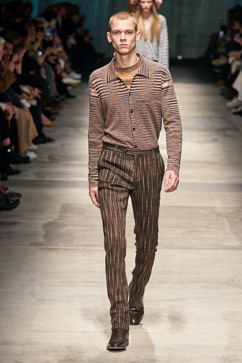 Missoni takes to the catwalk with its fall-winter 2020 men’s collection. The Italian fashion house finds inspiration in the jazz community of the 1970s and ’80s. Patterned layers come together in subdued tones with a penchant for smart fits. Meanwhile, graphic shapes and a hodgepodge of patterns steal the spotlight for the season. The collection mixes various prints in a fun fashion that allows for individuality to shine. Similiar tones make everything from knitwear and coats to tailored trousers easily interchangeable.