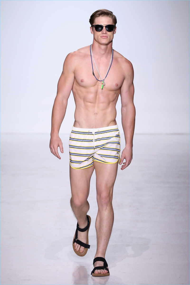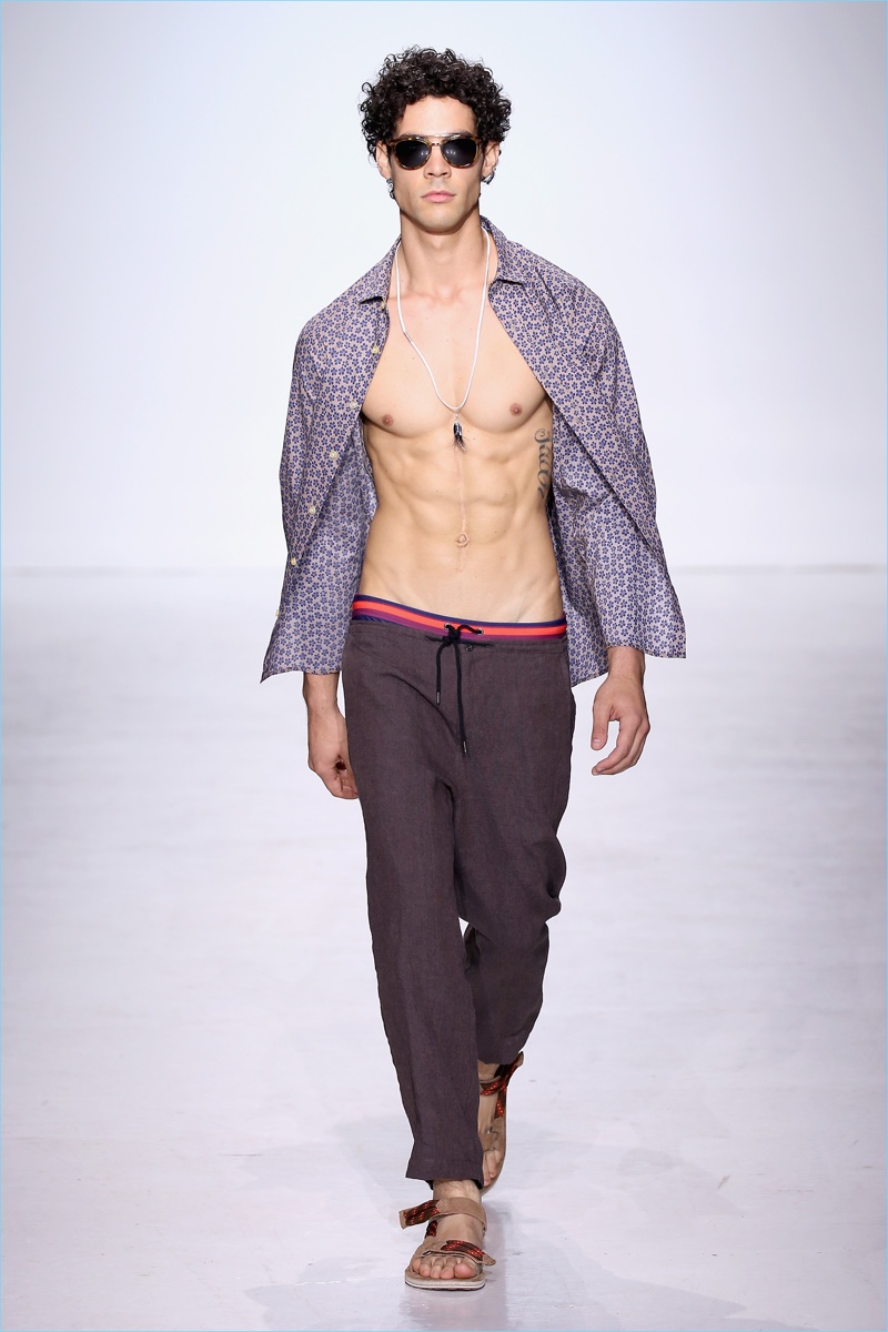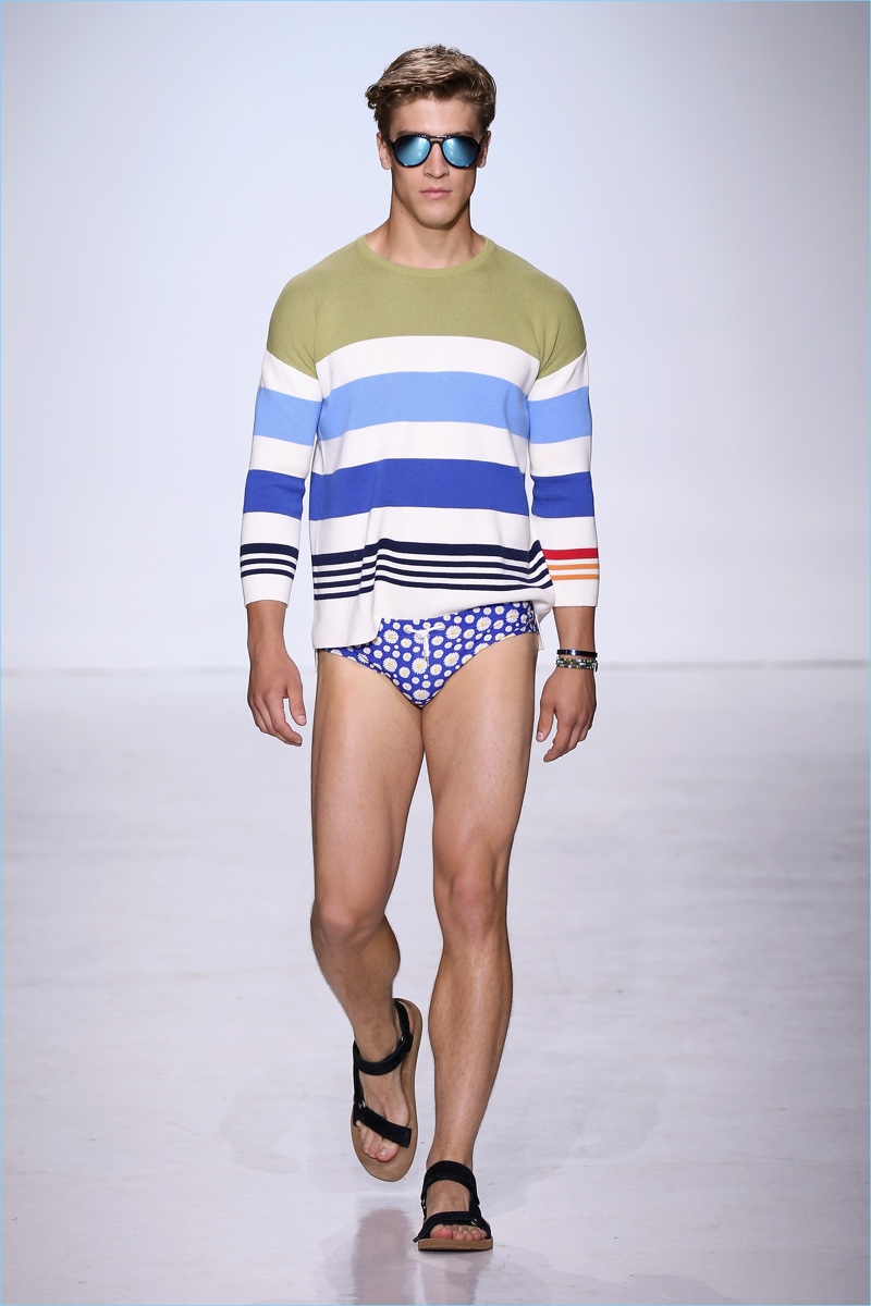 Parke & Ronen delivers a spring-summer 2018 collection inspired by the outdoors. Designers Parke Lutter and Ronen Jehezkel reference John Denver’s song Rocky Mountain High for the occasion. Focusing on the “serenity of a clear blue mountain lake,” nostalgia and a youthful attitude come together. Capturing the spirit of carefree moments spent outdoors, Parke & Ronen’s “Mountain High” collection includes practical pieces. A mix of color and prints converge for the joyous outing. Lutter and Jehezkel also celebrate the brand’s twentieth anniversary with a couple of archive fashions making an appearance.