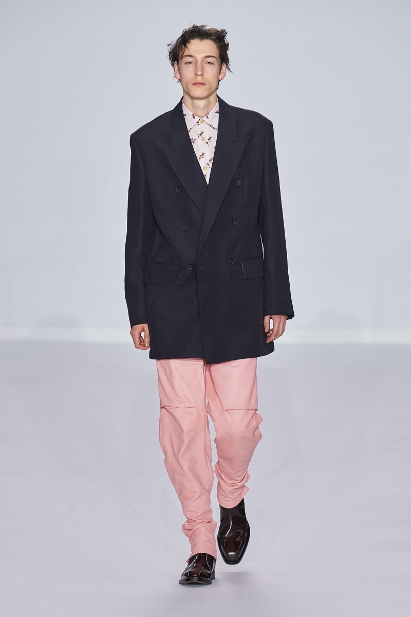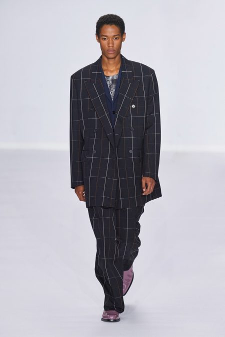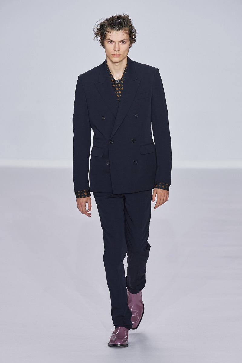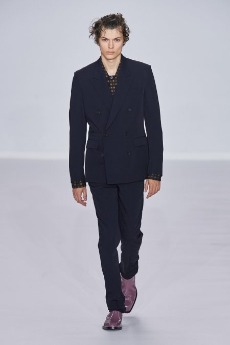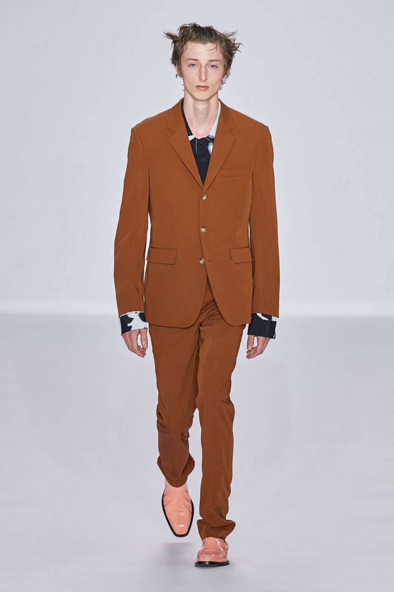 When it comes to Paul Smith’s spring-summer 2020 men’s collection, the focus is back on the sartorial suit. Recalling New York in the 1970s, Smith pumps up the volume for the season. The lineup easily charms with exaggerated proportions and a powerful punch of color. A monochromatic scheme reigns whether it’s a splash of soft pink or a moody grey. The relaxed slouchy lines of trousers ease into graphic shirts and textured coordinates. Leather makes an appearance as well with Smith delivering statement-making baggy pants and tailored jackets.