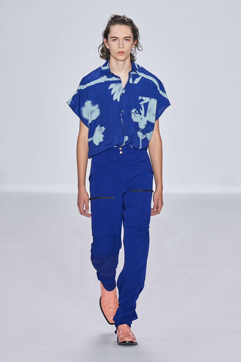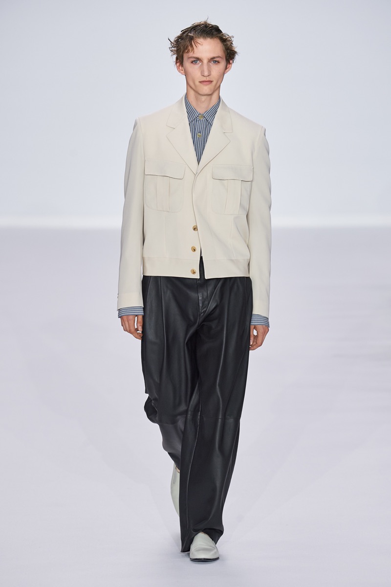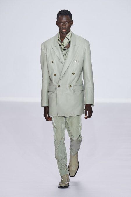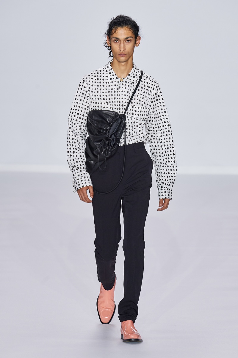 When it comes to Paul Smith’s spring-summer 2020 men’s collection, the focus is back on the sartorial suit. Recalling New York in the 1970s, Smith pumps up the volume for the season. The lineup easily charms with exaggerated proportions and a powerful punch of color. A monochromatic scheme reigns whether it’s a splash of soft pink or a moody grey. The relaxed slouchy lines of trousers ease into graphic shirts and textured coordinates. Leather makes an appearance as well with Smith delivering statement-making baggy pants and tailored jackets.