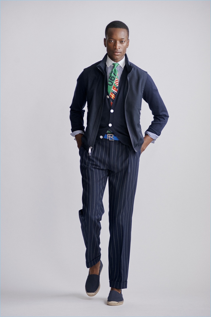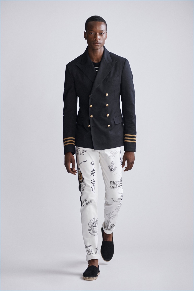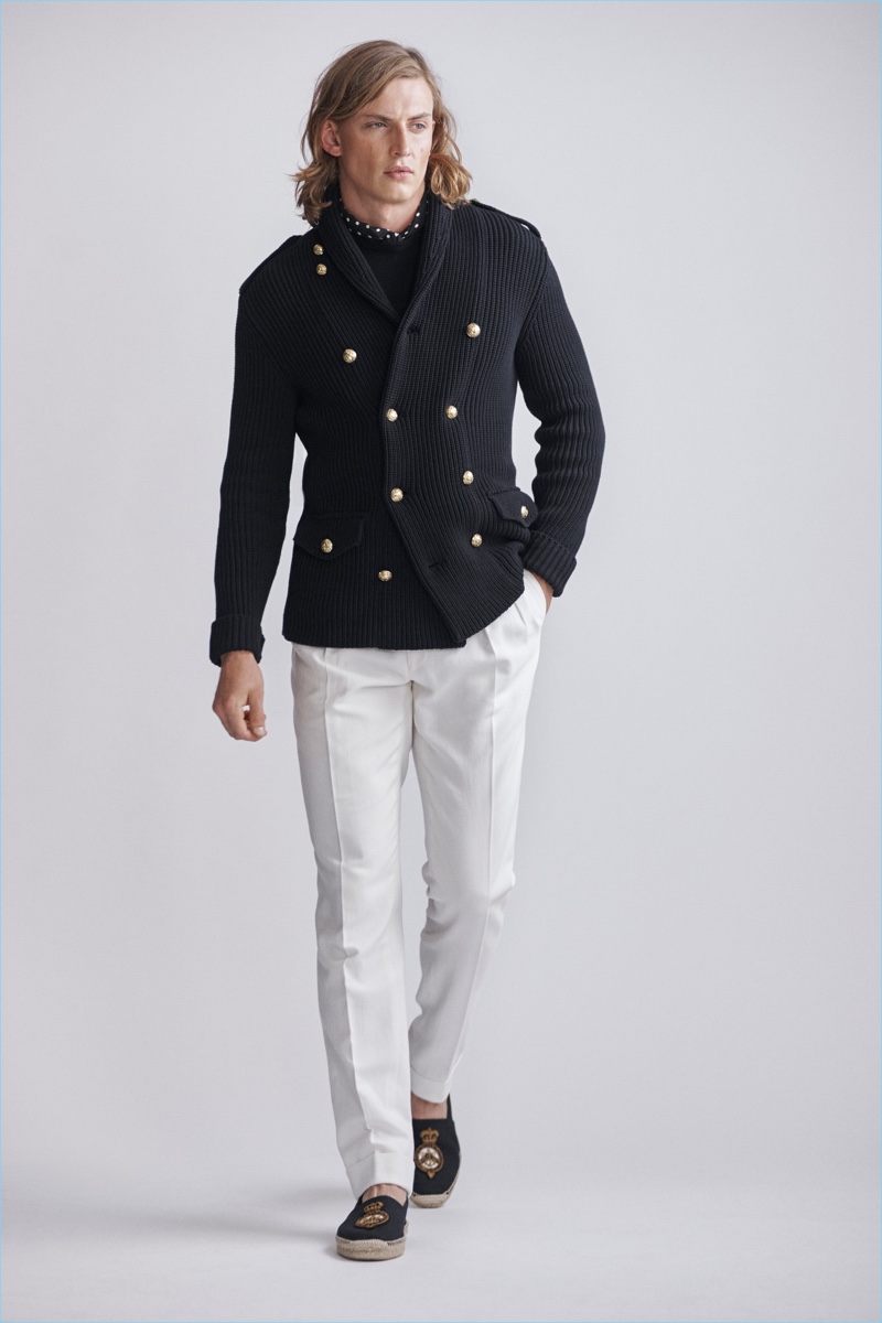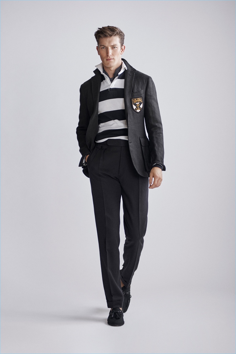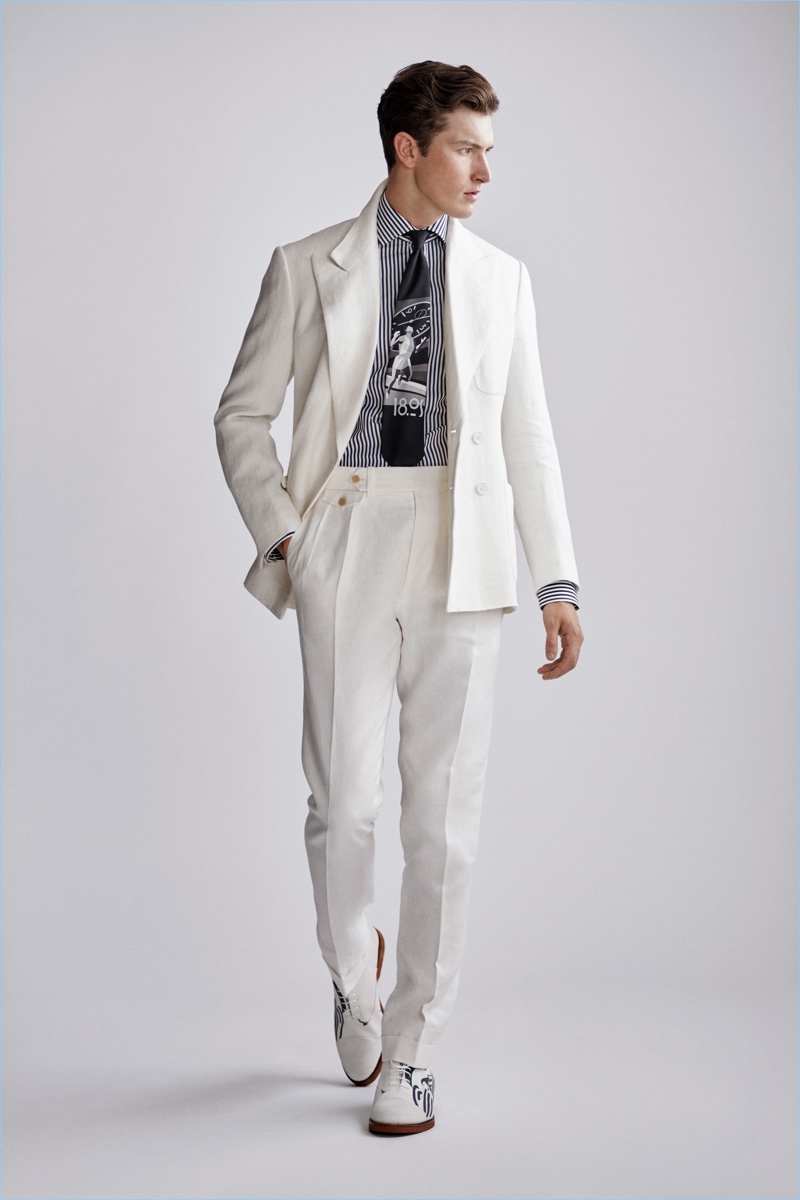 Ralph Lauren Purple Label revisits nautical style once more with its spring-summer 2019 men’s collection. Veering more for the formal side, the label delivers smashing double-breasted jackets, pleated trousers, and crest adorned blazers.