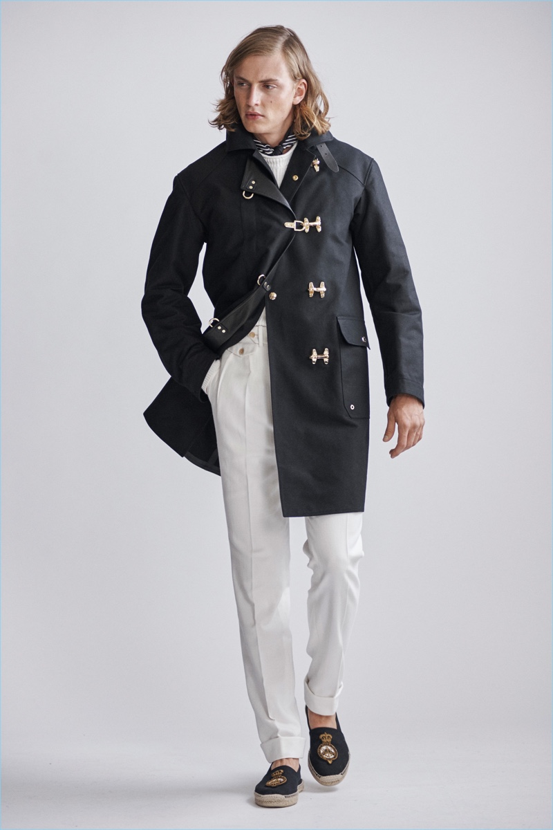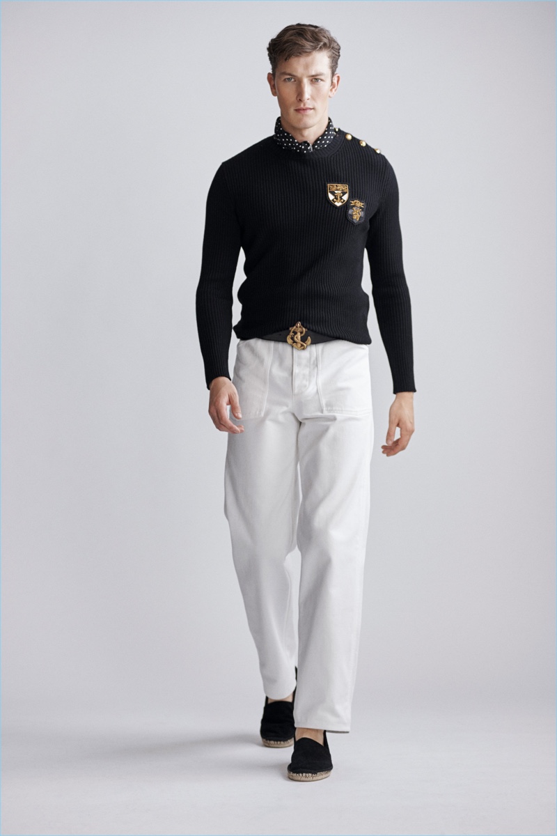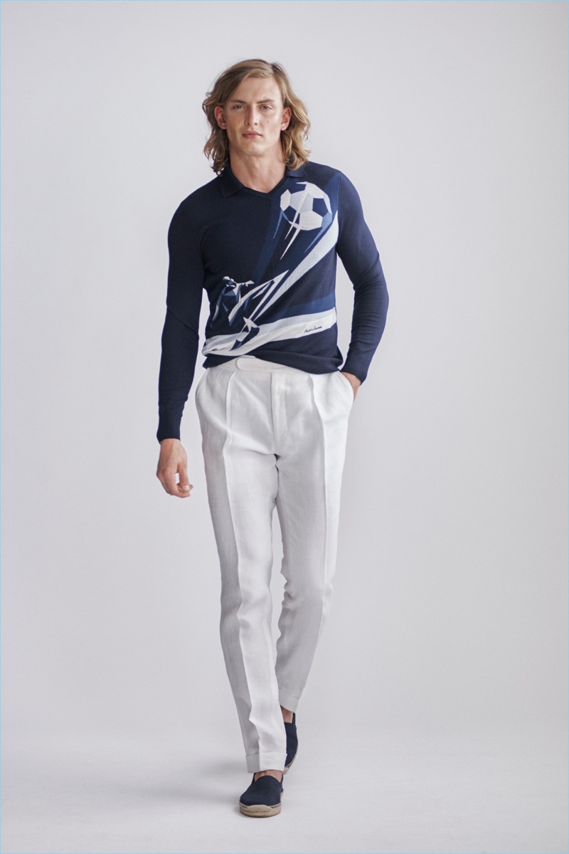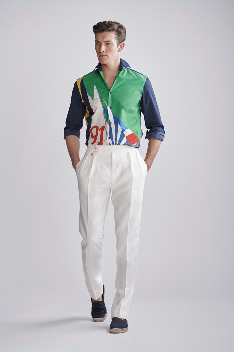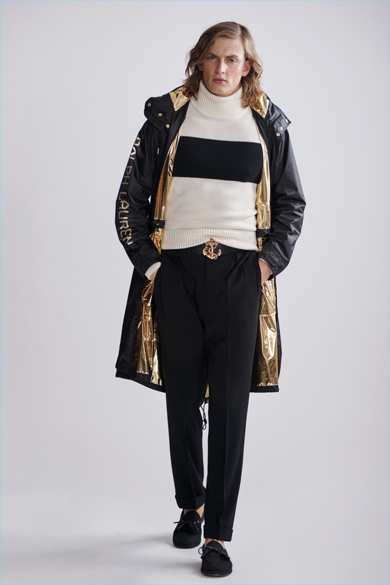 Ralph Lauren Purple Label revisits nautical style once more with its spring-summer 2019 men’s collection. Veering more for the formal side, the label delivers smashing double-breasted jackets, pleated trousers, and crest adorned blazers.