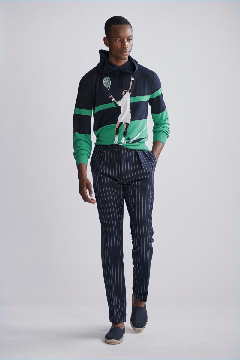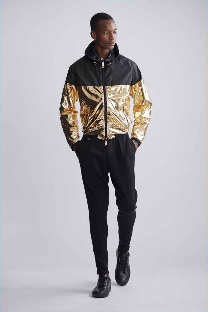 They also lend the collection a casual component. Hooded sweatshirts, lightweight knitwear, polo shirts, and bomber jackets contribute to the lineup’s strengths.