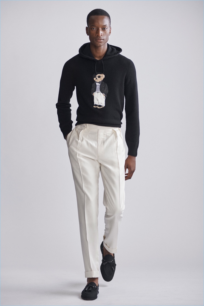 Models Oli Lacey, Oliver Kumbi, and Lewis Chesson-Grieve star in the season’s lookbook. The models take to the studio in Ralph Lauren’s elegant offering.