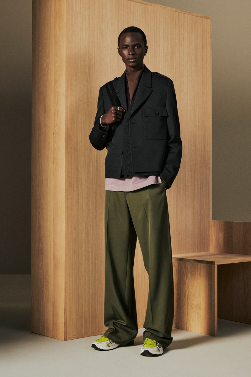 Approaching the season as a reset, Kim Jones delivers a more scaled-back approach to Dior Men. Leaning into neutral tones, Dior’s resort 2022 collection emphasizes fluid shapes. Elevated basics like a suede jacket or wide-leg trousers become wardrobe staples with a focus on leisure.