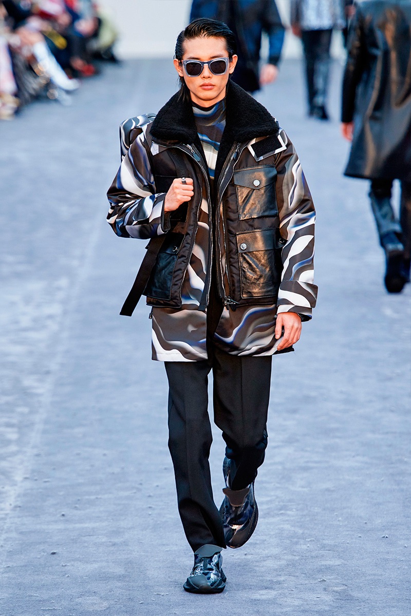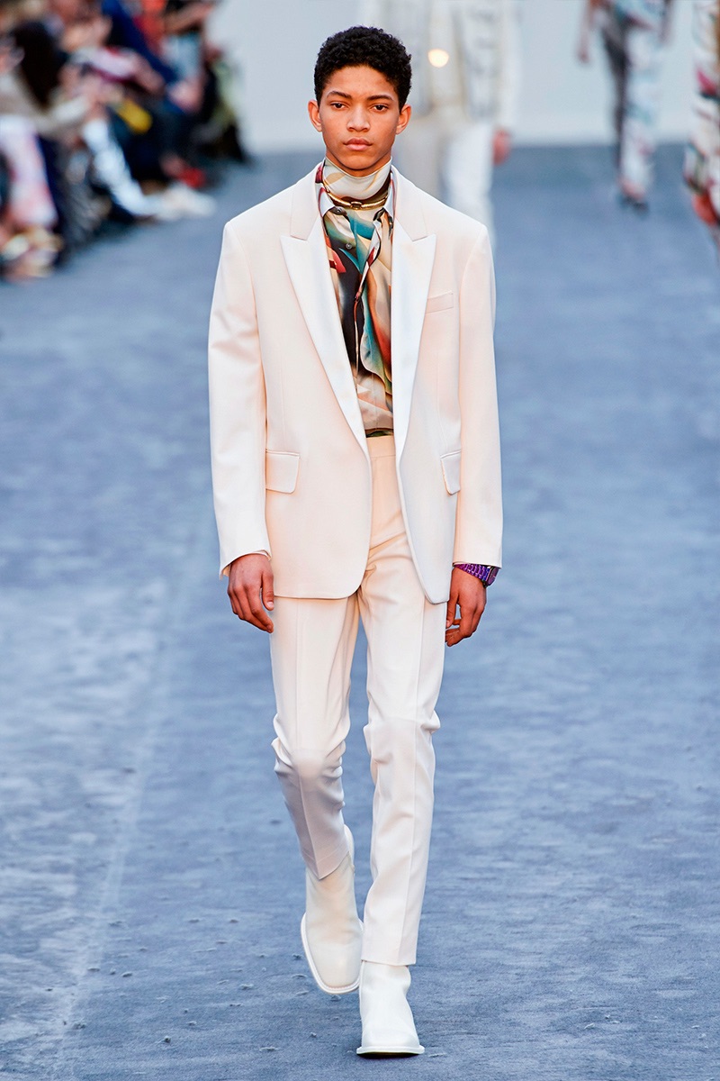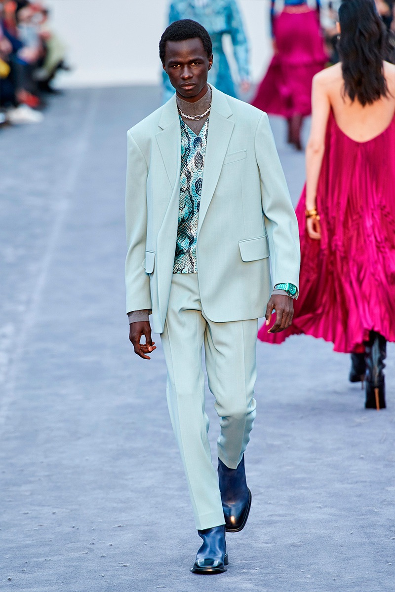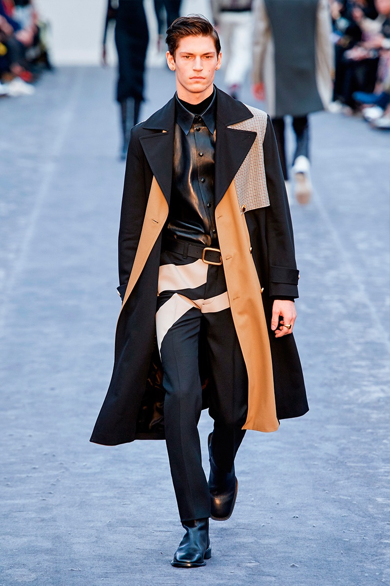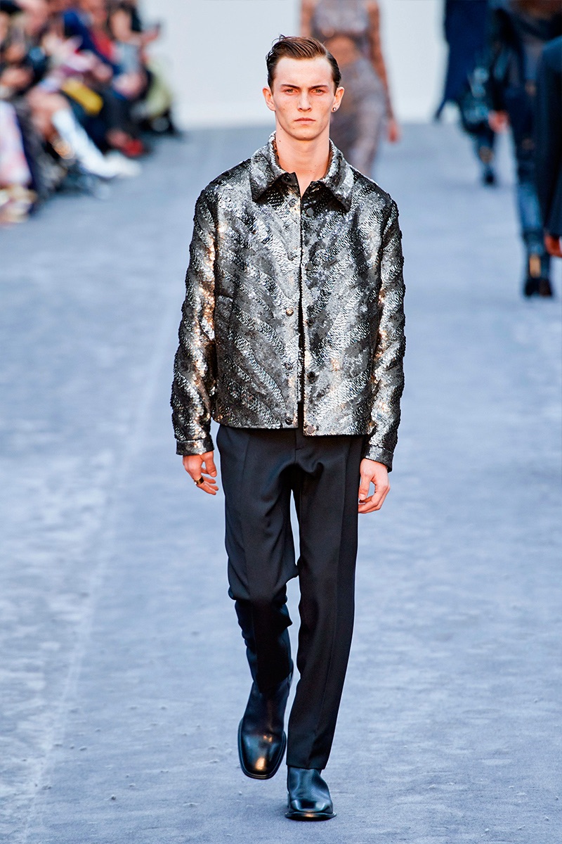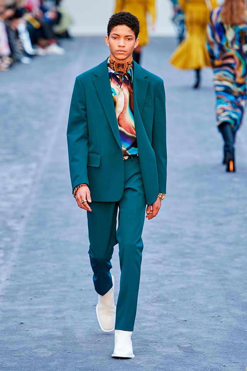 Paul Surridge’s role as creative director brings a sensible aspect to the provocative wardrobe of Roberto Cavalli’s man. Whereas the Italian fashion house is known for its loud and boisterous prints, Surridge boasts a reputation for his impeccable tailoring. Together, the traits create a balance of classic and statement-leaning menswear. Approaching his fall-winter 2019 collection, Surridge brought out a softness to the Cavalli man with the use of soft hues, relaxed tailoring, and abstract prints. Here, the bold use of leather offered a rebellious contrast to elegant takeaways like a cream double-breasted jacket or sage green suit.