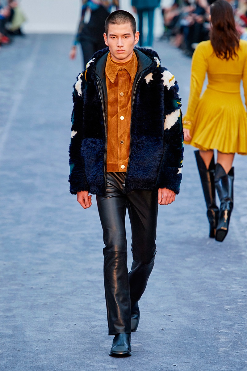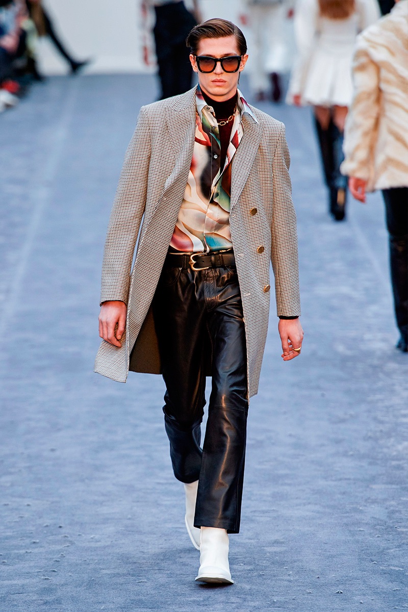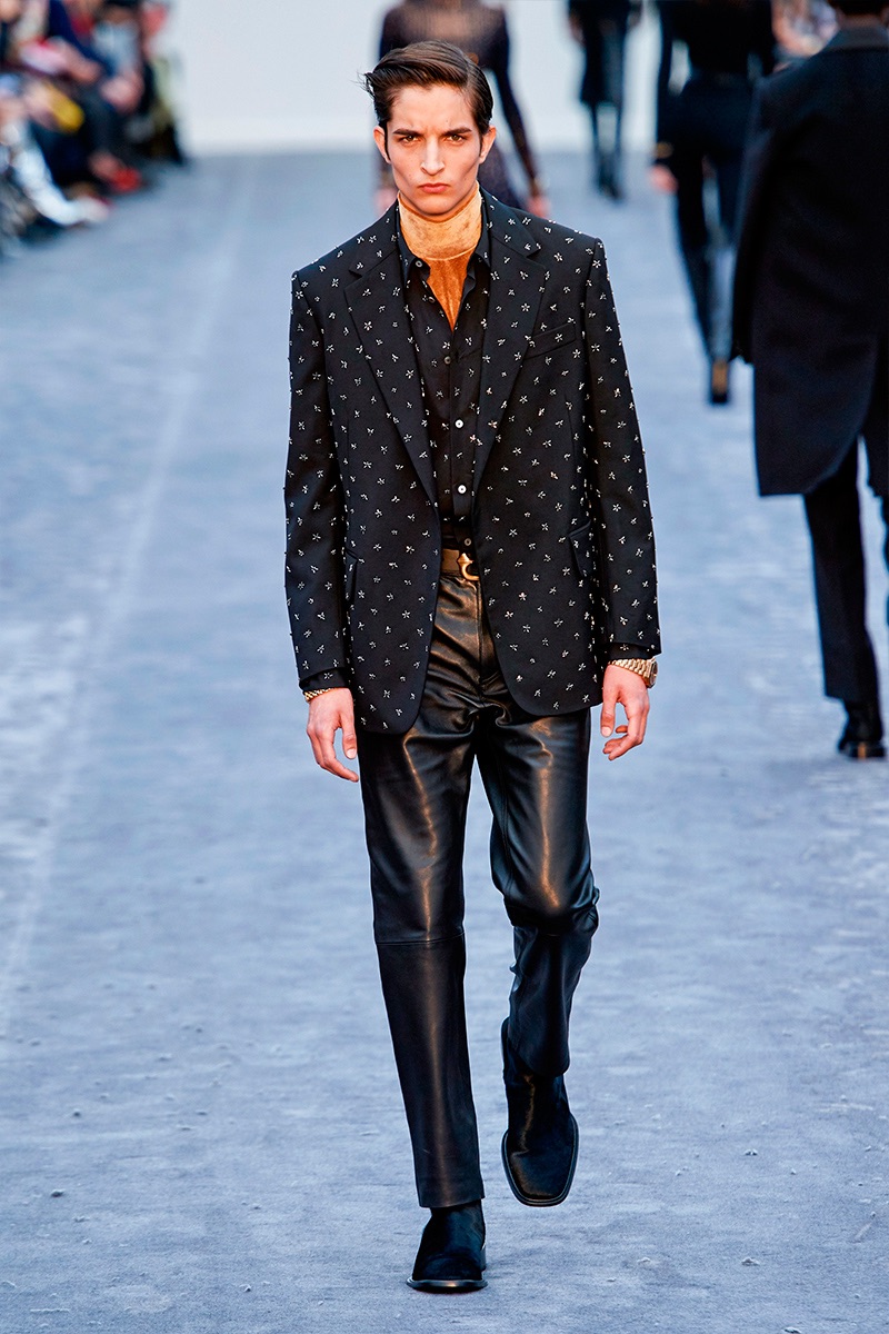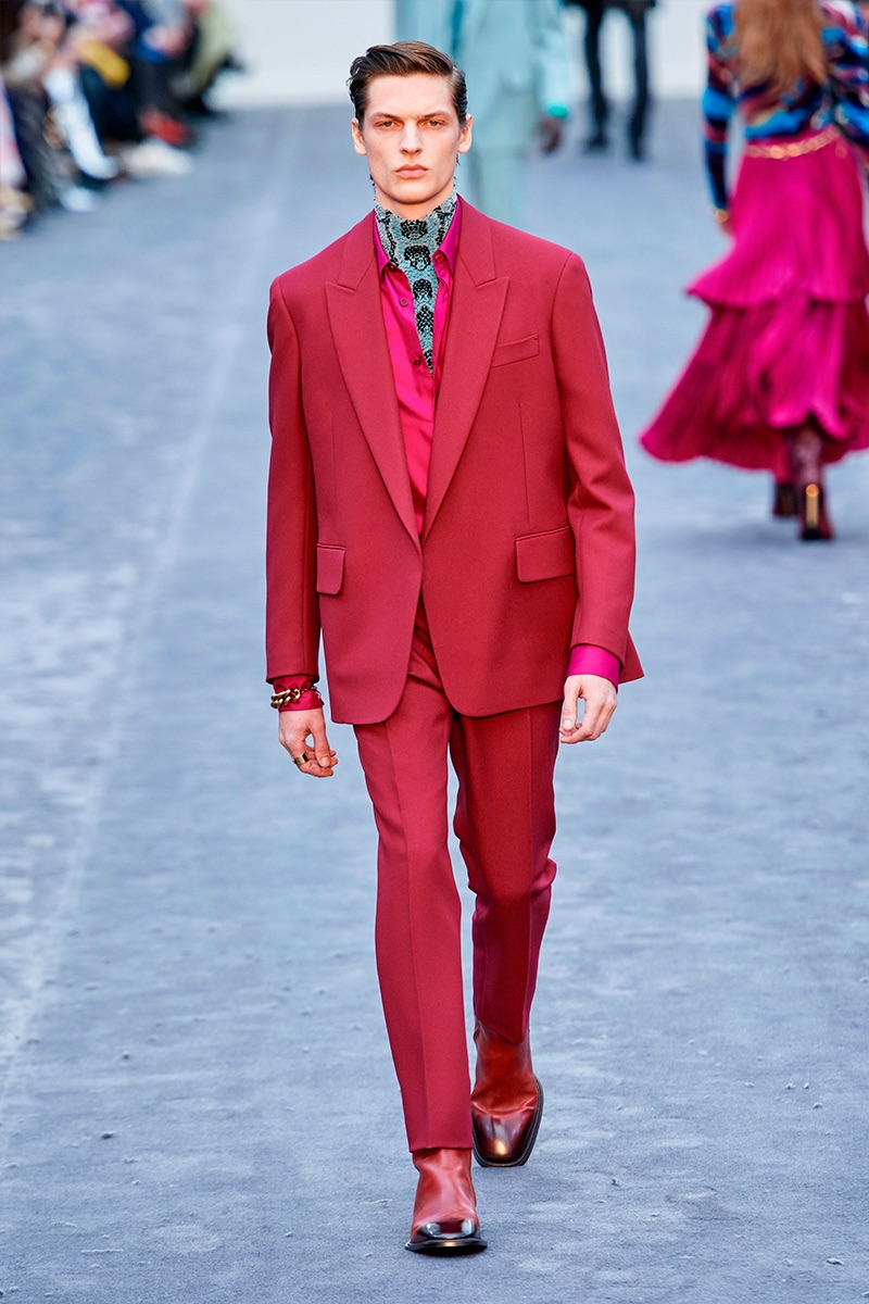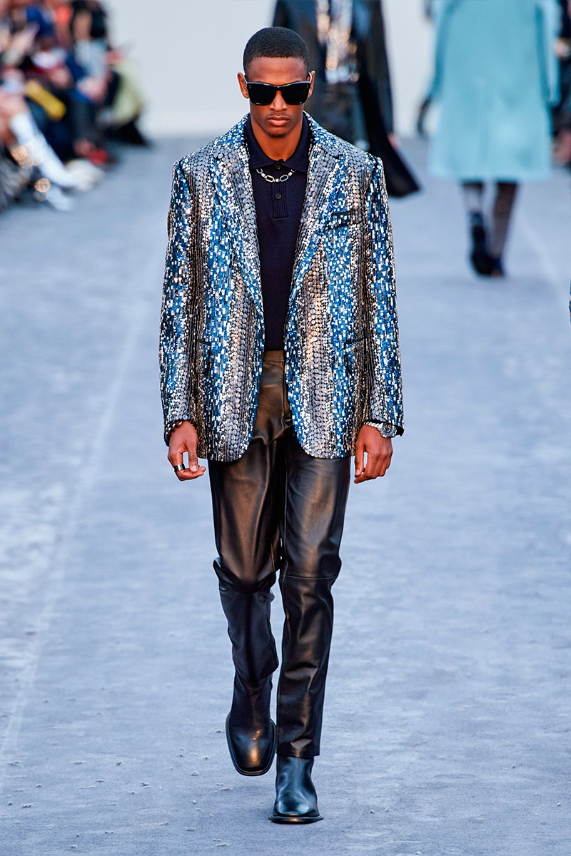 Paul Surridge’s role as creative director brings a sensible aspect to the provocative wardrobe of Roberto Cavalli’s man. Whereas the Italian fashion house is known for its loud and boisterous prints, Surridge boasts a reputation for his impeccable tailoring. Together, the traits create a balance of classic and statement-leaning menswear. Approaching his fall-winter 2019 collection, Surridge brought out a softness to the Cavalli man with the use of soft hues, relaxed tailoring, and abstract prints. Here, the bold use of leather offered a rebellious contrast to elegant takeaways like a cream double-breasted jacket or sage green suit.