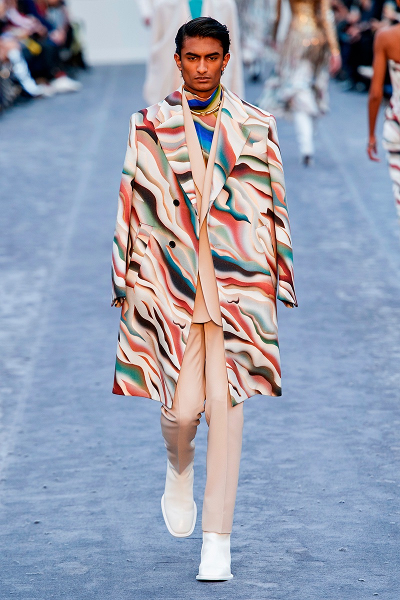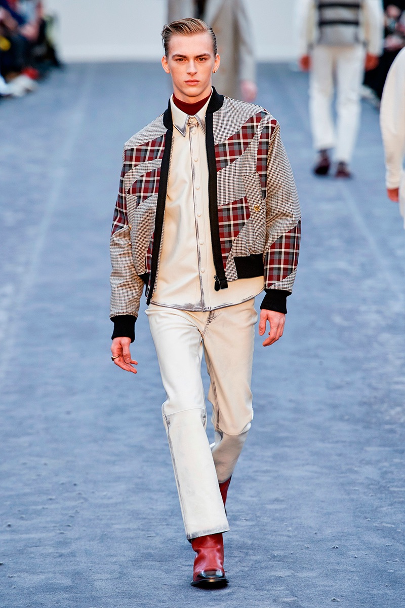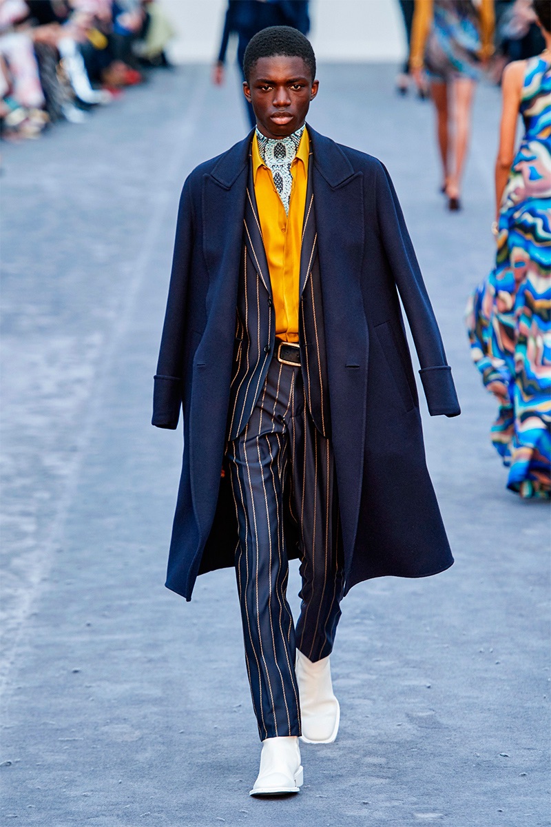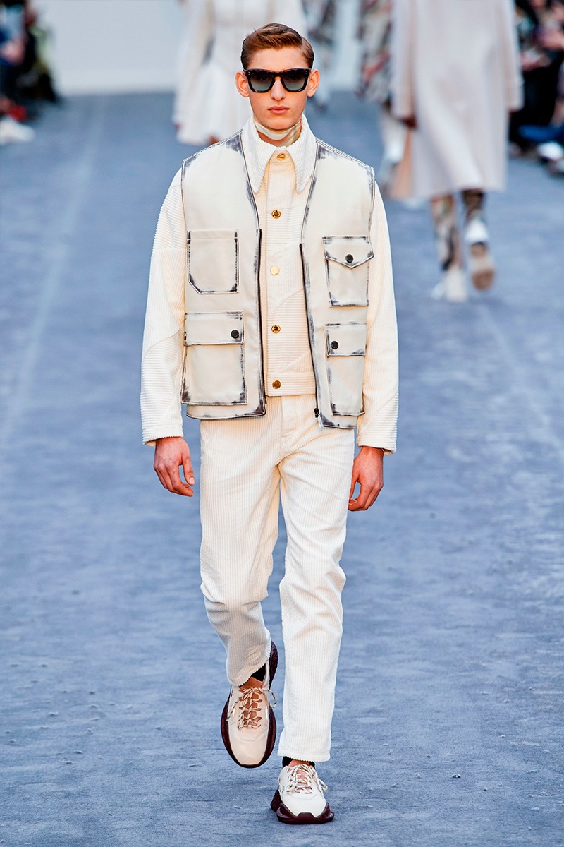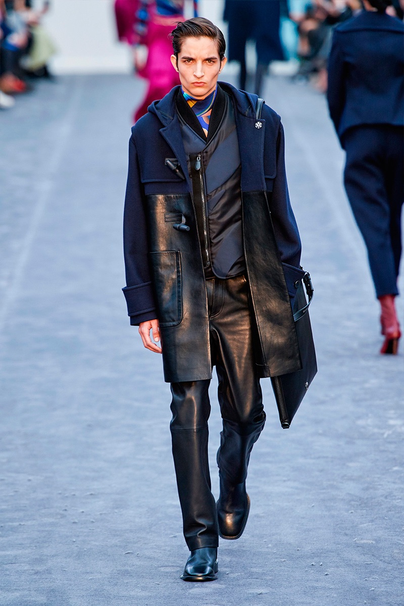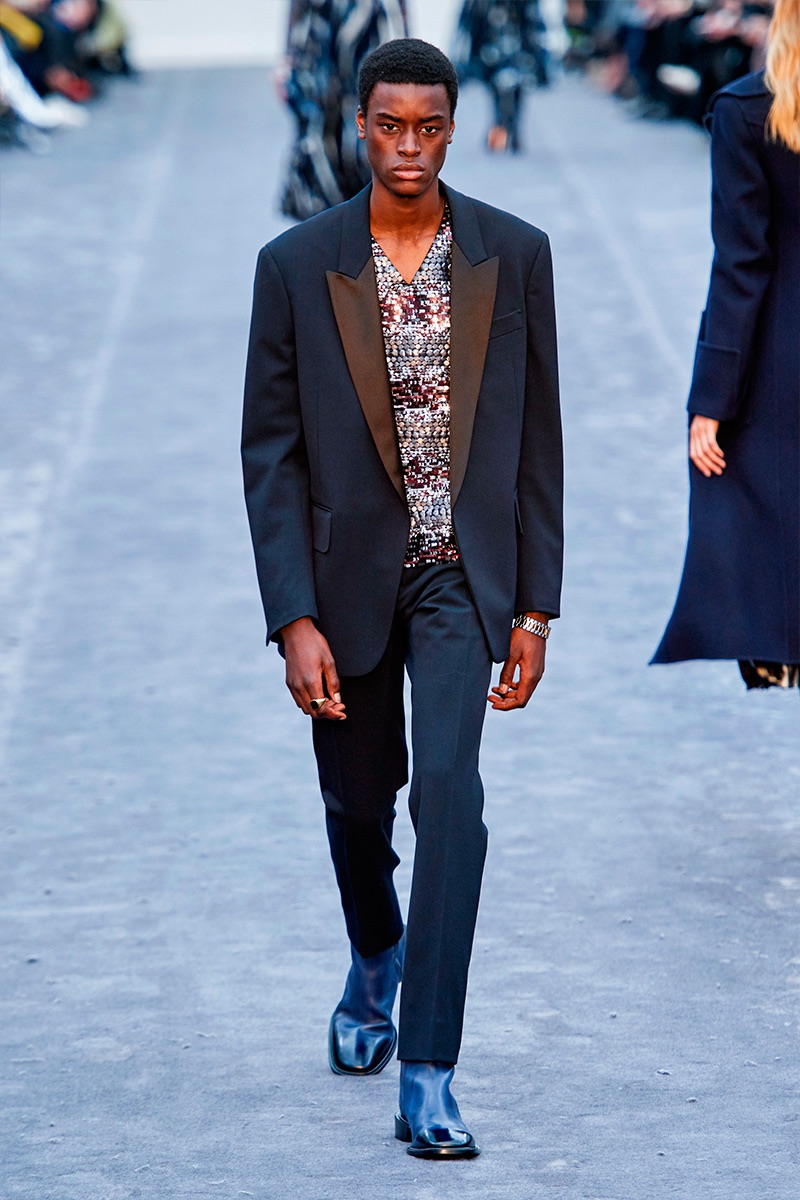 Paul Surridge’s role as creative director brings a sensible aspect to the provocative wardrobe of Roberto Cavalli’s man. Whereas the Italian fashion house is known for its loud and boisterous prints, Surridge boasts a reputation for his impeccable tailoring. Together, the traits create a balance of classic and statement-leaning menswear. Approaching his fall-winter 2019 collection, Surridge brought out a softness to the Cavalli man with the use of soft hues, relaxed tailoring, and abstract prints. Here, the bold use of leather offered a rebellious contrast to elegant takeaways like a cream double-breasted jacket or sage green suit.