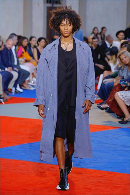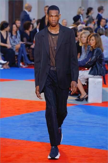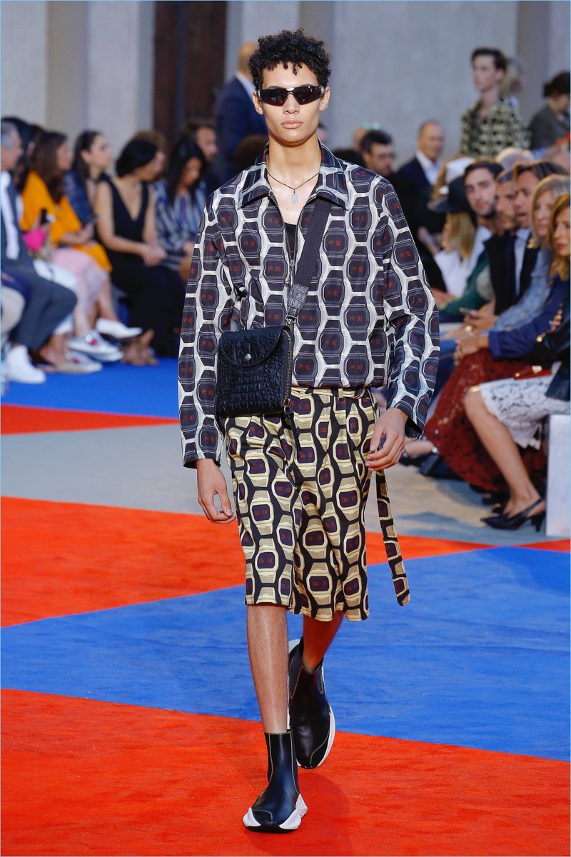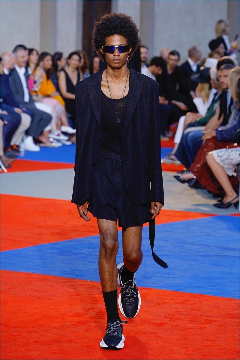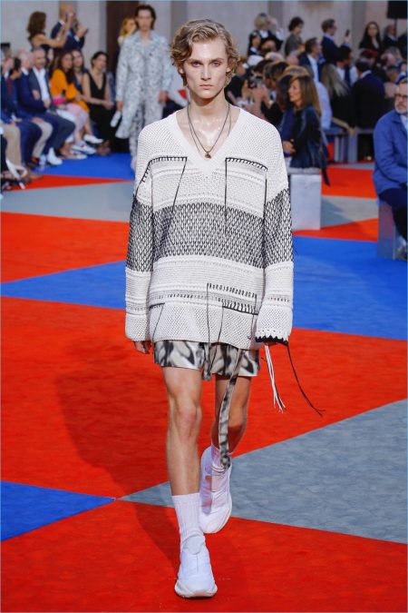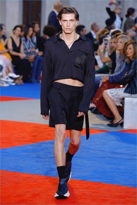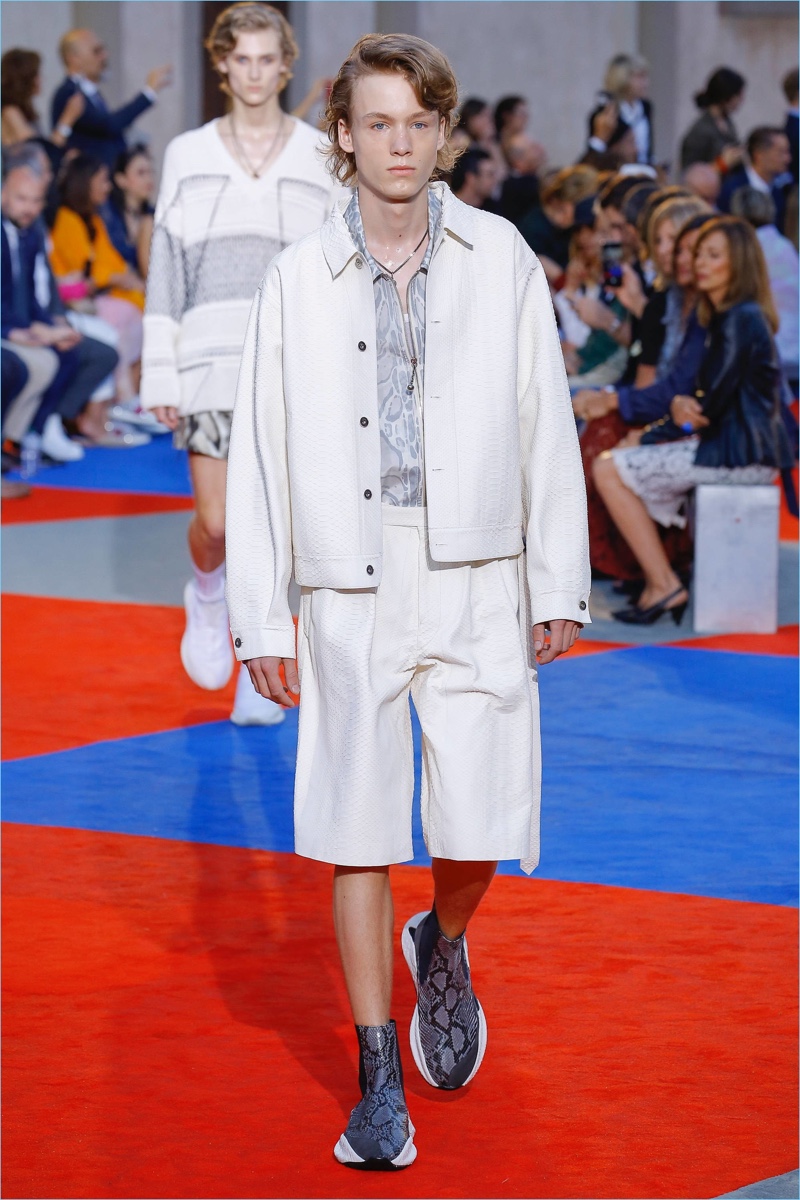 There’s a new sheriff in town when it comes to Roberto Cavalli. After a sensible fall debut, creative director Paul Surridge brings a clean tailored edge to the fashion house. Although Roberto Cavalli may be known for its loud prints, Surridge toned the signature down. In fact, he balanced it with a steady stream of black and white. Shown during Pitti Uomo, the collection captured the spirit of leisure and laid-back beach holidays. Relaxed proportions suited long fluid coats, wide-cut shorts, graphic tanks, and open-weave knits. An almost-sporty aptitude ran throughout the collection but was halted by the effortless finesse of Surridge’s suits.