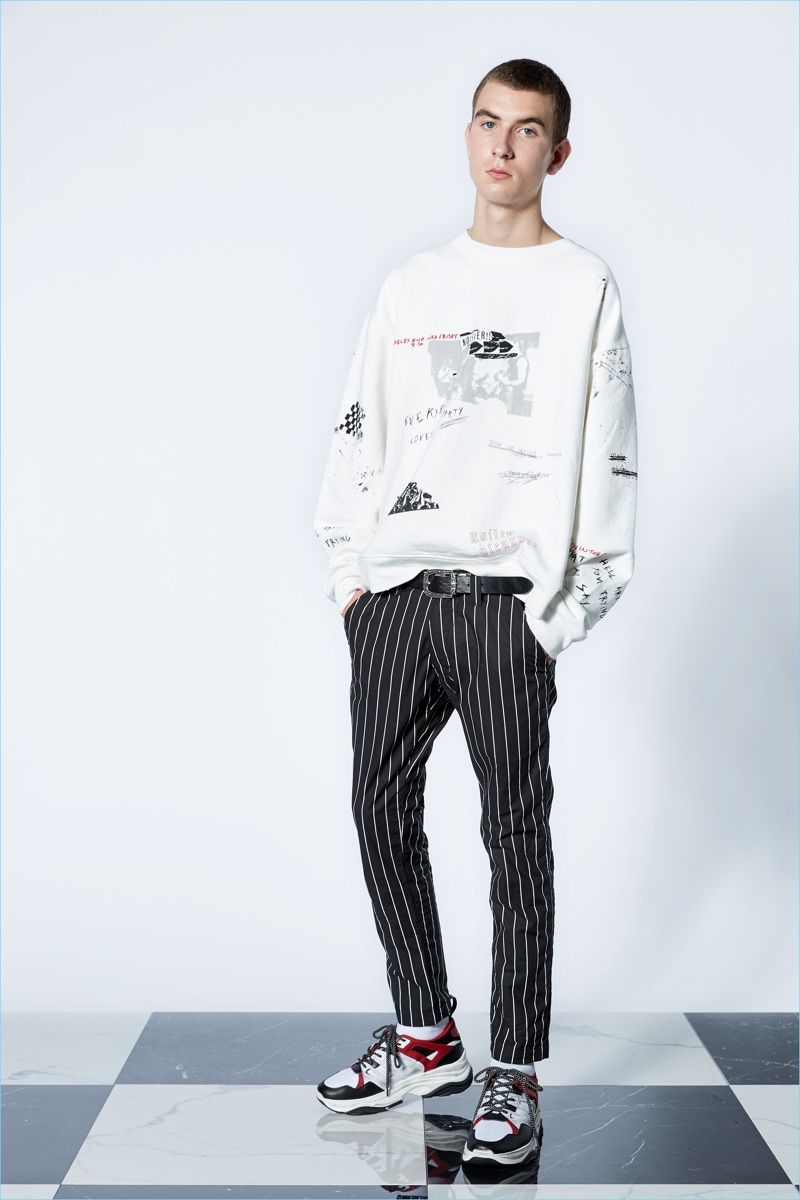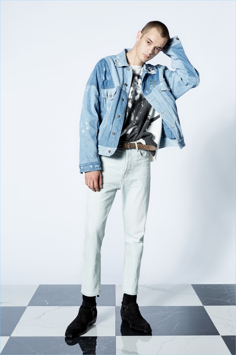 The Kooples brings a European sensibility to its spring-summer 2019 collection. Alexandre Elicha continues to deviate from the traditional idea of rock ‘n’ roll style with a relaxed approach to proportions. Outside its signature skinny jeans and timeless leather biker jackets, volume is brought to shirts and outerwear. Demonstrating a smart juxtaposition of lean and oversized proportions, models Jean-Noel Le Bail, Maxime Frenel, and Jeremie Kandala come together for the season’s lookbook. They sport key pieces that range from patterned camp-collar shirts and sporty jackets to statement bombers. The French label also rests nicely on its rock heritage with a graphics from the iconic Sex Pistols.