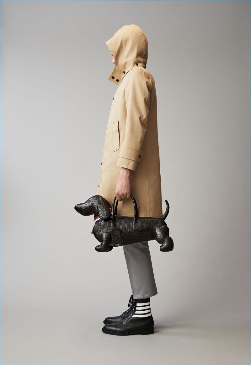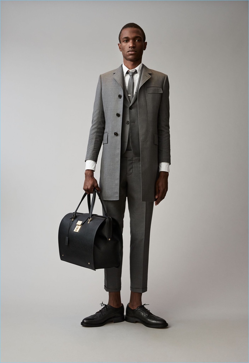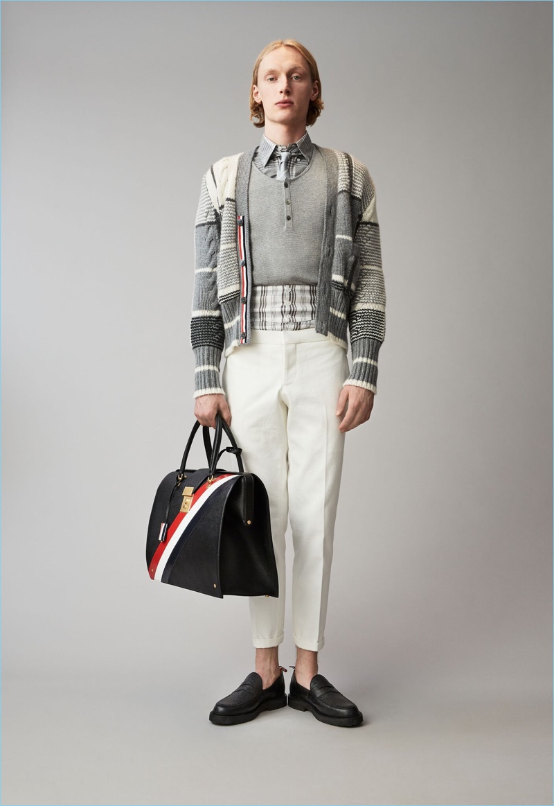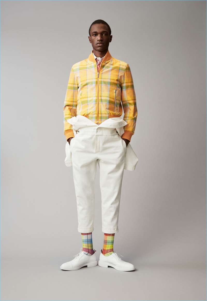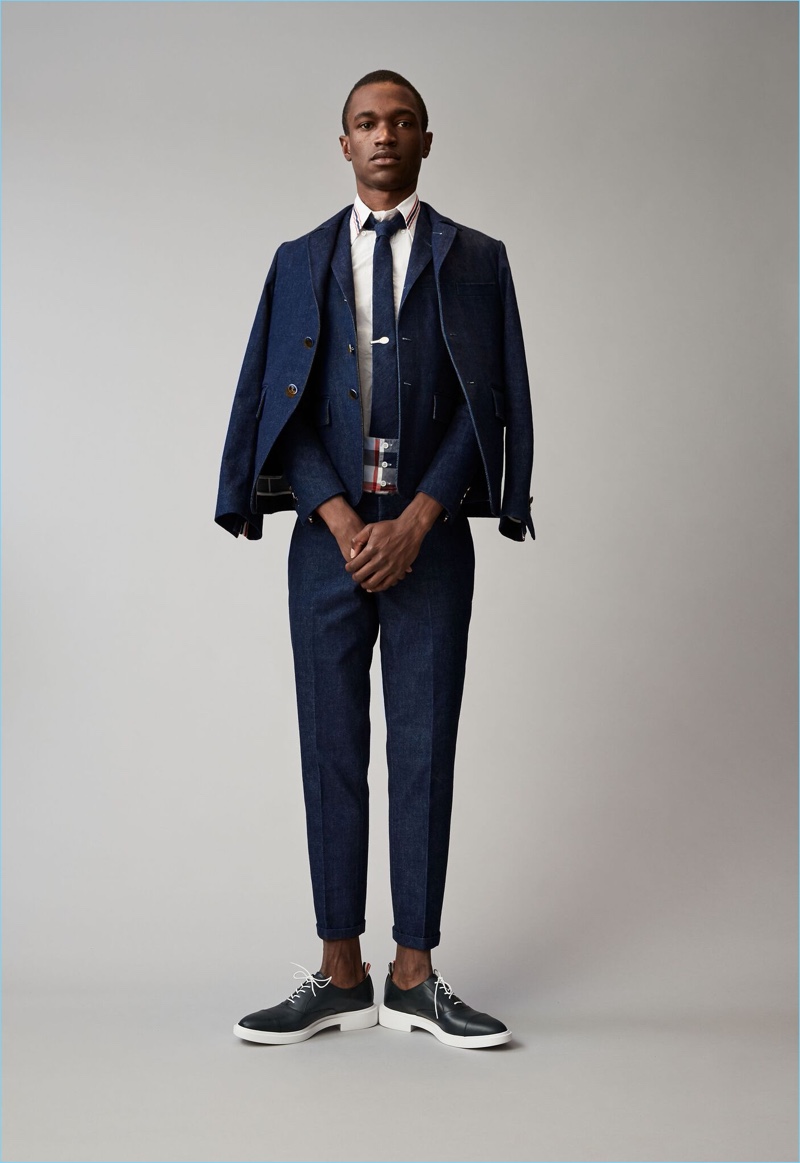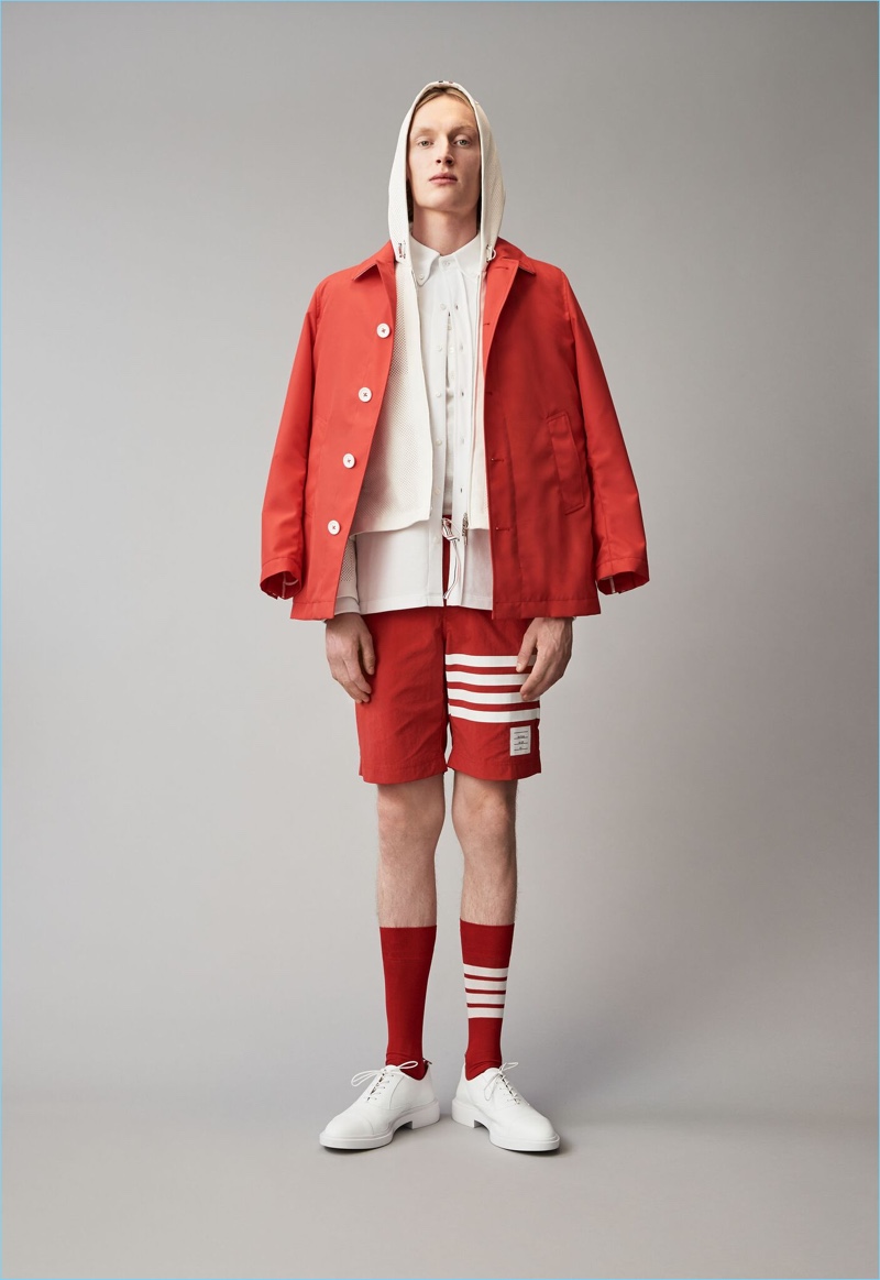 When it comes to Thom Browne’s spring-summer 2018 collection, the designer makes a statement with a skirted proposal. However, the traditional Browne staples shine in the spotlight for resort season. Shades of grey come together with short suits, pleated cropped trousers, and sharp coats. The lineup also features knitwear with a playful tennis motif. In addition to a statement boiler suit and bold pinstripes, Browne colors the season with a variety of Madras prints.