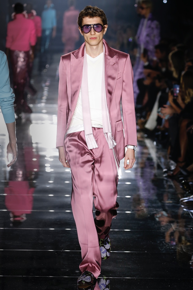 Tom Ford takes to Los Angeles to present his fall-winter 2020 men’s collection. The starting inspiration of the collection is a 1966 image by Bob Richardson of Baron Alexis De Waldner and Donna Mitchell for Vogue Paris. Ford explains, Alexis is holding a cigarette [or a joint] up to Donna’s mouth and her eyes are closed in a relaxed and sensual way. I love this image and it’s slightly louche mood. Chic, possibly slightly stoned, and very sensual.