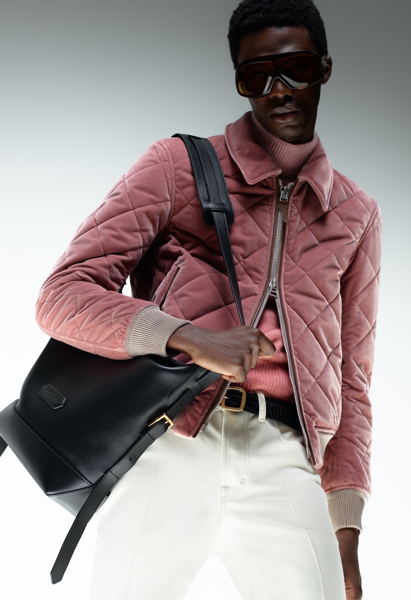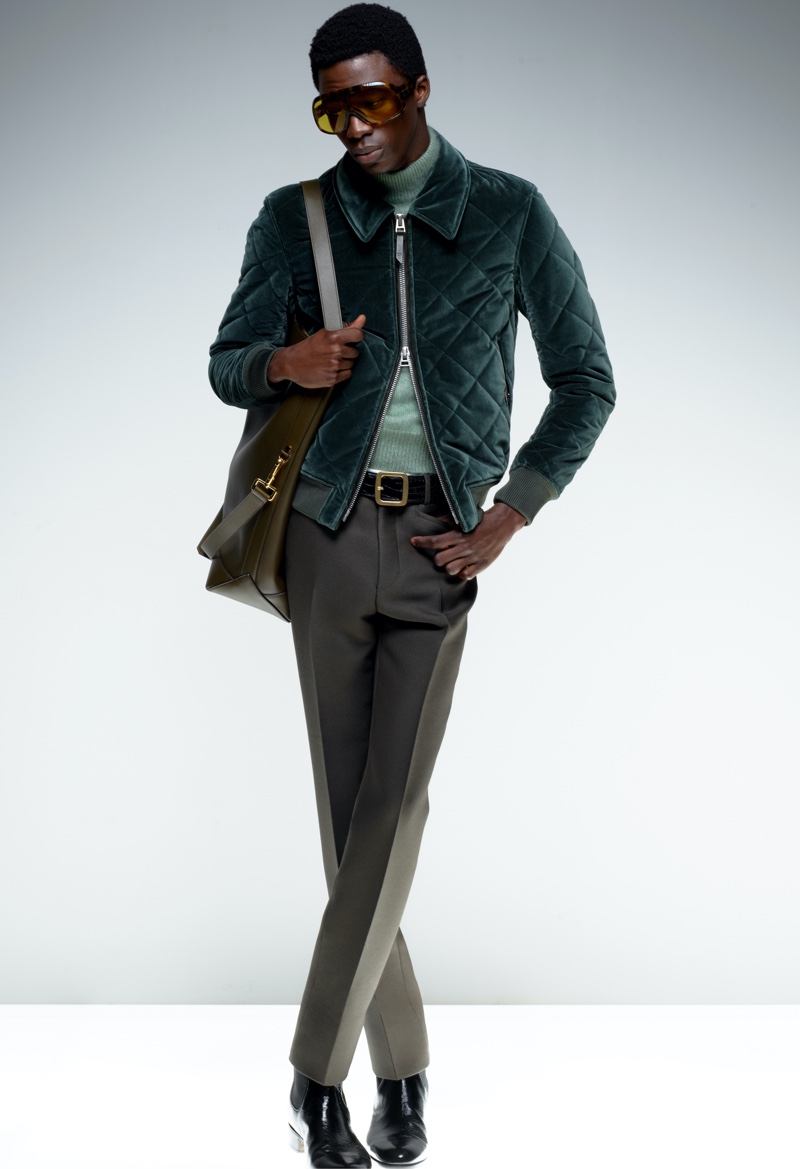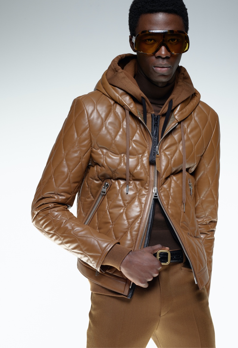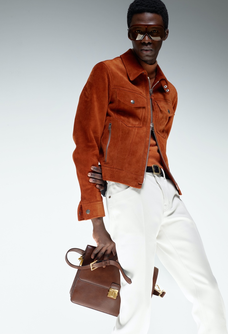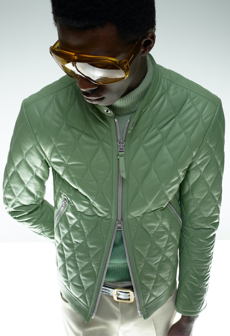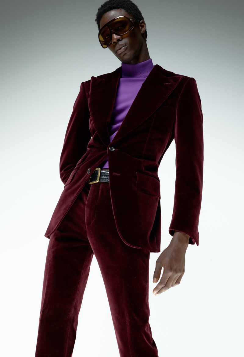 For fall-winter 2021, Tom Ford is right on trend with the hope that life post-COVID will return to normal. Photographer Julien Martinez Leclerc captures Ford’s latest designs on models Henry Kitcher, Cherif Douamba, and Maikls Mihelsons. Here, Ford’s man eases into glamorous dressing once more “but in a slightly more casual yet luxurious way.” References to the 1960s and ’80s emerge with a wardrobe that balances everyday style’s practical needs with men’s desire to dress in a sophisticated fashion. Caramel, turquoise, dusty pink, jade, and acid yellow tones peek out from a sea of neutrals, giving life to must-haves like a double-breasted jacket or military coat. Meanwhile, Ford elevates jeans with the use of mohair twill. A shorter cut brings attention to Ford’s stylish boots and 1960’s loafers. Fun standouts for the season range from a floral print jacket and oversized down outerwear to bleached denim jeans. Paying a nod to the increased time spent at home, colorful robes and pajamas in vibrant prints round out the collection.
