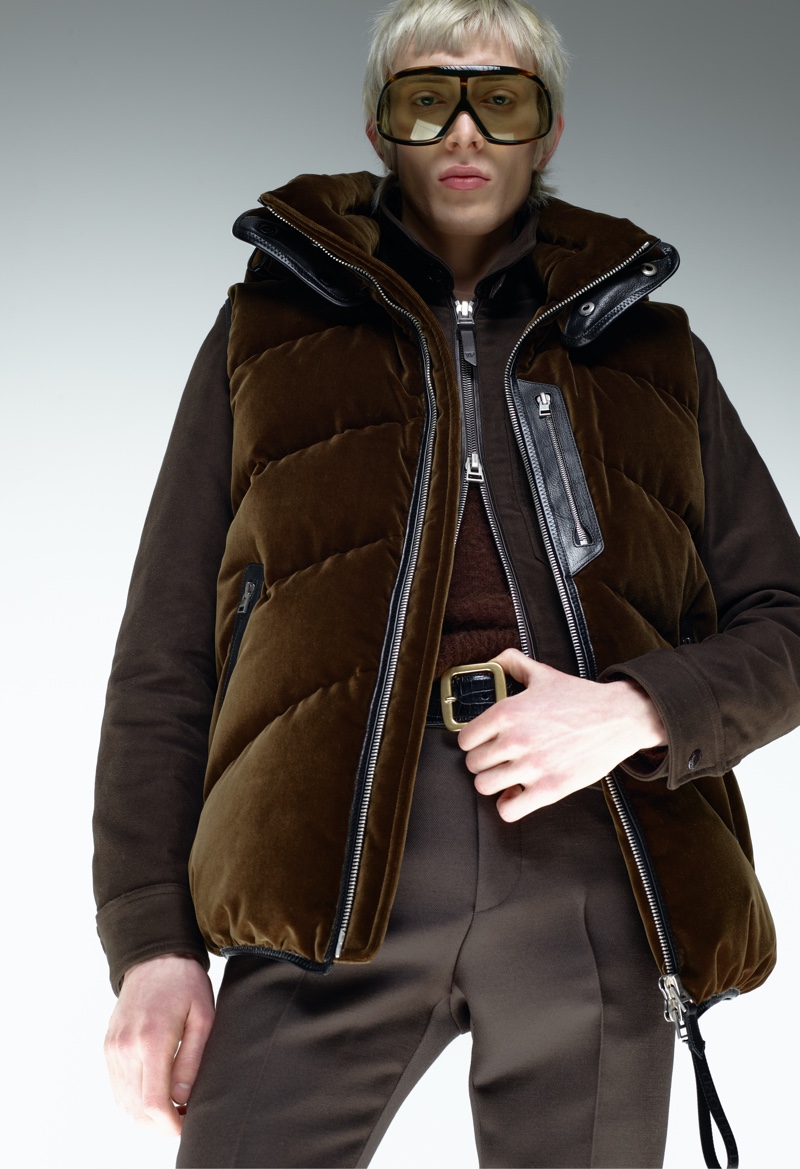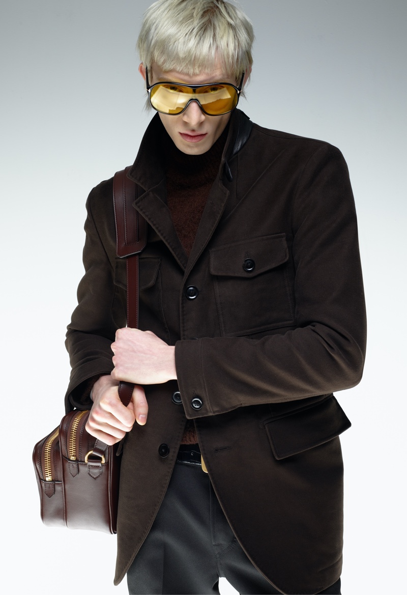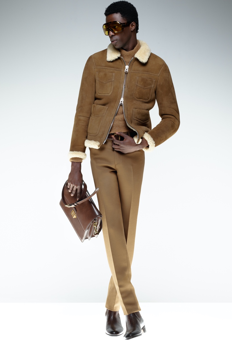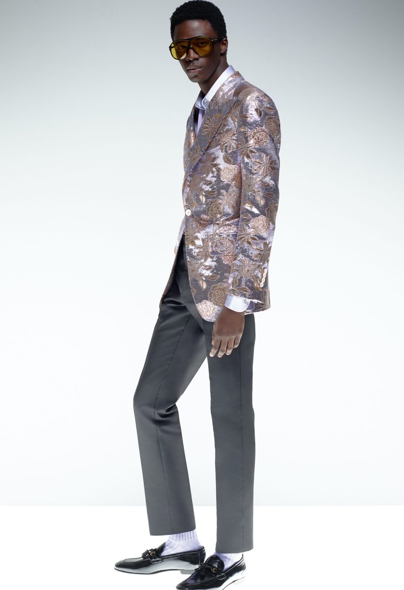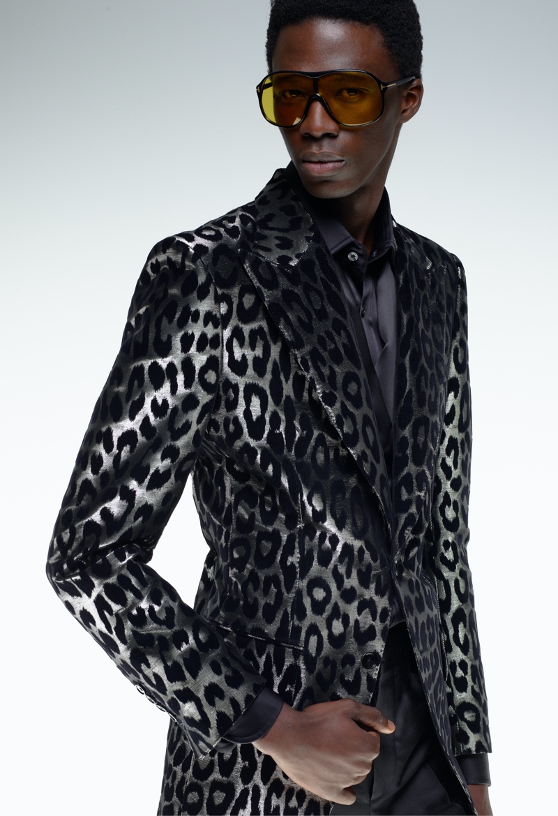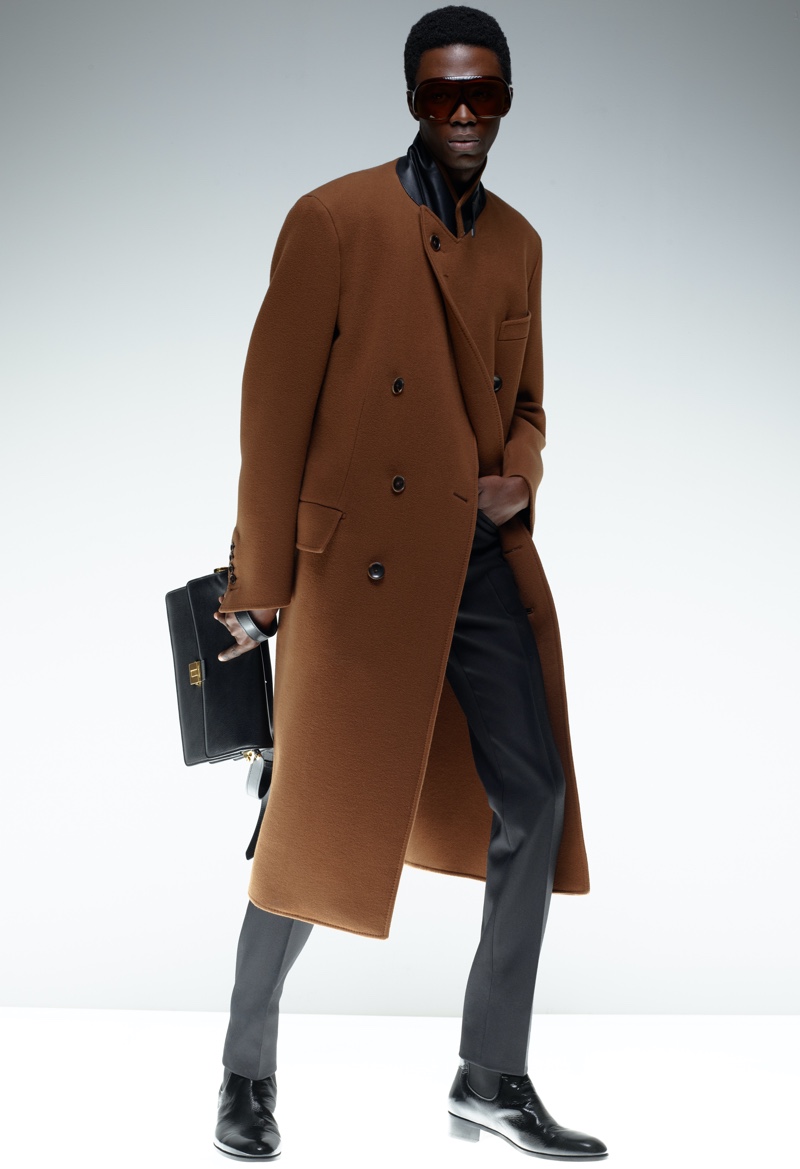 For fall-winter 2021, Tom Ford is right on trend with the hope that life post-COVID will return to normal. Photographer Julien Martinez Leclerc captures Ford’s latest designs on models Henry Kitcher, Cherif Douamba, and Maikls Mihelsons. Here, Ford’s man eases into glamorous dressing once more “but in a slightly more casual yet luxurious way.” References to the 1960s and ’80s emerge with a wardrobe that balances everyday style’s practical needs with men’s desire to dress in a sophisticated fashion. Caramel, turquoise, dusty pink, jade, and acid yellow tones peek out from a sea of neutrals, giving life to must-haves like a double-breasted jacket or military coat. Meanwhile, Ford elevates jeans with the use of mohair twill. A shorter cut brings attention to Ford’s stylish boots and 1960’s loafers. Fun standouts for the season range from a floral print jacket and oversized down outerwear to bleached denim jeans. Paying a nod to the increased time spent at home, colorful robes and pajamas in vibrant prints round out the collection.