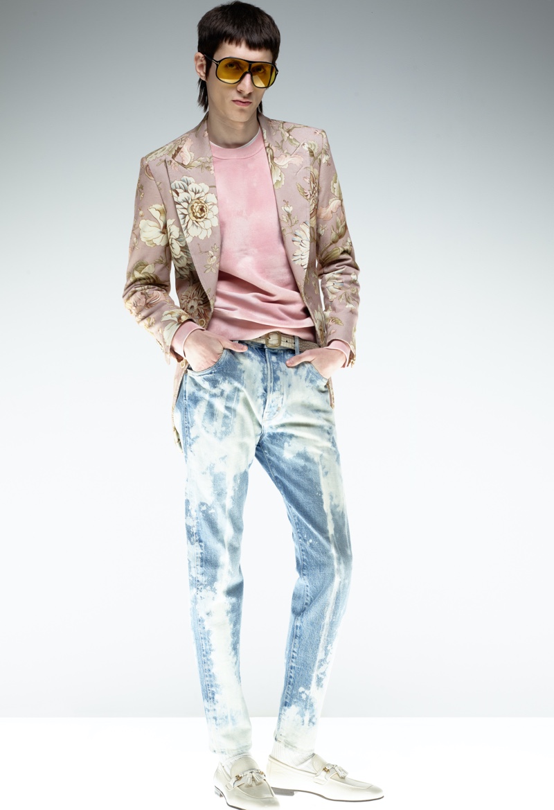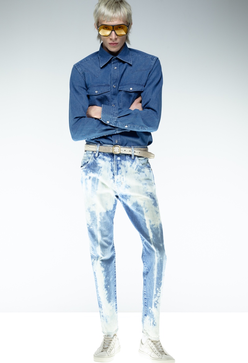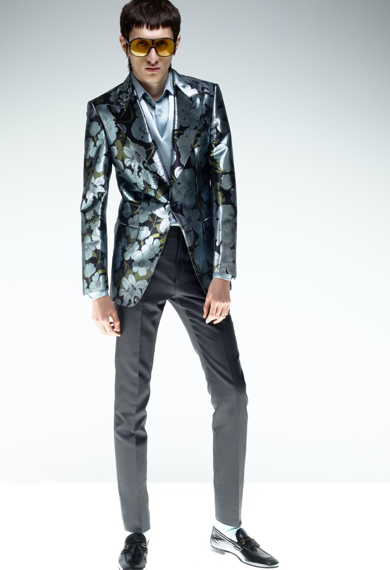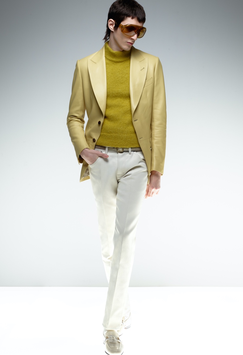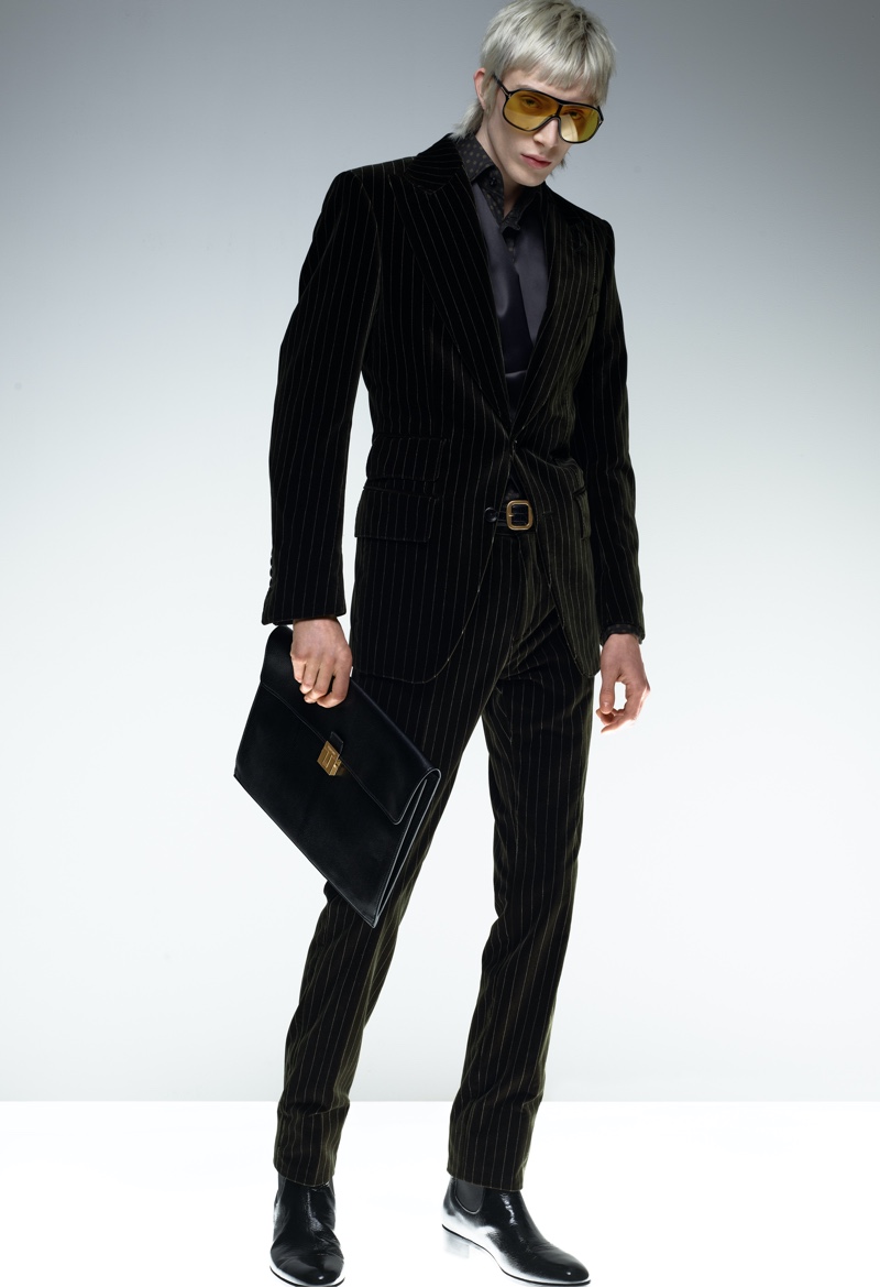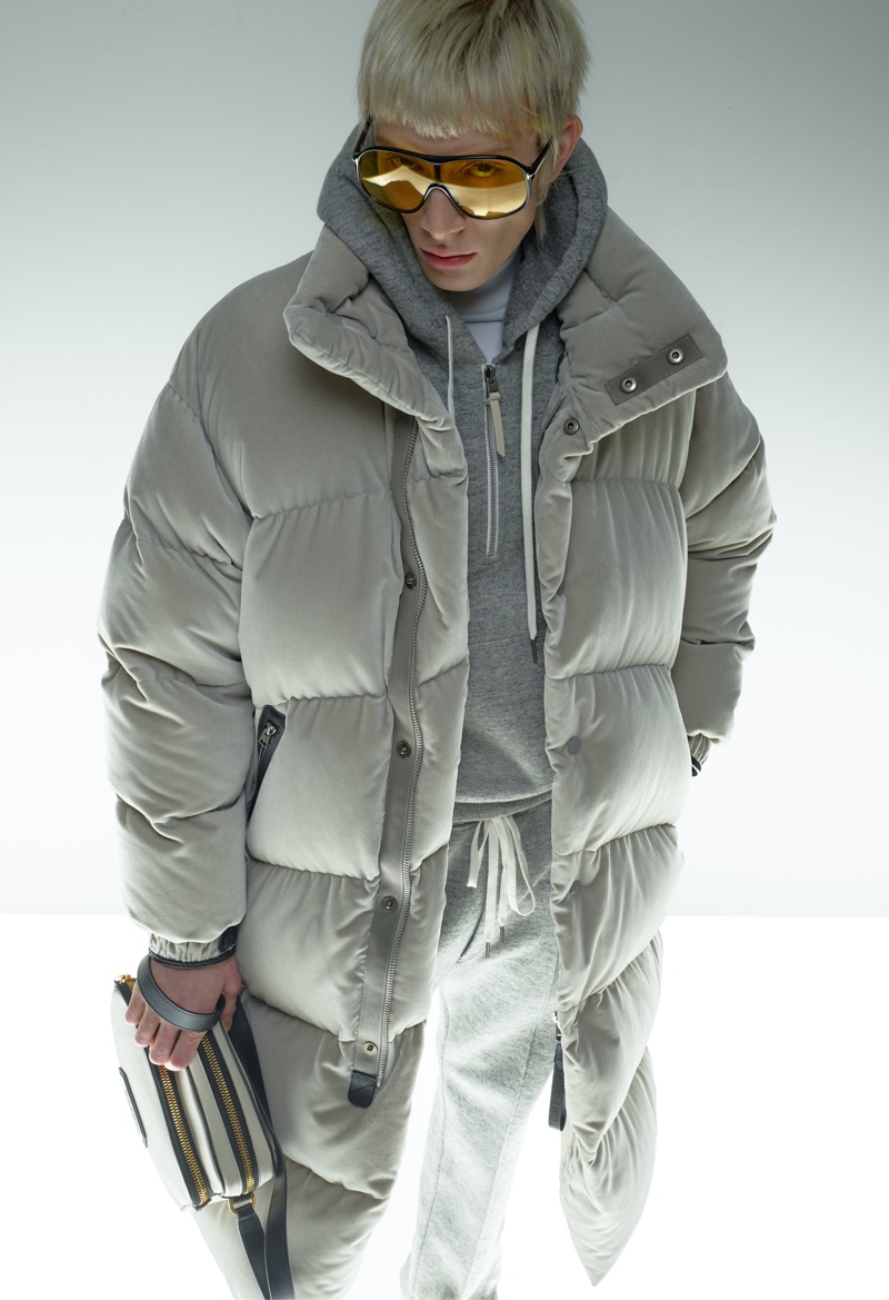 For fall-winter 2021, Tom Ford is right on trend with the hope that life post-COVID will return to normal. Photographer Julien Martinez Leclerc captures Ford’s latest designs on models Henry Kitcher, Cherif Douamba, and Maikls Mihelsons. Here, Ford’s man eases into glamorous dressing once more “but in a slightly more casual yet luxurious way.” References to the 1960s and ’80s emerge with a wardrobe that balances everyday style’s practical needs with men’s desire to dress in a sophisticated fashion. Caramel, turquoise, dusty pink, jade, and acid yellow tones peek out from a sea of neutrals, giving life to must-haves like a double-breasted jacket or military coat. Meanwhile, Ford elevates jeans with the use of mohair twill. A shorter cut brings attention to Ford’s stylish boots and 1960’s loafers. Fun standouts for the season range from a floral print jacket and oversized down outerwear to bleached denim jeans. Paying a nod to the increased time spent at home, colorful robes and pajamas in vibrant prints round out the collection.