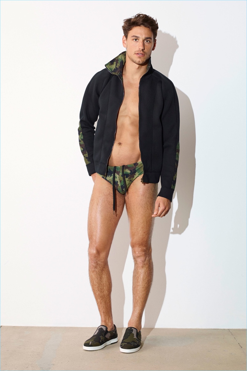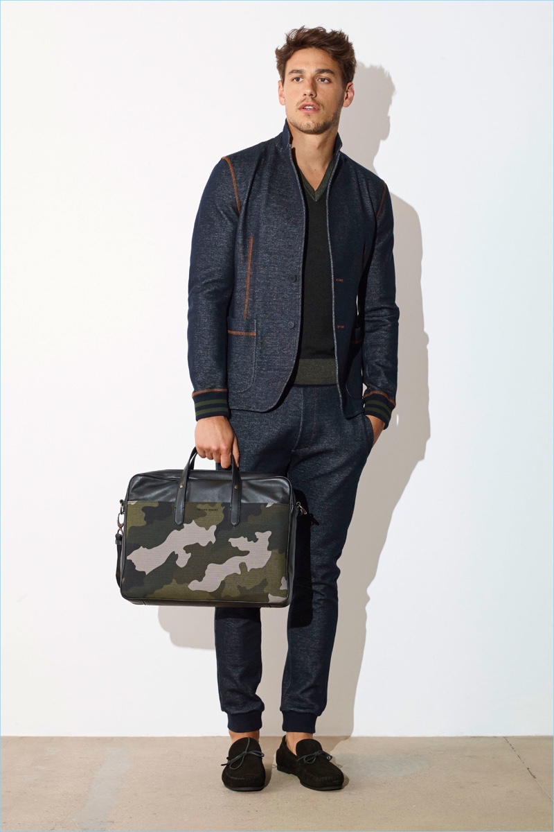 Tomas Maier offers a fresh spin on military-inspired style. The designer’s resort 2018 collection adds a subdued tropical flair to strong graphic looks. Palm prints lend themselves to a modern interpretation on the popular camouflage print. Meanwhile, Maier does not deter the expected color palette of green, brown, and black. In addition to fantastic jackets, the collection serves up slim-fit cargo pants, leather overshirts, bombers, and pleated joggers. Maier also rounds out the range with a selection of camouflage print swimwear and statement bags for the stylish man on the go.