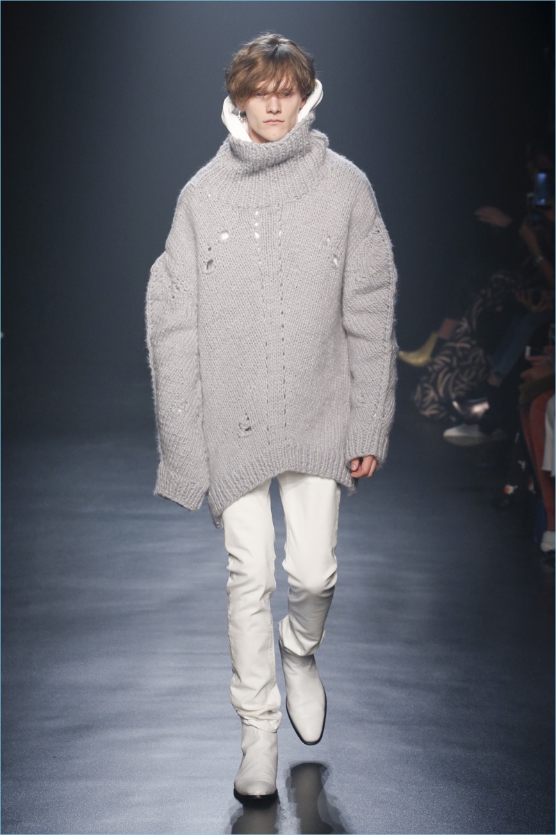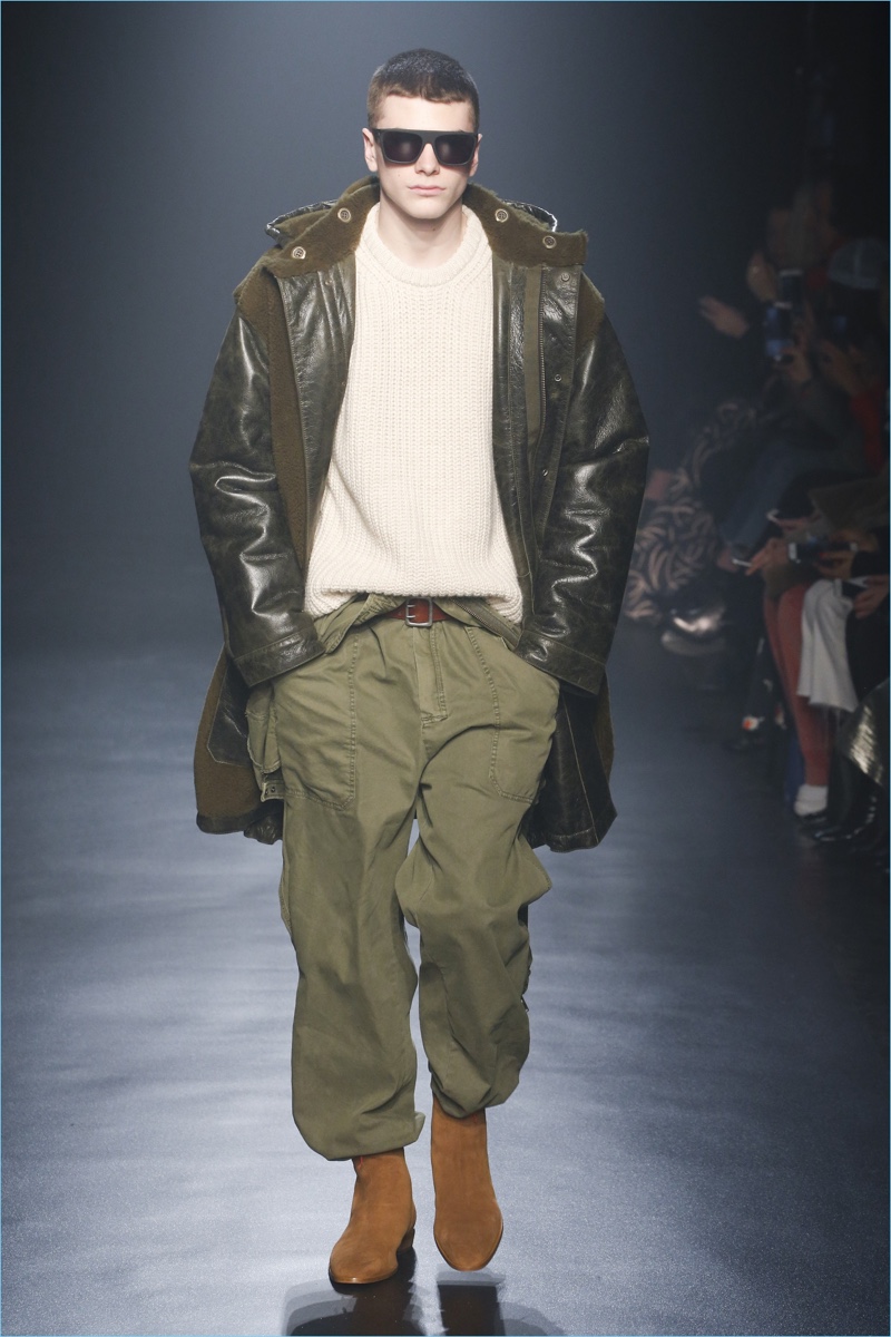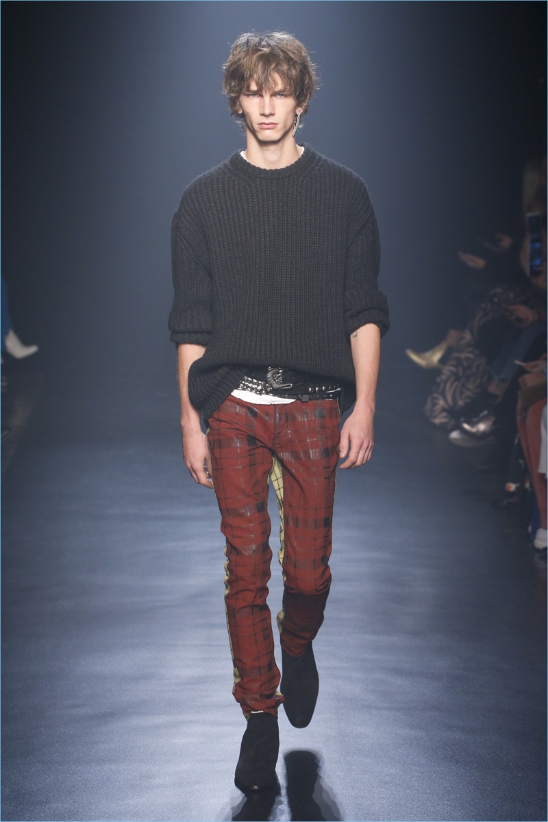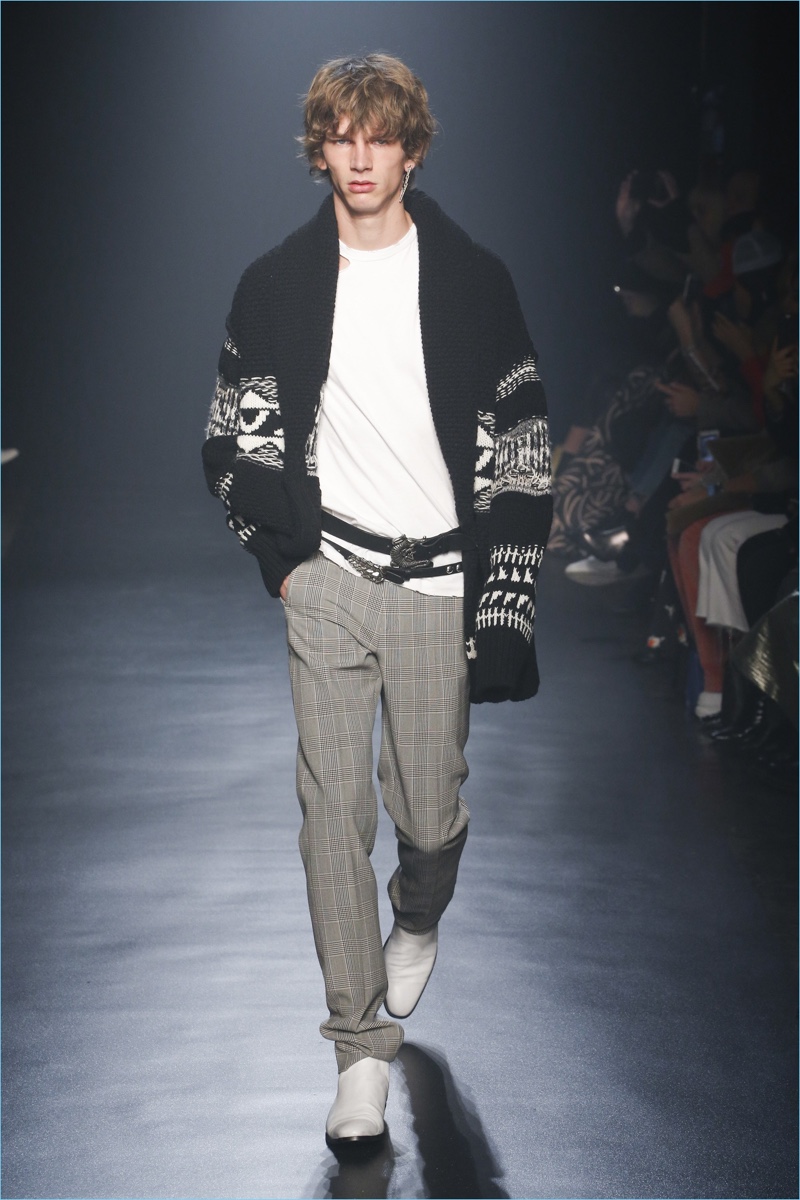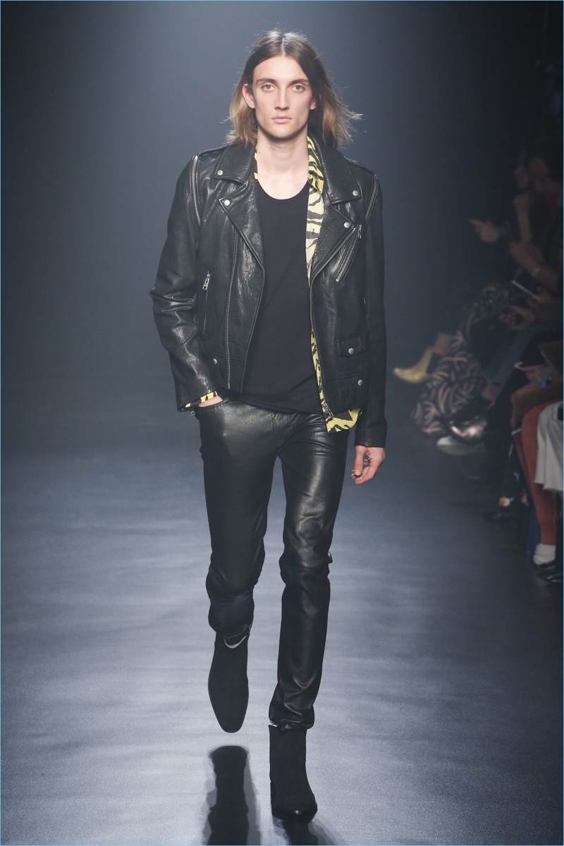 Zadig & Voltaire brings rock ‘n’ roll vibes to New York Fashion Week. The fashion brand juxtaposed its signature cool edge with smart tailoring for fall-winter 2018. Proposing a juxtaposition of aesthetics, Zadig & Voltaire proved that trendy items can coexist with classic menswear. Taking to a dark catwalk, models presented a strong selection from the upcoming season. Leather shined with baggy pants, oversized coats, and if course the biker jacket. Additional standouts ranged from chunky knits to ankle boots and skinny-fit trousers.