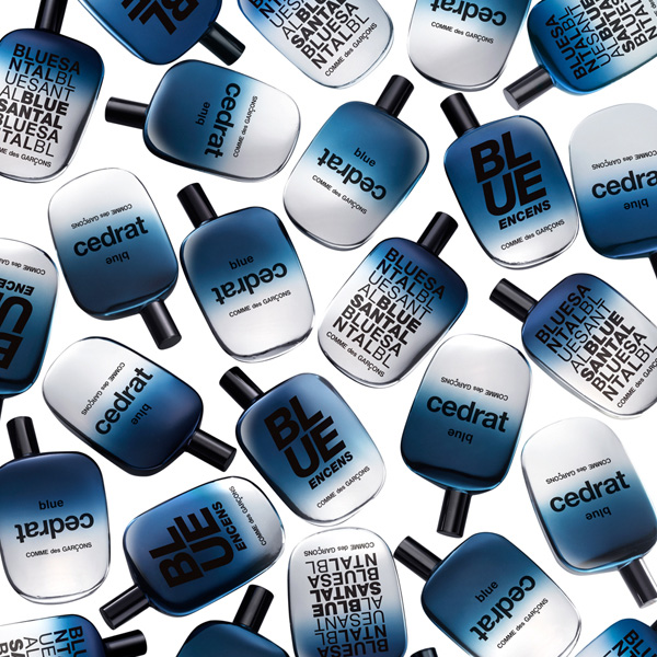 Triple Action–Revamping the trend of unisex fragrances, Comme des Garçon launches for summer 2013 a collection of three scents, named Blue Invasion. All the fragrances of the new line, available only as 100 ml eau de parfum editions, have been created following the inspiration of contrasting feelings, mixing aquatic accords with warm and luxurious olfactory notes. This inspiration has been interpreted with three different olfactory structures that have in common exotic spicy notes, aromatic essences and fine materials.
