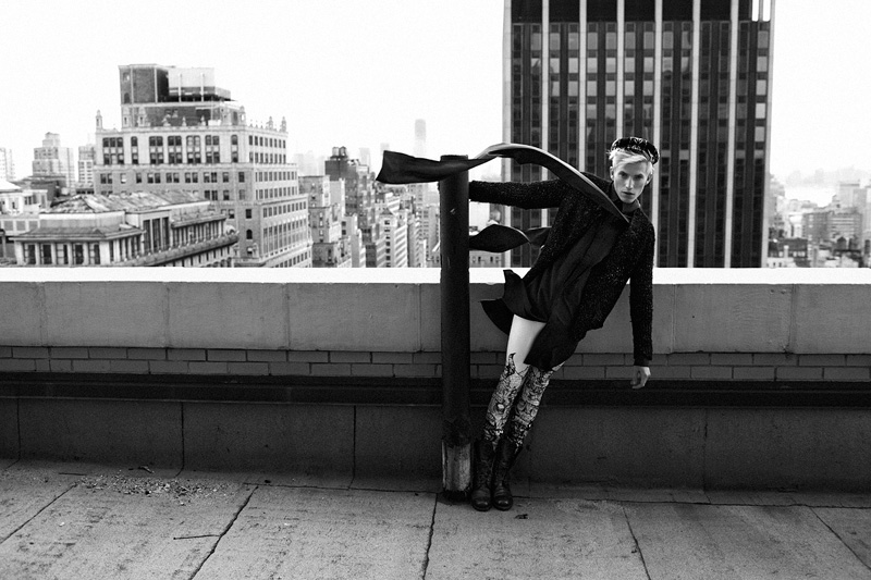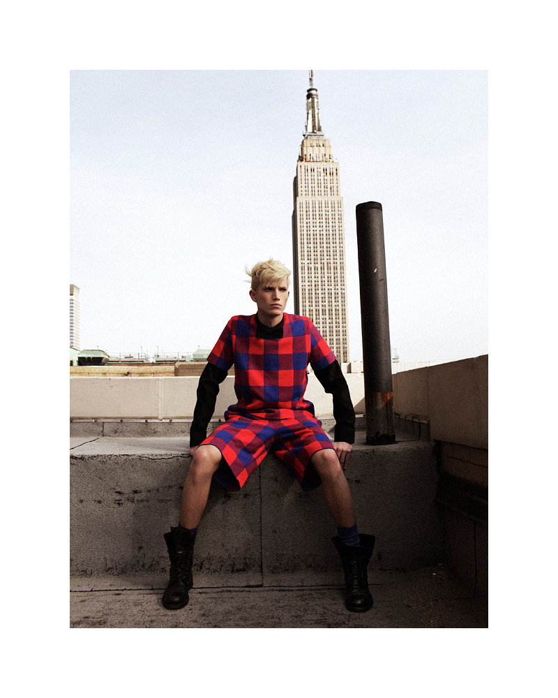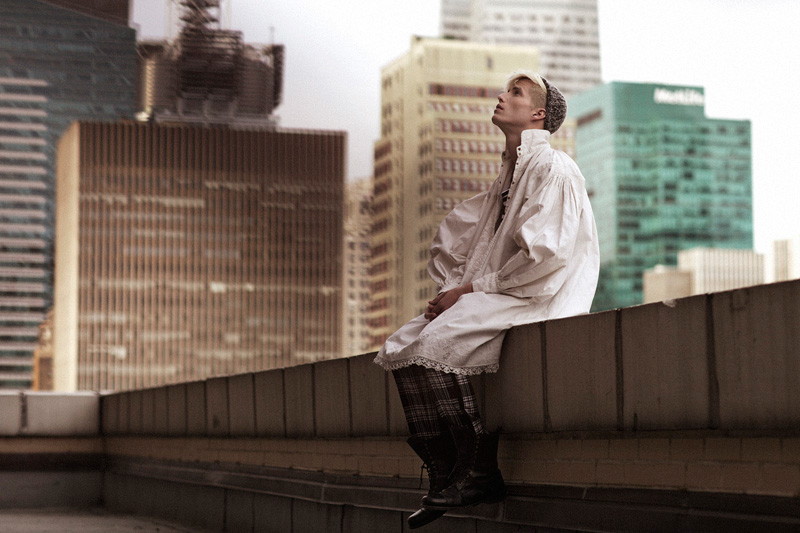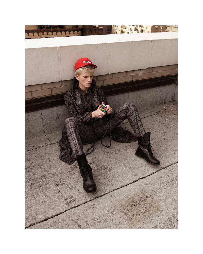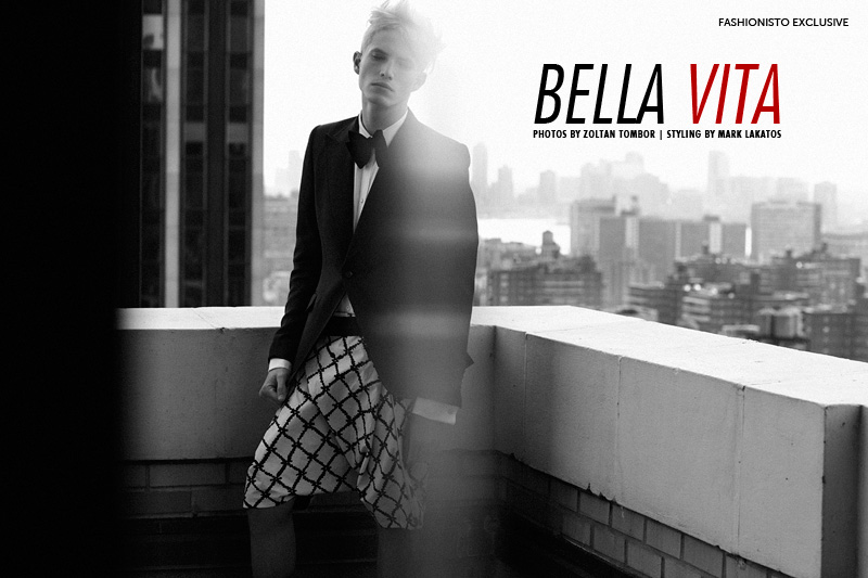 Bella Vita–Soul fresh face Conor McLain stars in a striking new story from photographer Zoltan Tombor. Taking to a New York City rooftop for the moody shoot, Tombor teams up with stylist Mark Lakatos for a luxurious undertaking. Mixing luxe sentiments with a certain quirk, Lakatos pulls pieces from Louis Vuitton, Emporio Armani and other labels, incorporating a couple of vintage garments for charming results. / Grooming by Seth Foss. Special thanks to Hungarian Cultural Center NYC, Design Terminal Budapest.